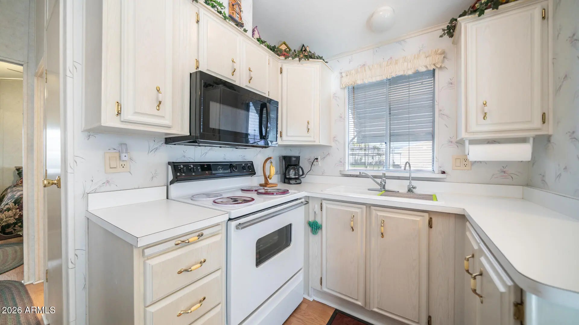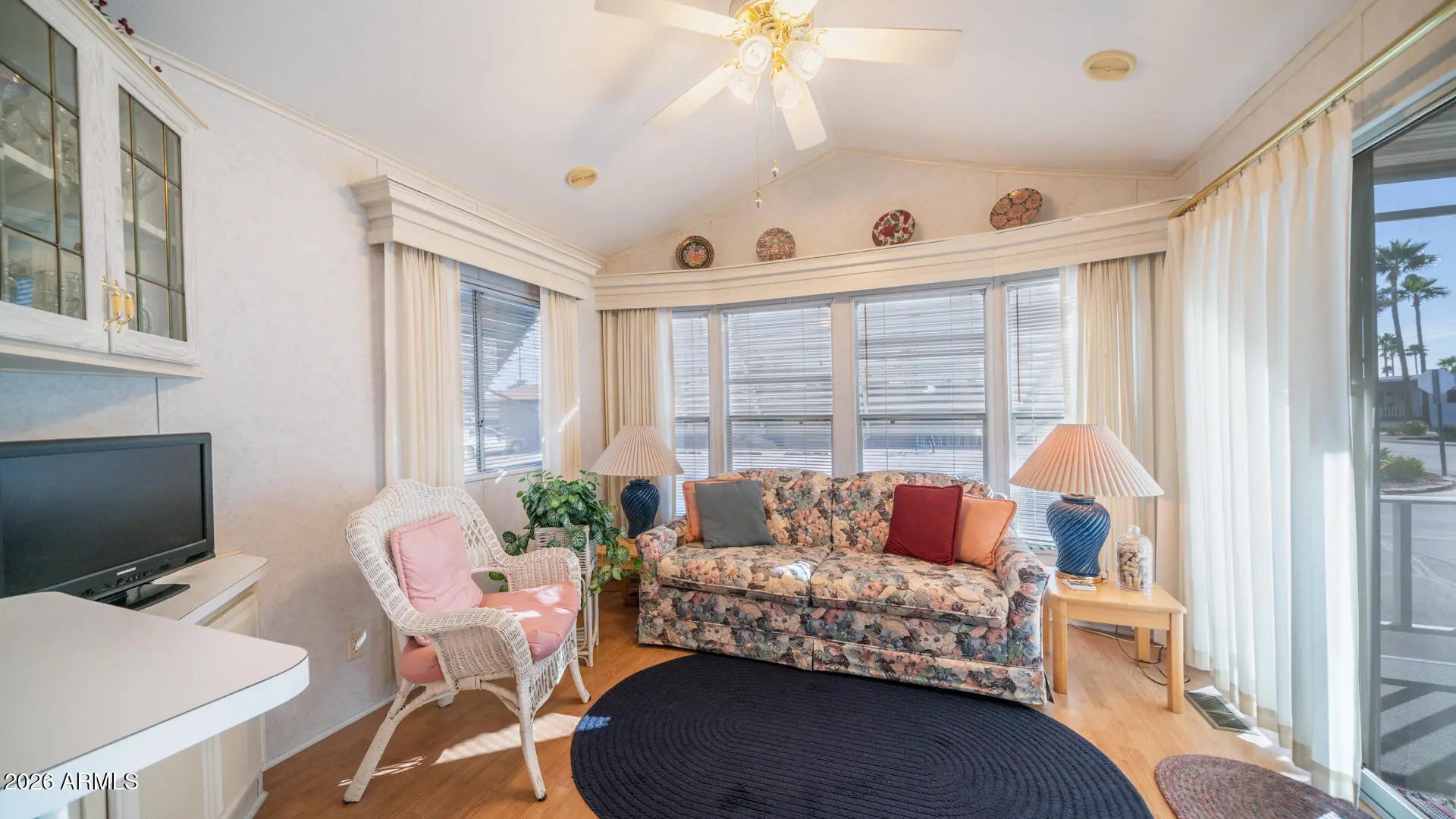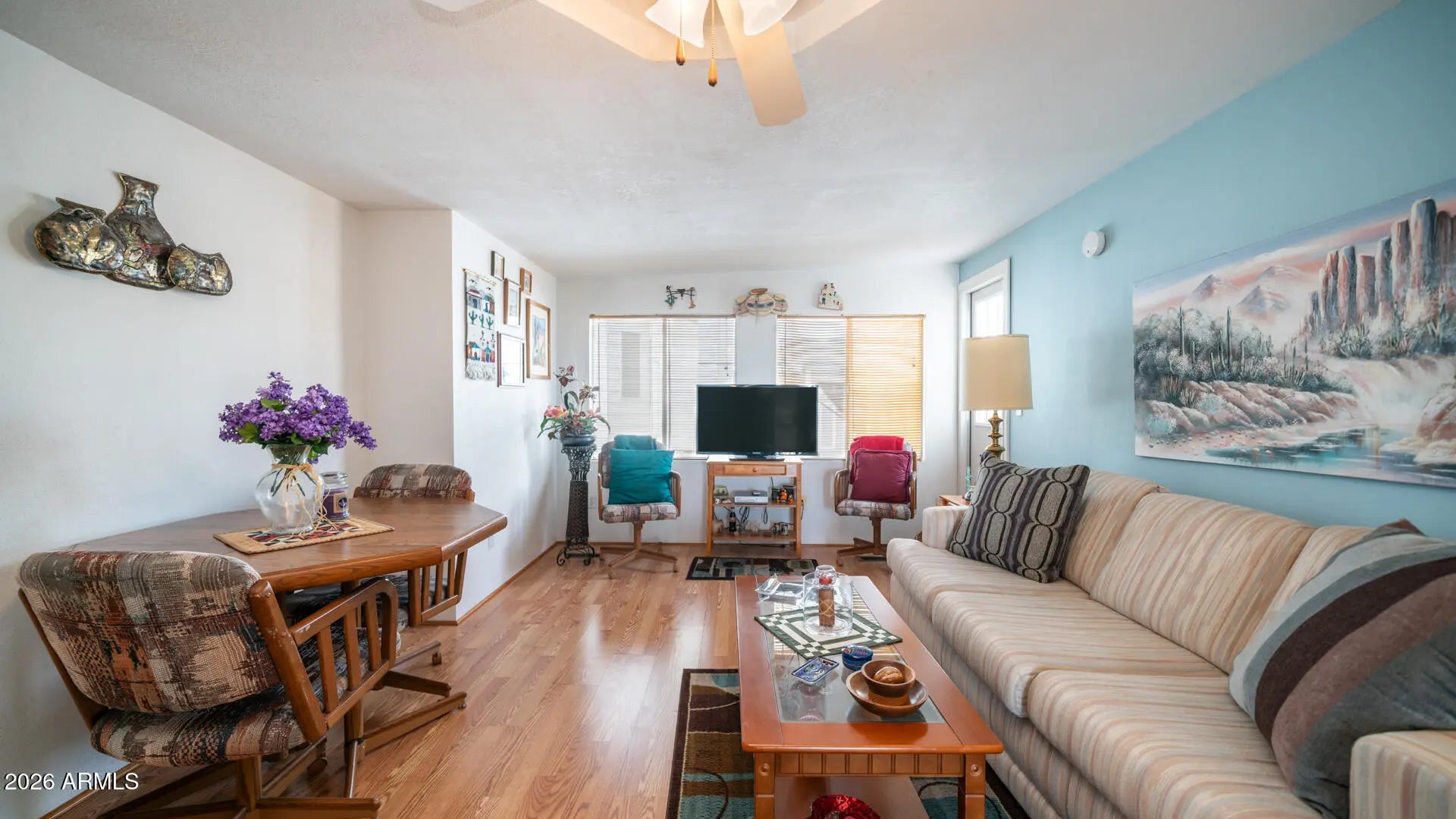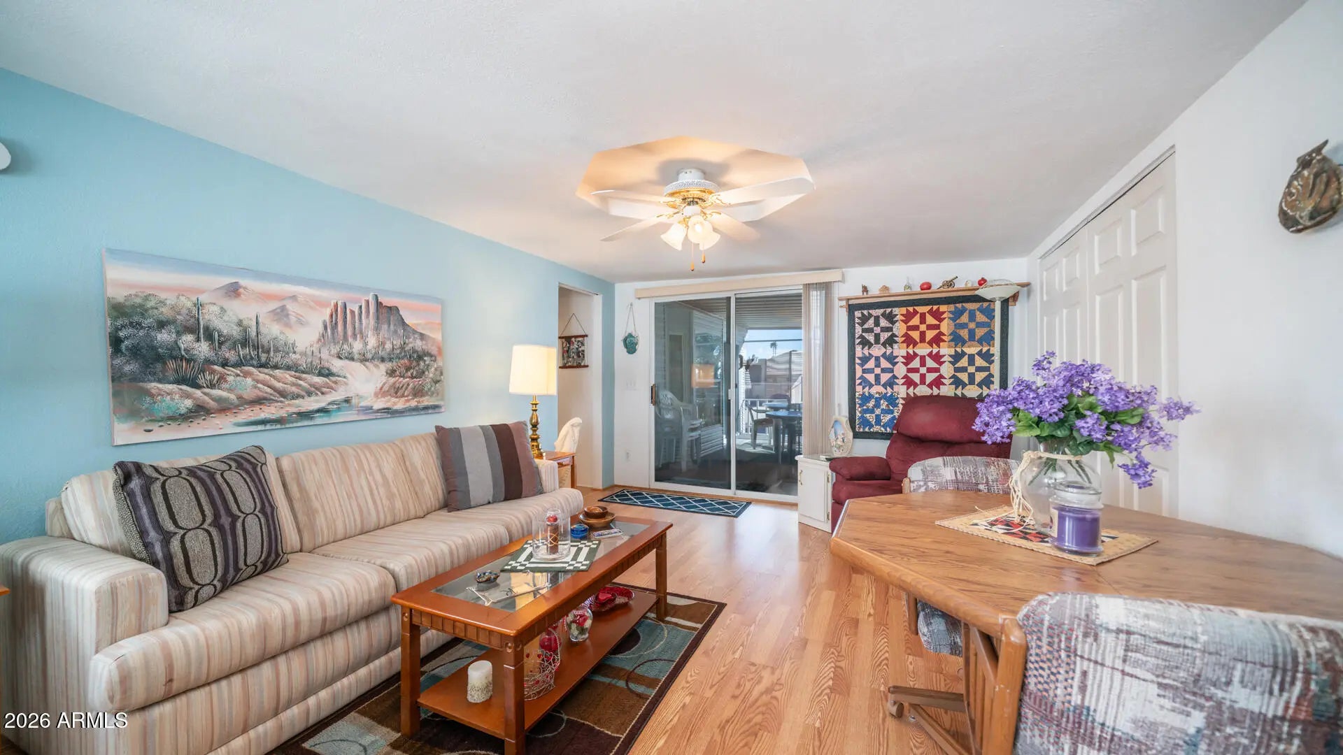 Right in the heart of Golden Vista, this beautifully positioned home places you within arms reach of everything the community has to offer, making it easy to enjoy all the activity & energy right outside your door. Take in gorgeous Superstition Mountain views from the spacious corner lot, complete with an attached Arizona room on the same level as the home that adds valuable living space for guests or everyday living. Vaulted ceilings create an inviting first impression as you enter, flowing into a U shaped kitchen that opens the layout & makes entertaining friends & family effortless. The exterior has been fully updated with modern paint & the roof has been replaced within the last few years, offering peace of mind along with style. Outdoor living truly shines here with an expansive deck & patio area perfect for relaxing, hosting friends, playing cards, or enjoying a sunset happy hour, while a west facing privacy screen adds an extra layer of seclusion when desired. An oversized detached laundry area provides excellent storage or workshop potential, & the raised deck includes pull out storage doors underneath for even more space for your treasures. Offered fully furnished including a hide a bed, this home is truly move in ready so you can start enjoying the lifestyle right away. Golden Vista is an active resort community packed with daily activities like pottery, stained glass, woodworking, pickleball, softball, shuffleboard, quilting, jewelry making, & so much more just waiting for you.