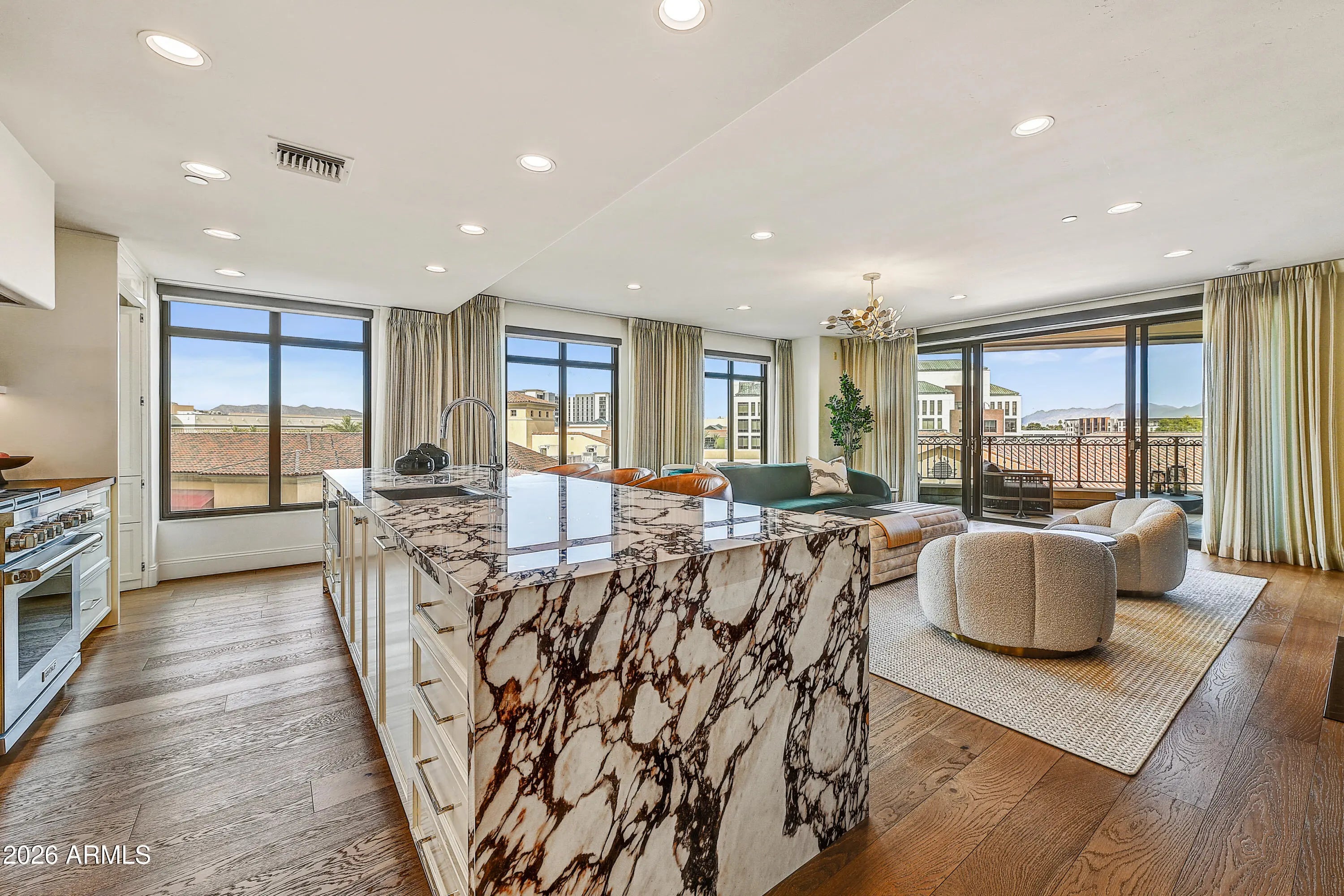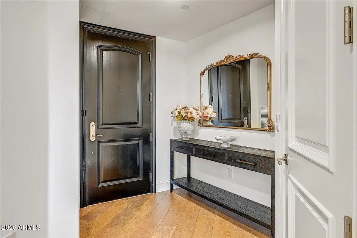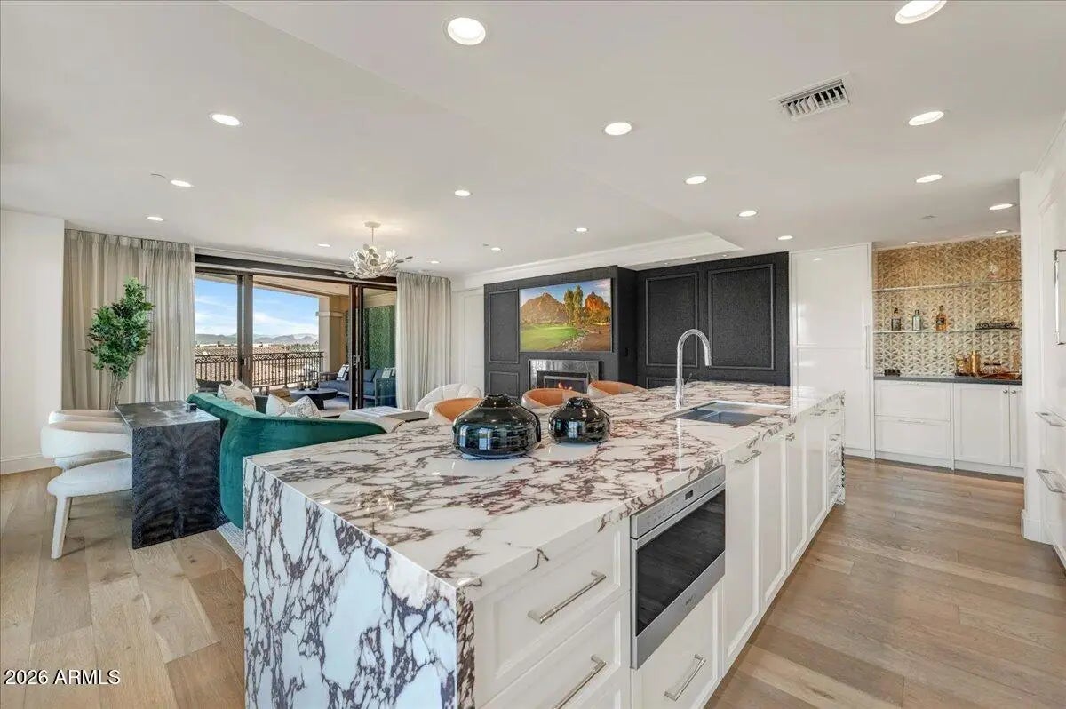 The most exquisite, sophisticated condo you'll find. Absolutely stunning, paying great attention to detail with the finest quality in every room. Beautiful cabinetry, counter tops and designer appliances in kitchen looking out to great room with gorgeous wall covering, fireplace, bar and drapery giving the feeling of splendor! The primary bedroom and bath were designed to surround one with elegance and beauty while including every need to pamper yourself. Spectacular views of Camelback Mountain and McDowell Range from every room and balcony! Complete smart home! Enjoy the luxurious lifestyle Scottsdale Waterfront has to offer including 24/7 front desk, valet and private underground parking, fitness center, elegant club room with private dining, rooftop pool, spa, wine cellar and BBQs!