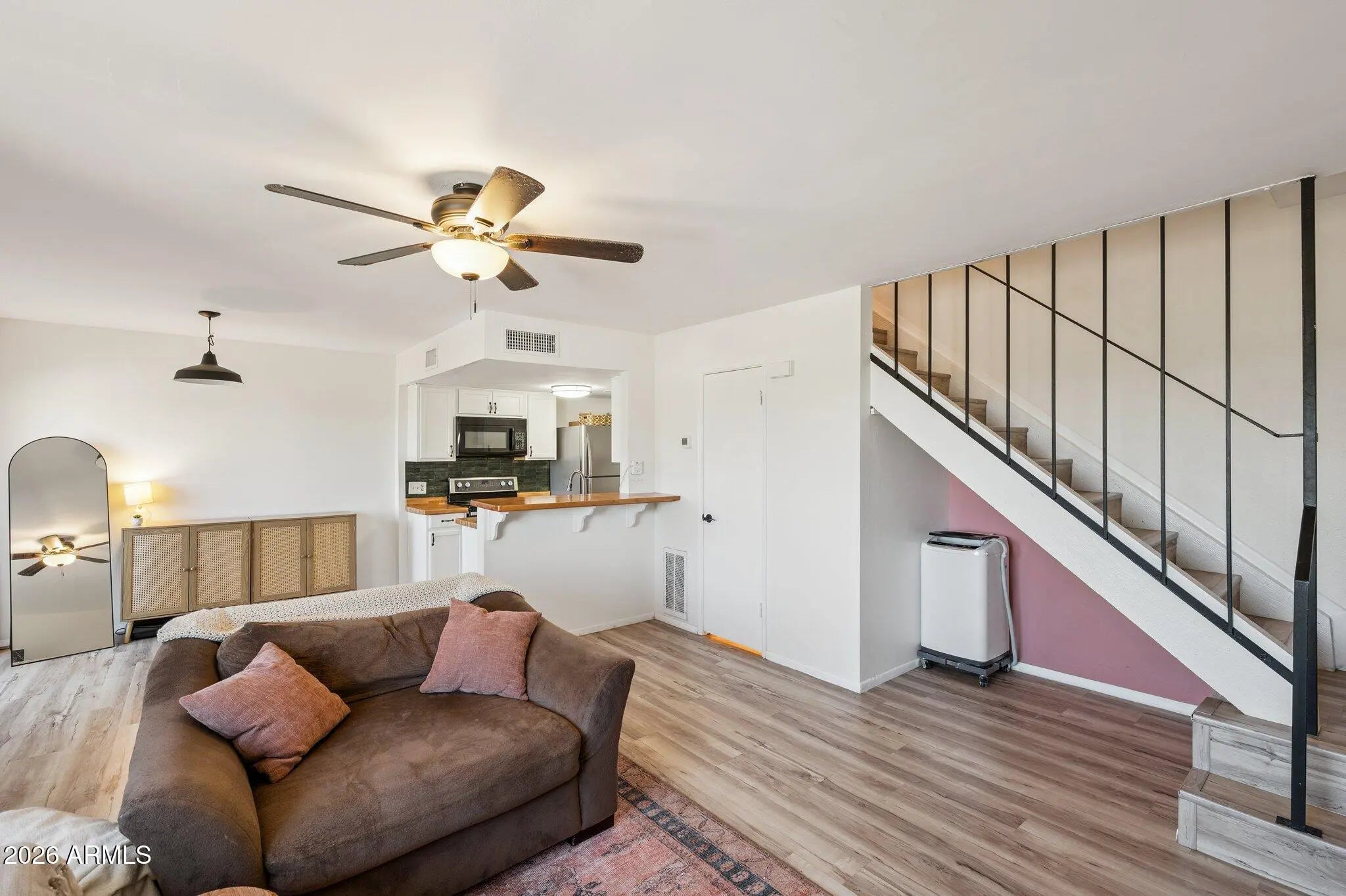Welcome to this charming townhome in the heart of Fountain Hills. Step inside to an open and inviting floor plan with plenty of space to relax. The home features updated flooring, a beautifully appointed kitchen, and views of the surrounding natural landscape. Located just over a mile from Fountain Park, local shops, and dining, you'll enjoy both convenience and a peaceful setting. The community offers a pool, easy laundry access, and low-maintenance living. Whether you're looking for a full-time residence, a lock-and-leave retreat, or a fantastic Airbnb opportunity, this home checks all the boxes.