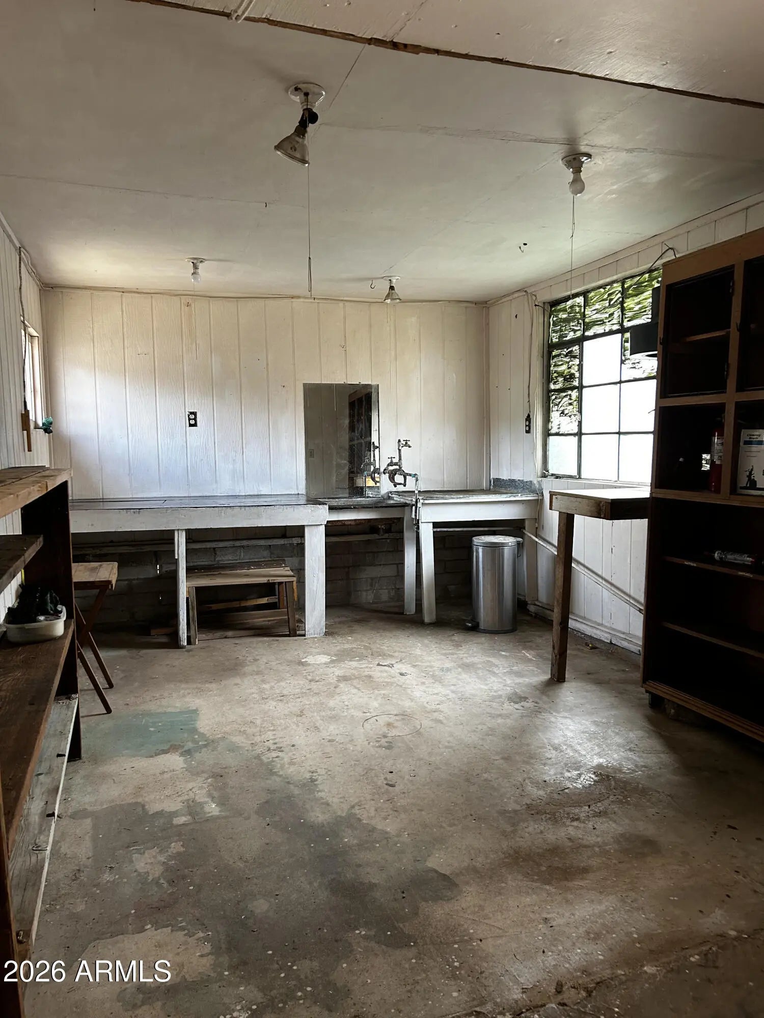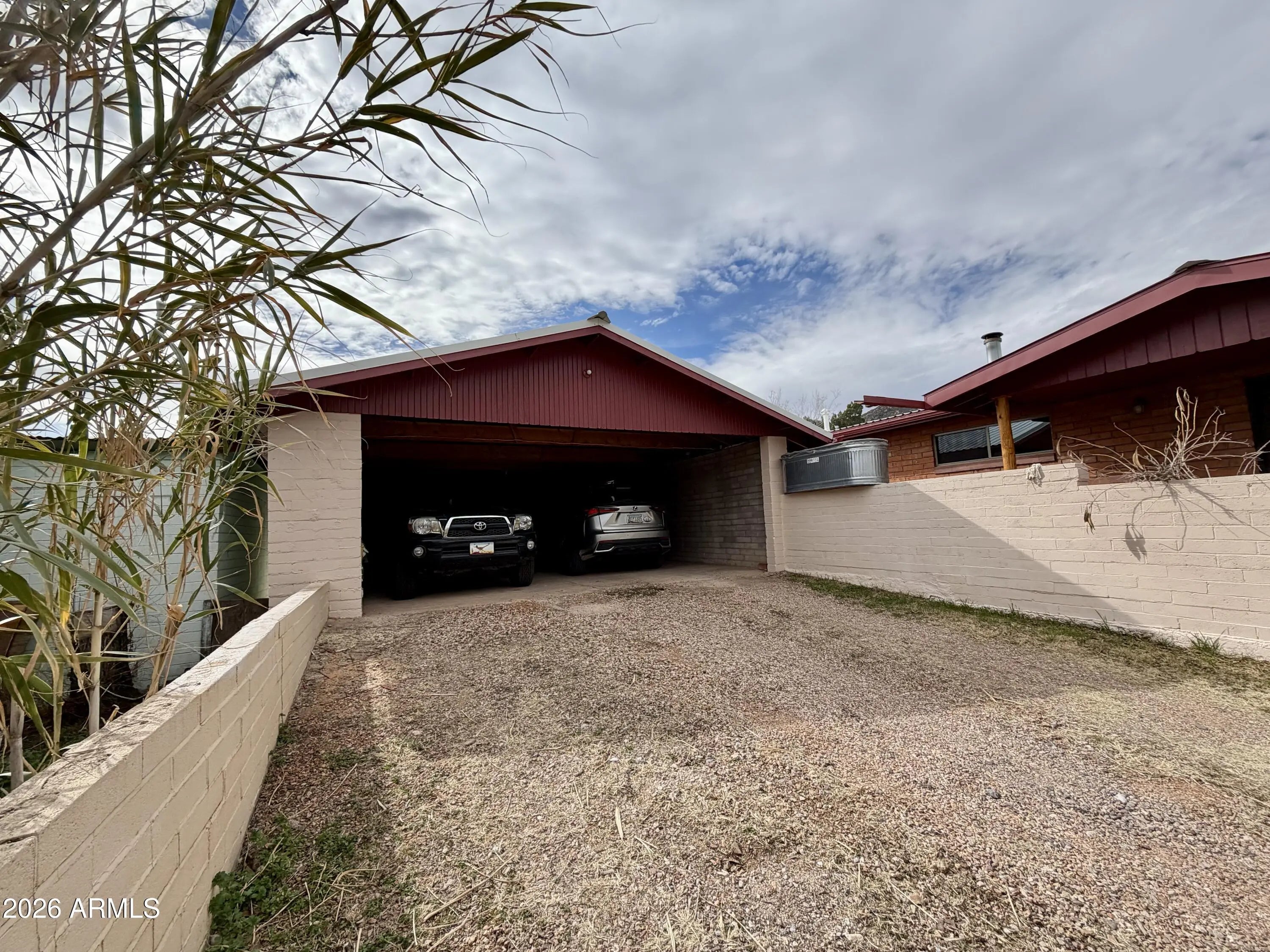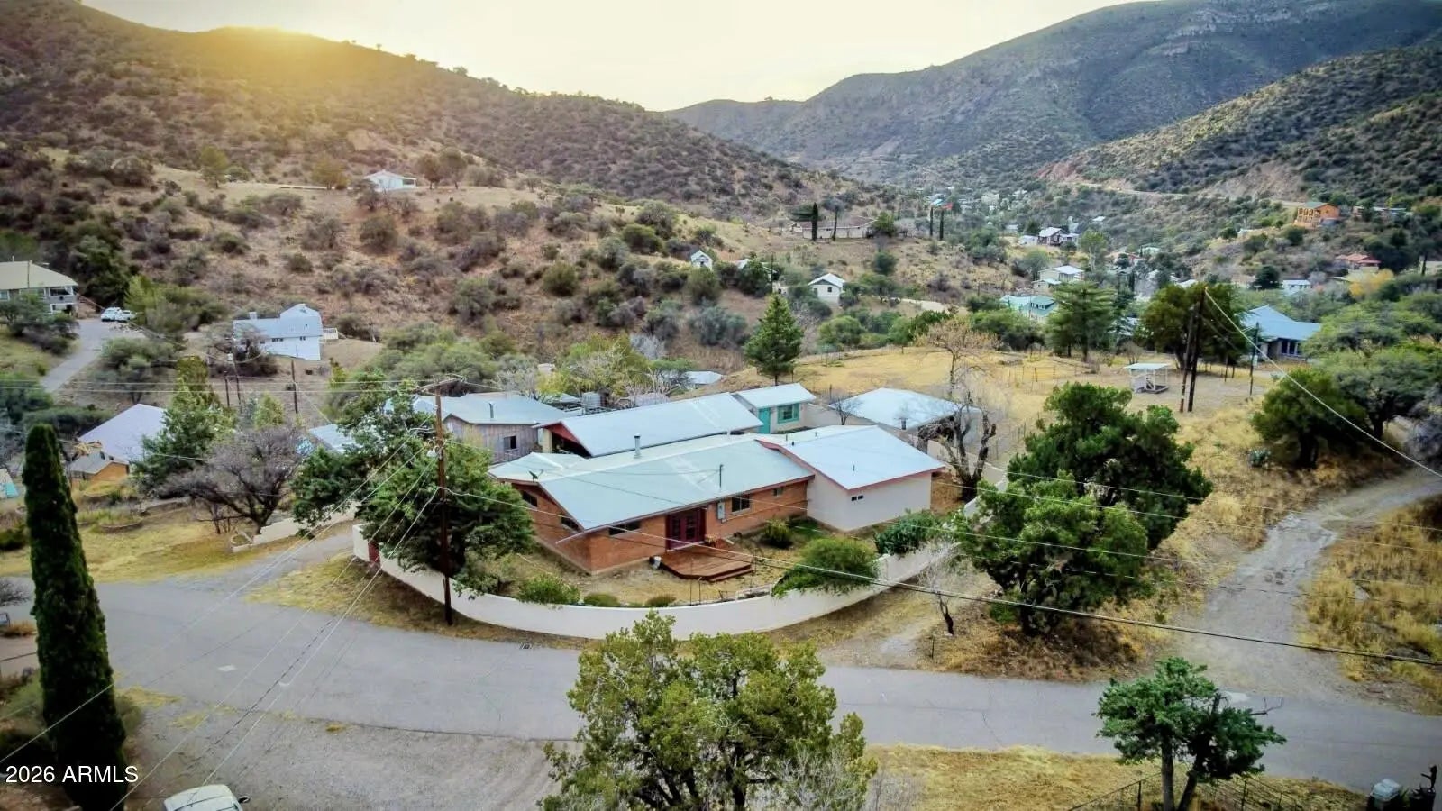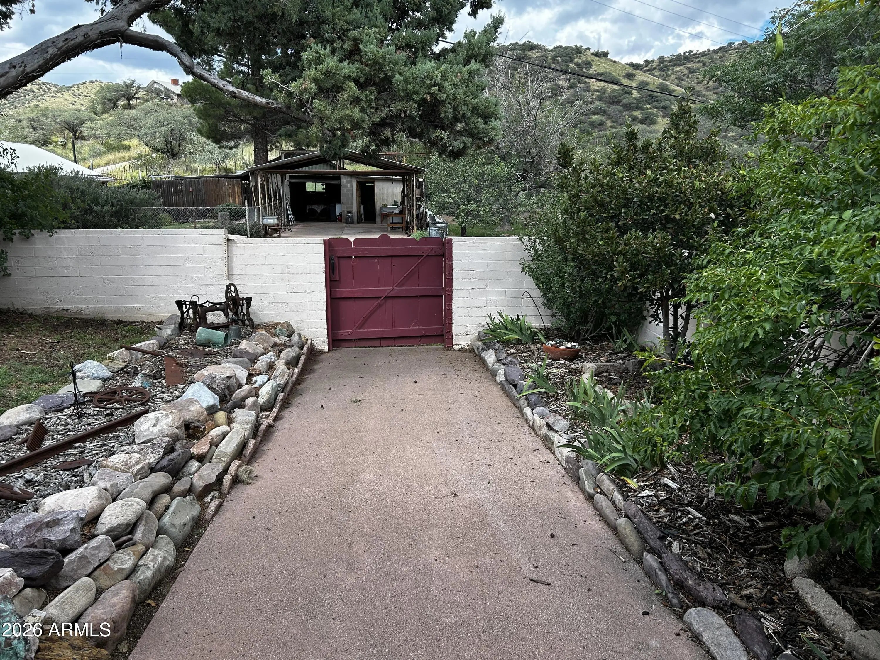 Solid 1800+ sqft house in Old Bisbee. This well maintained property is almost an acre of land and includes the main house made of adobe bricks and stucco, driveway and open two car garage, separate storage building, work shop, and approximately 600 sqft building in back for storing ATV, tractor, trailer, etc. The house features an open living room, dining area and kitchen with an efficient wood burning stove in the living room. Out the back door you will enter into a cozy private courtyard with a large stone fireplace. Out back is a mature pecan tree as well as peach, plum and apricot trees. Local hiking trail nearby and mountain views in every direction. This is on a level lot and dead end street with no stairs! A truly rare find in Old Bisbee.