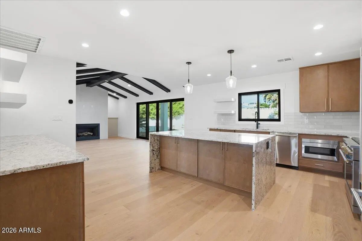 Perfectly located home in the Camelback Corridor/Arcadia Neighborhood. This home has been completely rebuilt with square footage added to original floor plan. New Sierra Pacific wood clad windows, all new electrical and plumbing, new insulation, new drywall, and new sewer line. GE Monogram appliances, French white oak flooring and tankless water heater. Newly added 13x14 master closet. Separate guest quarters added in rear year. Excellent for guests, office or aging parents.