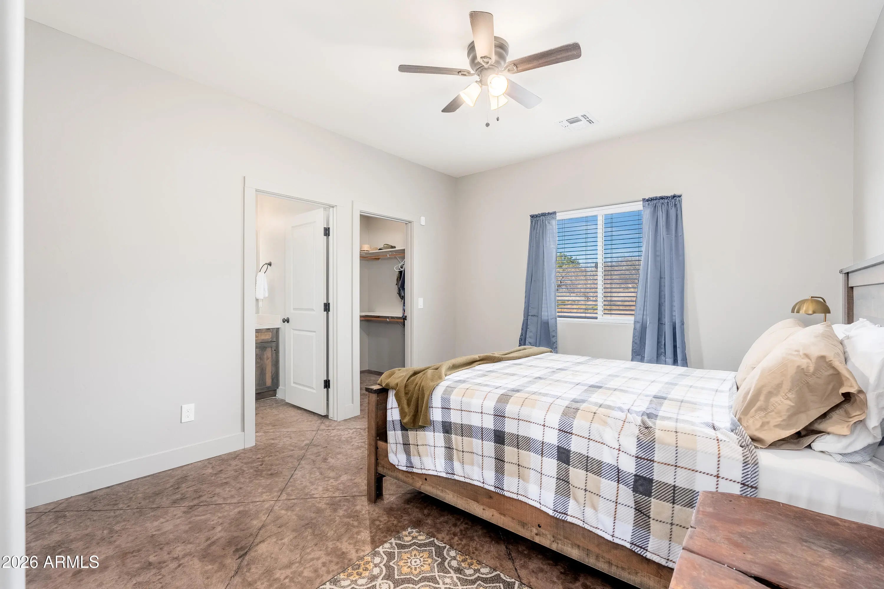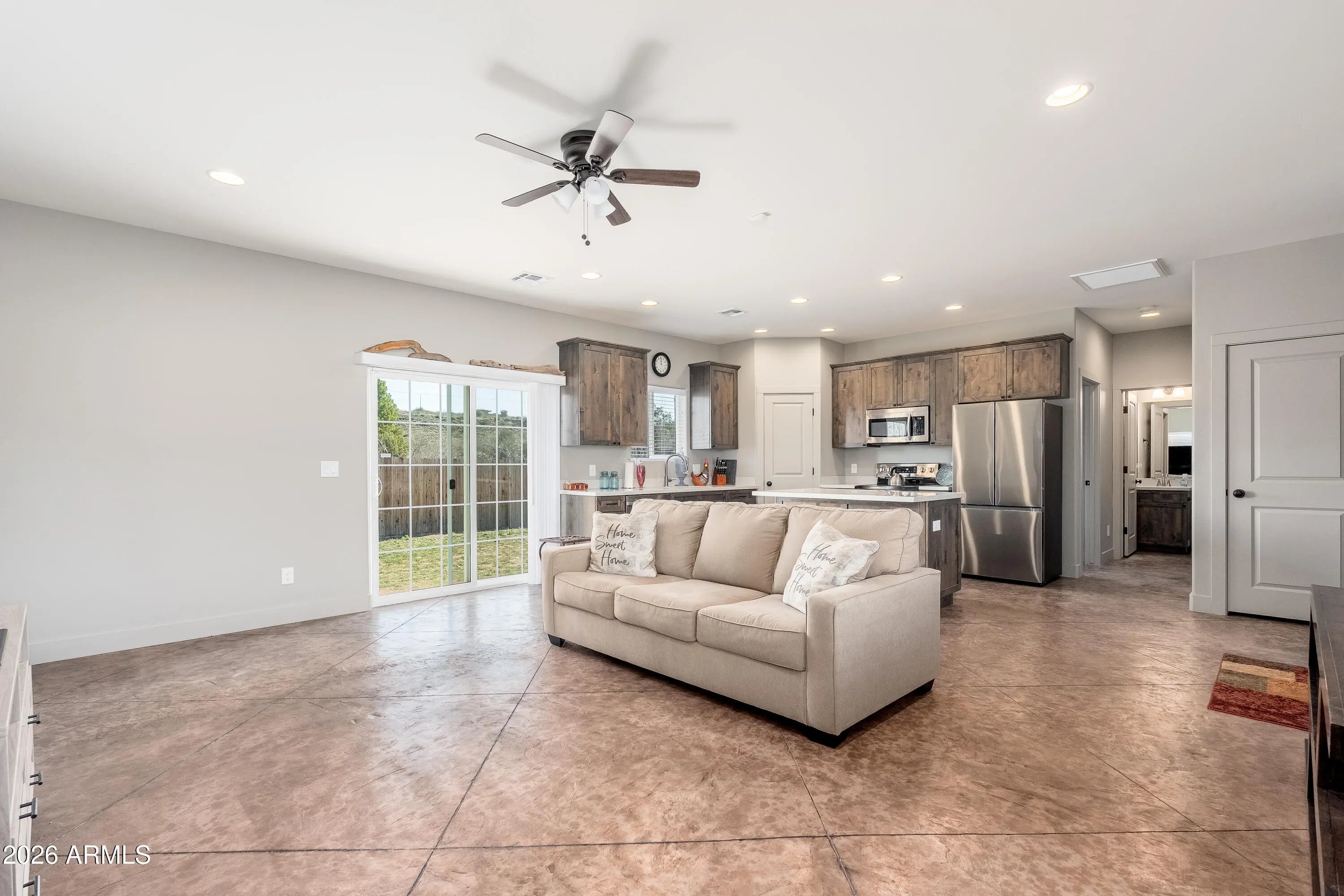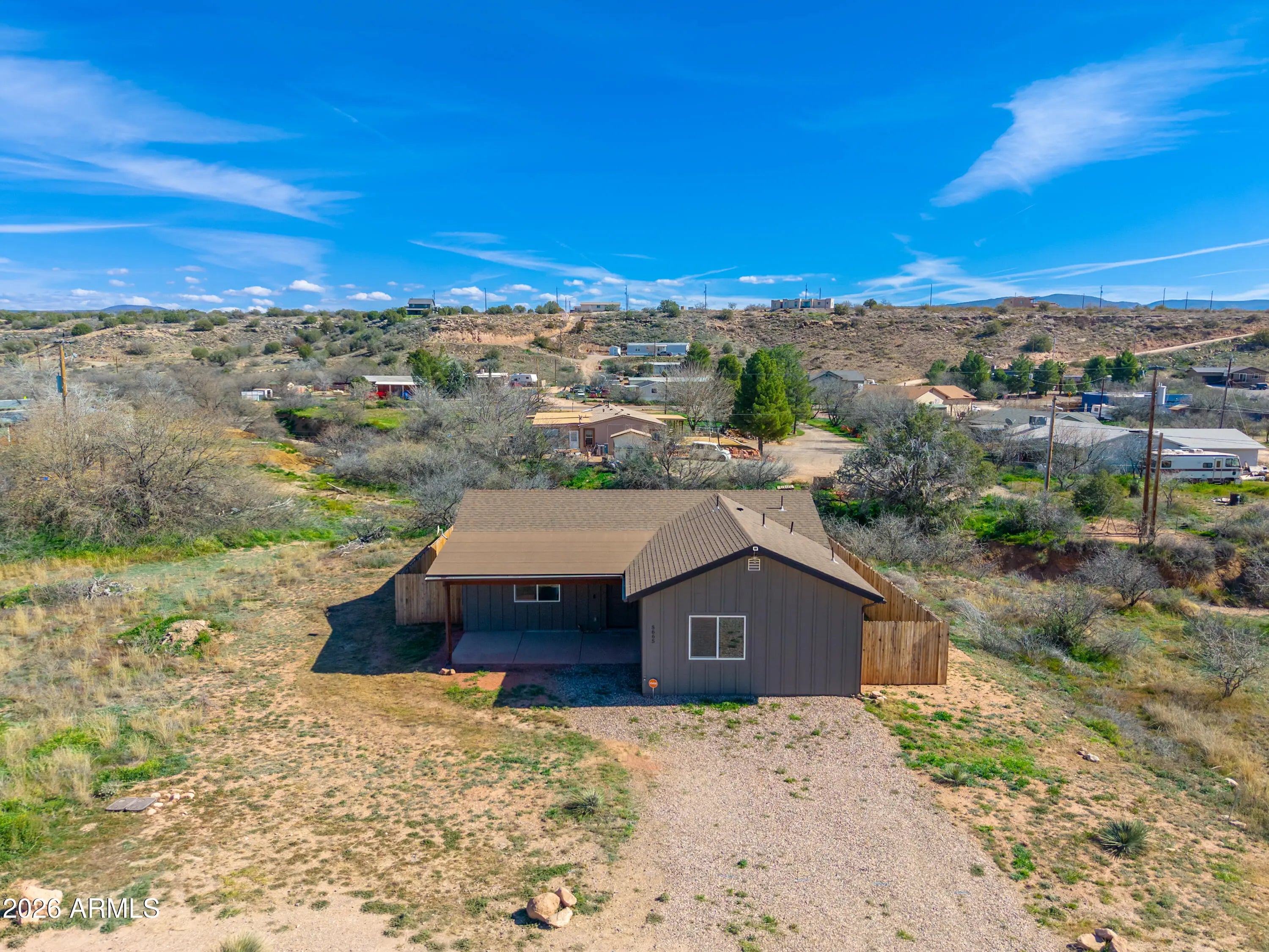This modern home, built in 2021, offers a sleek open-concept design that's perfect for both everyday living and entertaining. Featuring 2 bedrooms and 2 bathrooms, the spacious floor plan showcases stained concrete flooring, granite countertops, and a contemporary aesthetic that feels fresh and intentional throughout. The living, dining, and kitchen areas flow seamlessly together, creating an inviting space ideal for hosting friends or relaxing at home. Step outside to a fully fenced backyard with beautiful mountain views, providing privacy and a peaceful outdoor setting. With no rental restrictions, this property presents an outstanding opportunity as a primary residence, second home, or income-producing investment. Modern finishes, low-maintenance design, and versatility make this home a standout option in the Verde Valley.
