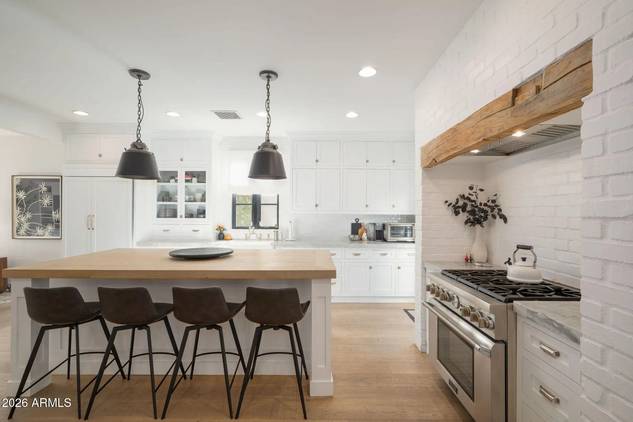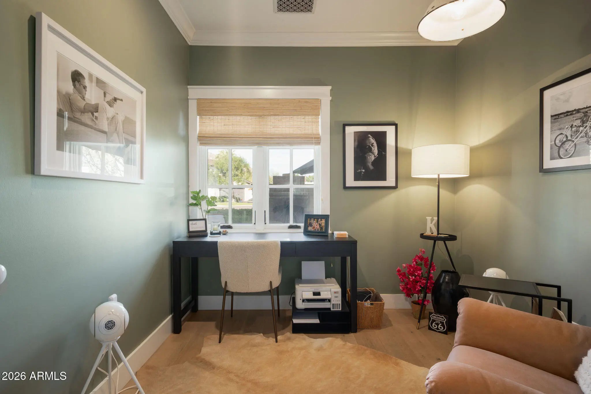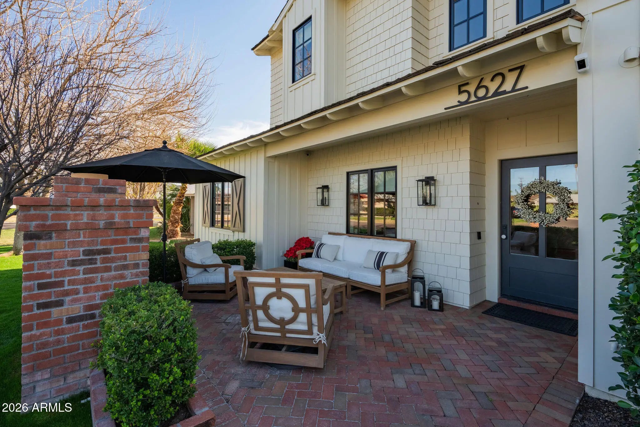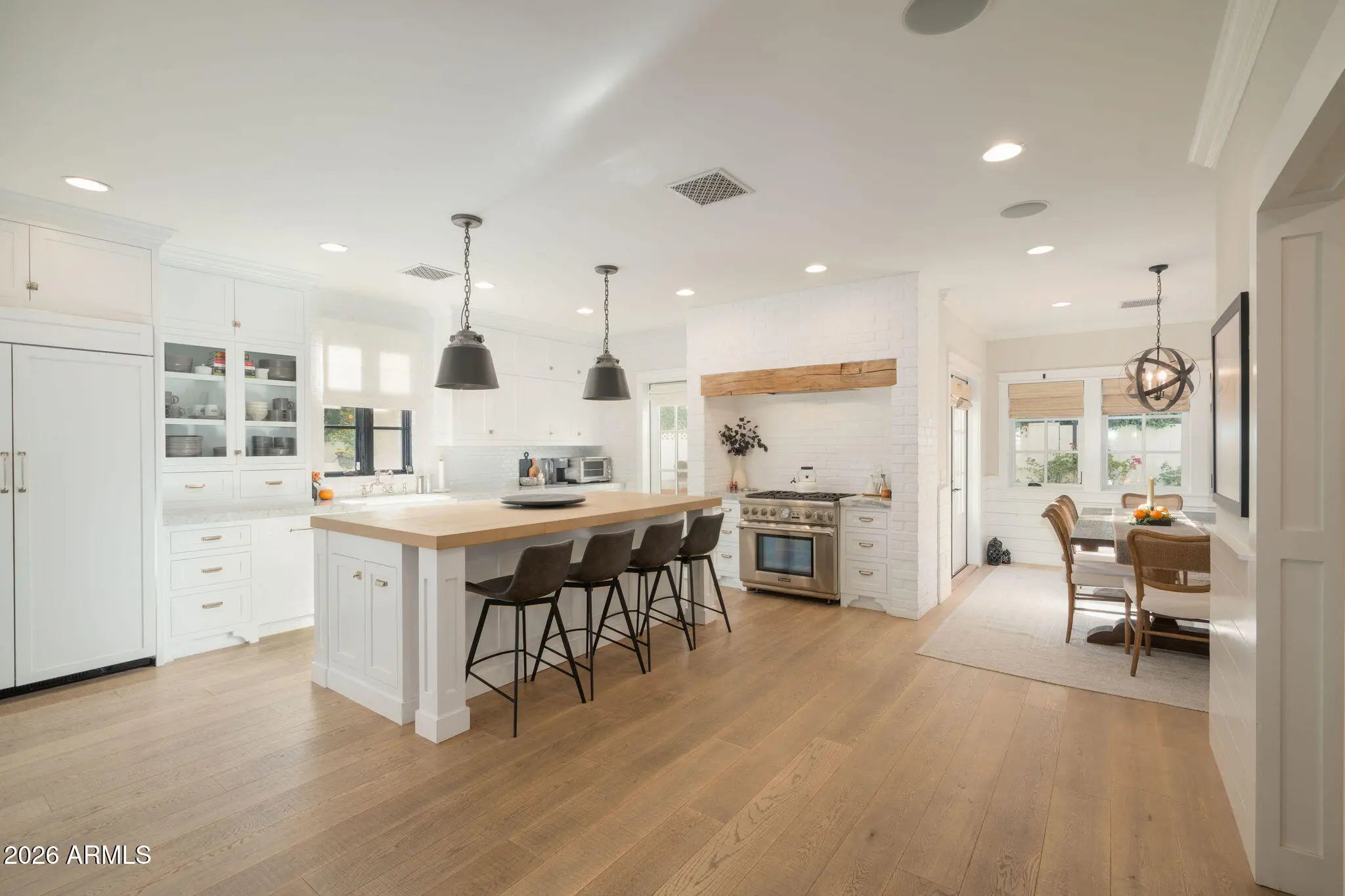 Relax and unwind in this exquisitely designed home, ideally situated in the heart of Arcadia Proper. This stunning 5-bedroom, 3.5-bath home blends timeless craftsmanship with refined modern living, offering exceptional design details at every turn. Intricate millwork, beautiful wood flooring, and thoughtfully curated finishes create a warm yet sophisticated atmosphere perfect for entertaining friends and family. The chef's kitchen is a true centerpiece, featuring marble countertops, a Thermador range, and an open-concept layout with seamless views into the family room and out to the outdoor gas fireplace. The downstairs primary retreat is a serene sanctuary, complete with a spa-like bath boasting a walk-in shower, elegant clawfoot soaking tub, marble dual vanity, and a generous walk-in closet. A conveniently located stackable washer/dryer, along with a stylish office and charming powder bath, complete the main level. Upstairs, enjoy a spacious game room with its own beverage center, four additional bedrooms, two large dual-vanity bathrooms, and a full-size laundry room ideal for both everyday living and hosting guests. Step outside to discover multiple inviting outdoor living spaces, perfect for Arizona evenings. Enjoy one of two fireplaces in the front and side yard, cool off in the refreshing pool, or gather around the built-in BBQ and outdoor dining area. Two orange trees add the finishing touch to this quintessential Arcadia backyard.