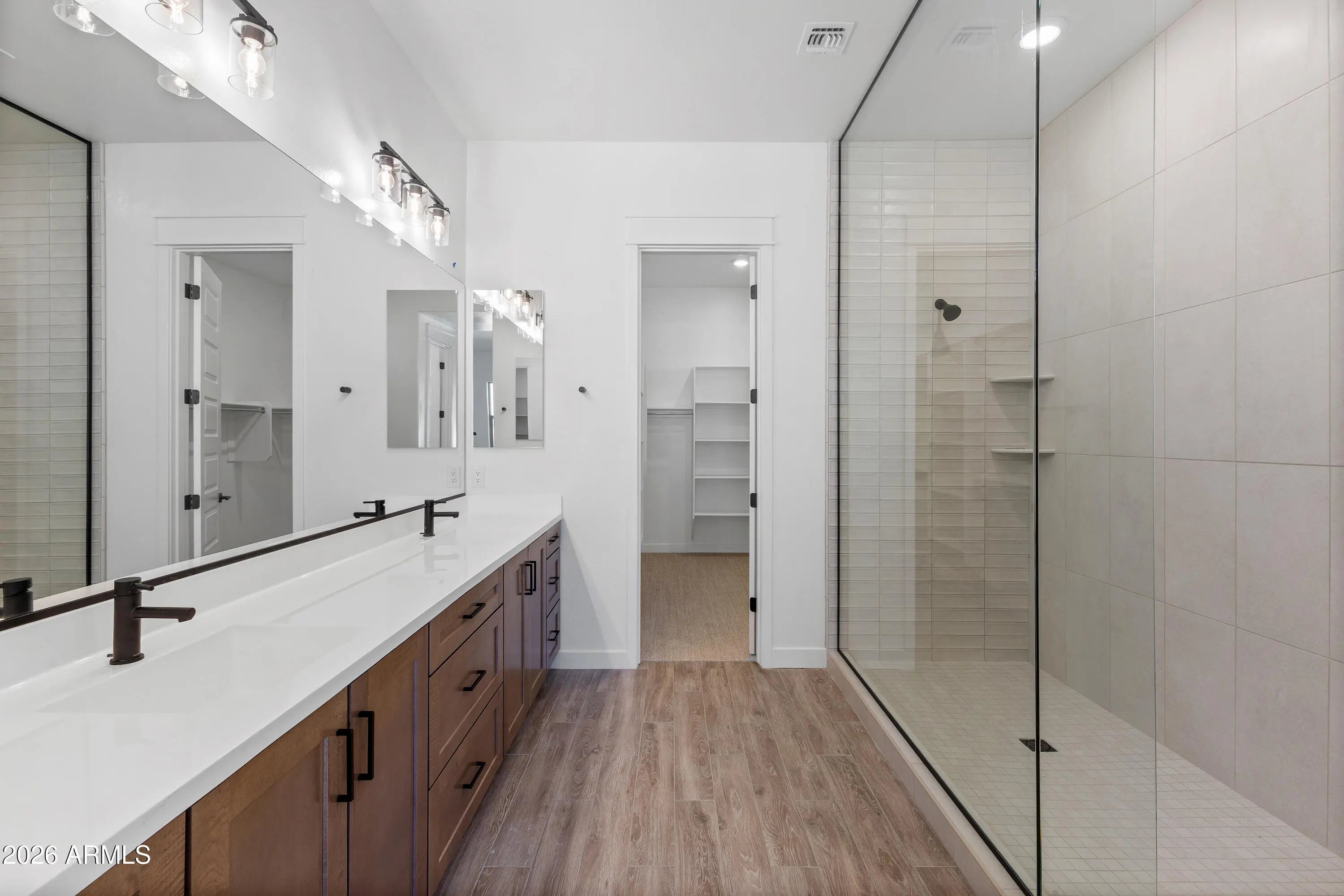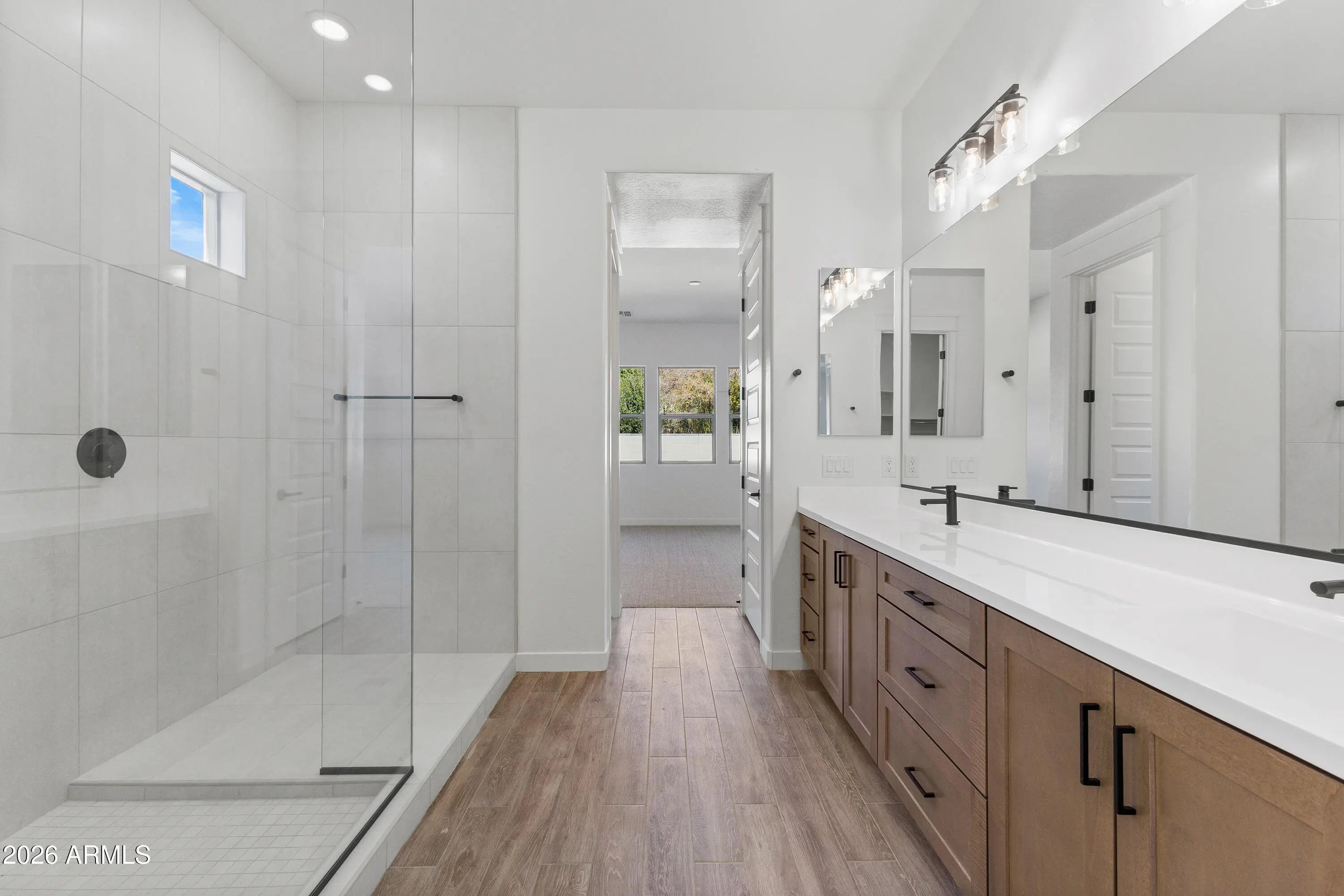 NEW CONSTRUCTION - COMPLETED FEB 2026 | MOVE-IN READY! Popular 5526 Plan offering 2,650+ sq ft with 4 BEDROOMS, 3 BATHS, 3-CAR GARAGE, AND A VERSATILE FLEX ROOM. Bright open great room layout with 10' ceilings and abundant natural light. Designer kitchen features linen quartz countertops, 42'' Pecan stain cabinets, plank porcelain tile flooring, and upgraded finishes throughout. BLACK STAINLESS LG APPLIANCES WITH NATURAL GAS COOKTOP. Spacious primary suite with elegant bath and walk-in super shower. EV-2 CHARGER READY! South-facing lot WITH LANDSCAPED FRONT YARD, near the community park, playground, BBQ areas, and green spaces. Located in Bella Pasa, an exclusive gated enclave of just 30 homes. Immediate occupancy available.