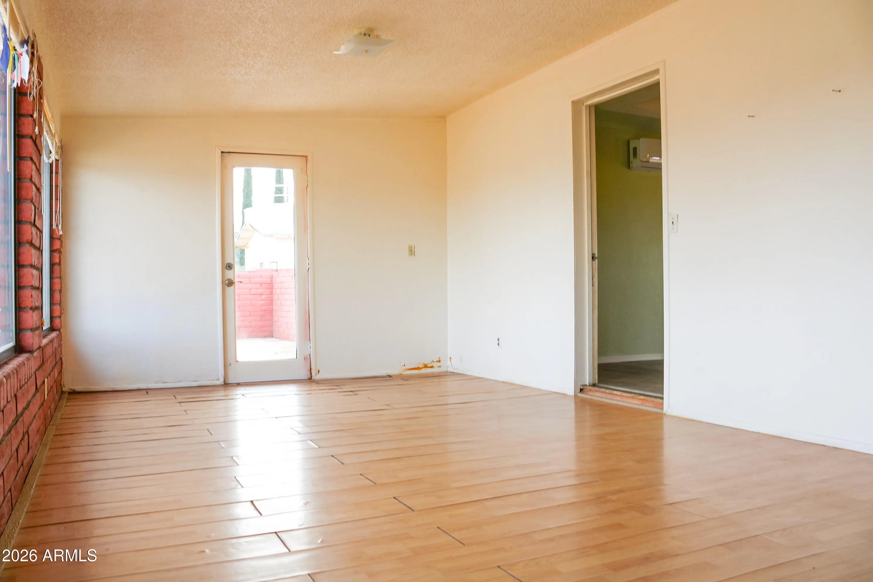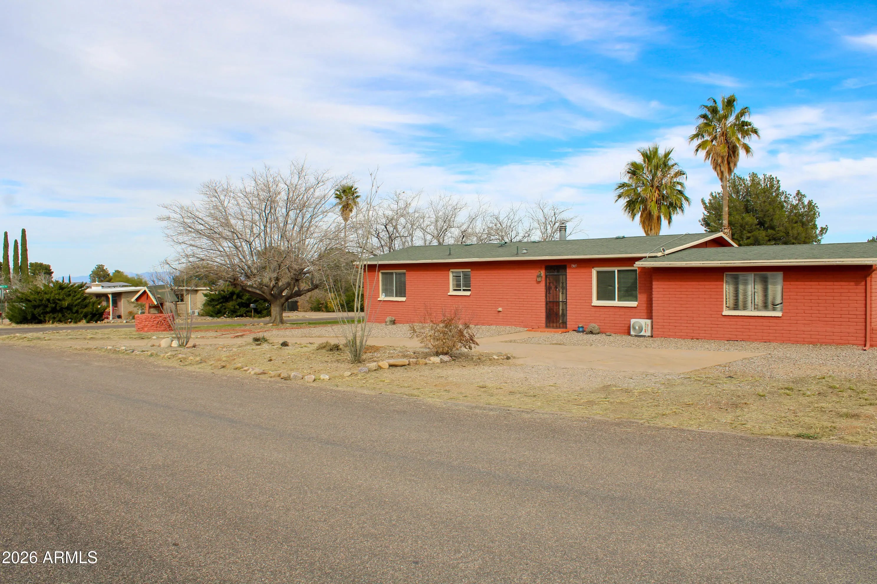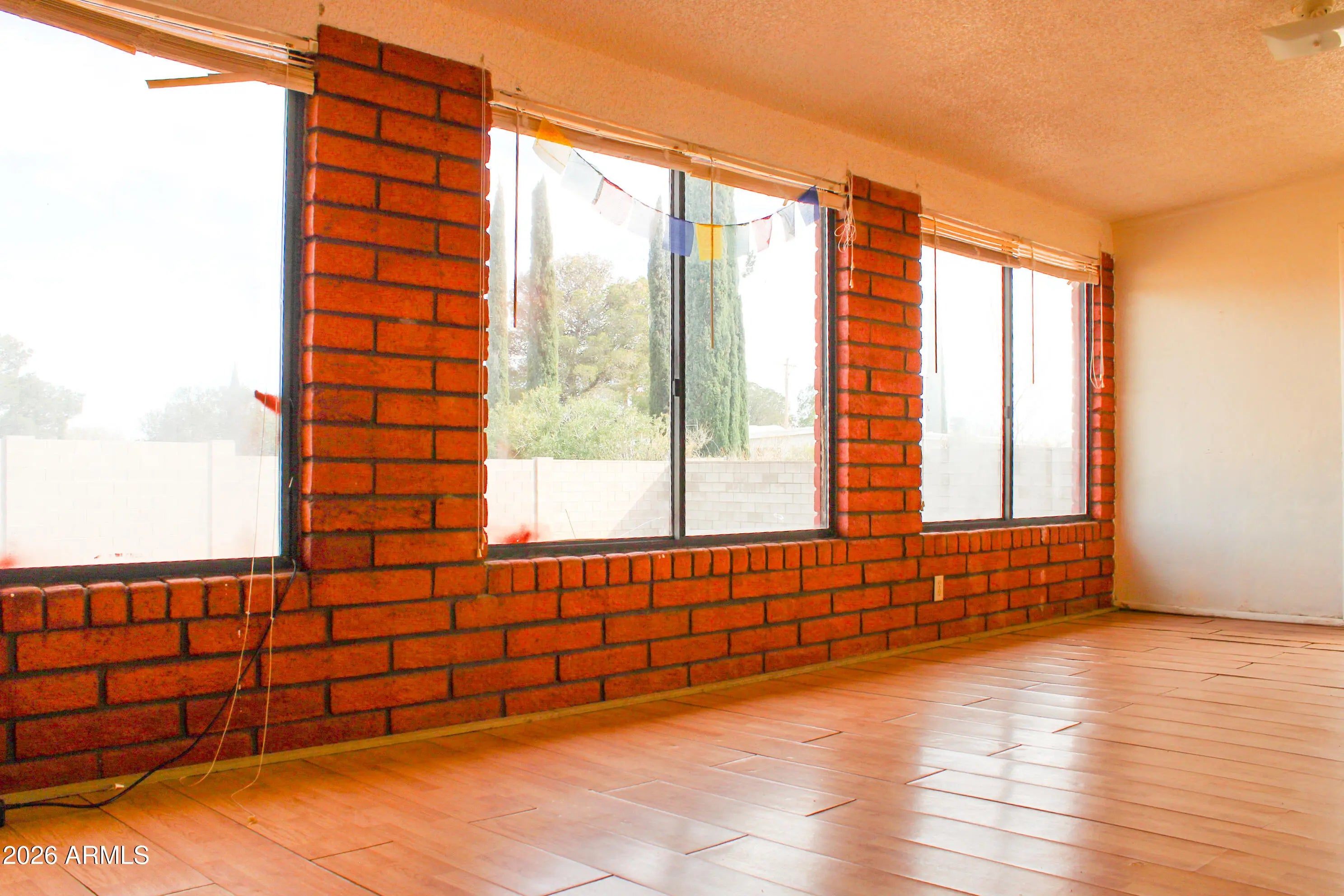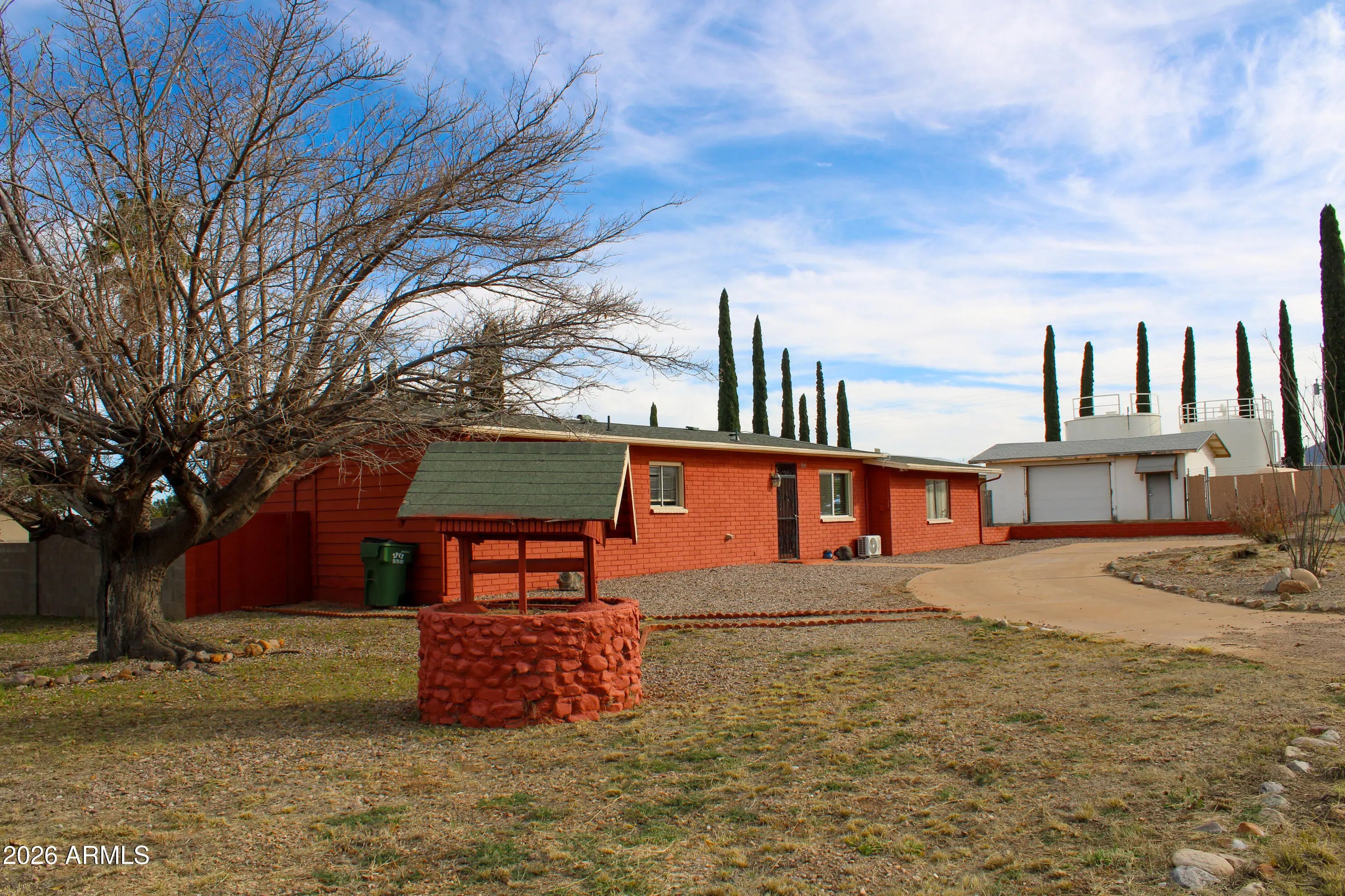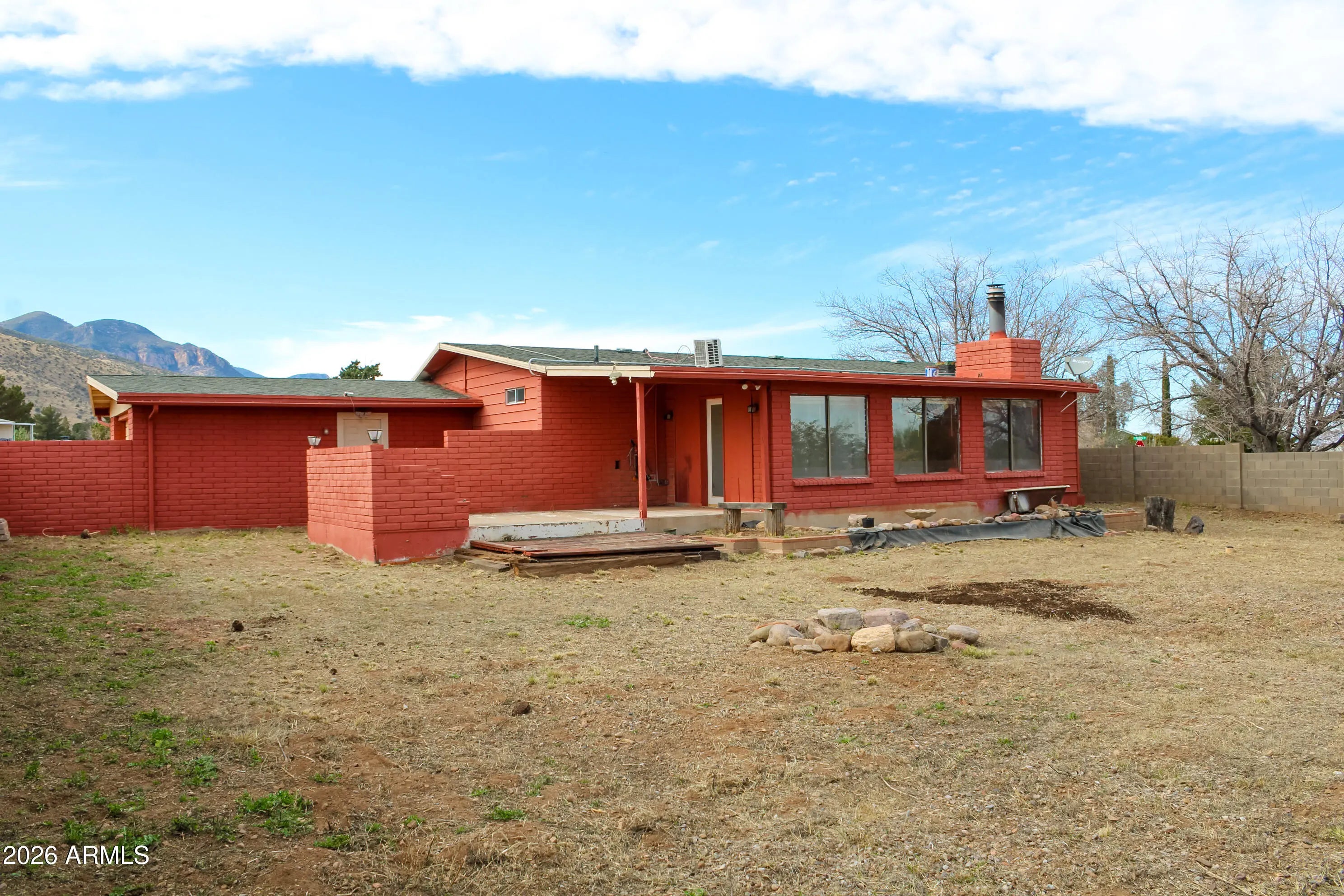 Take advantage of this opportunity to own a unique 2-bed, 2-bath red brick home in Hereford, AZ. Offering 1,190 sq. ft. on a fenced .36-acre lot, this property features a convenient circular driveway and an attached garage. Inside, the highlight is the expansive Arizona Room/Great Room, featuring a cozy wood-burning fireplace with a brick hearth and large windows that invite natural light. The versatile floor plan and classic design maximize the surrounding desert landscape, providing a serene setting for your retreat. With a durable brick exterior and a fully fenced perimeter, this home offers both character and privacy. Priced to sell fast!