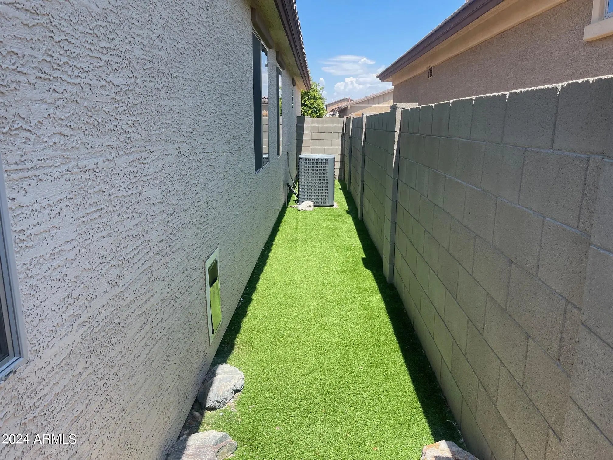 North/South Exposure, Sprinklers In Front, Gravel/Stone Back, Synthetic Grass Back, Natural Desert Front
