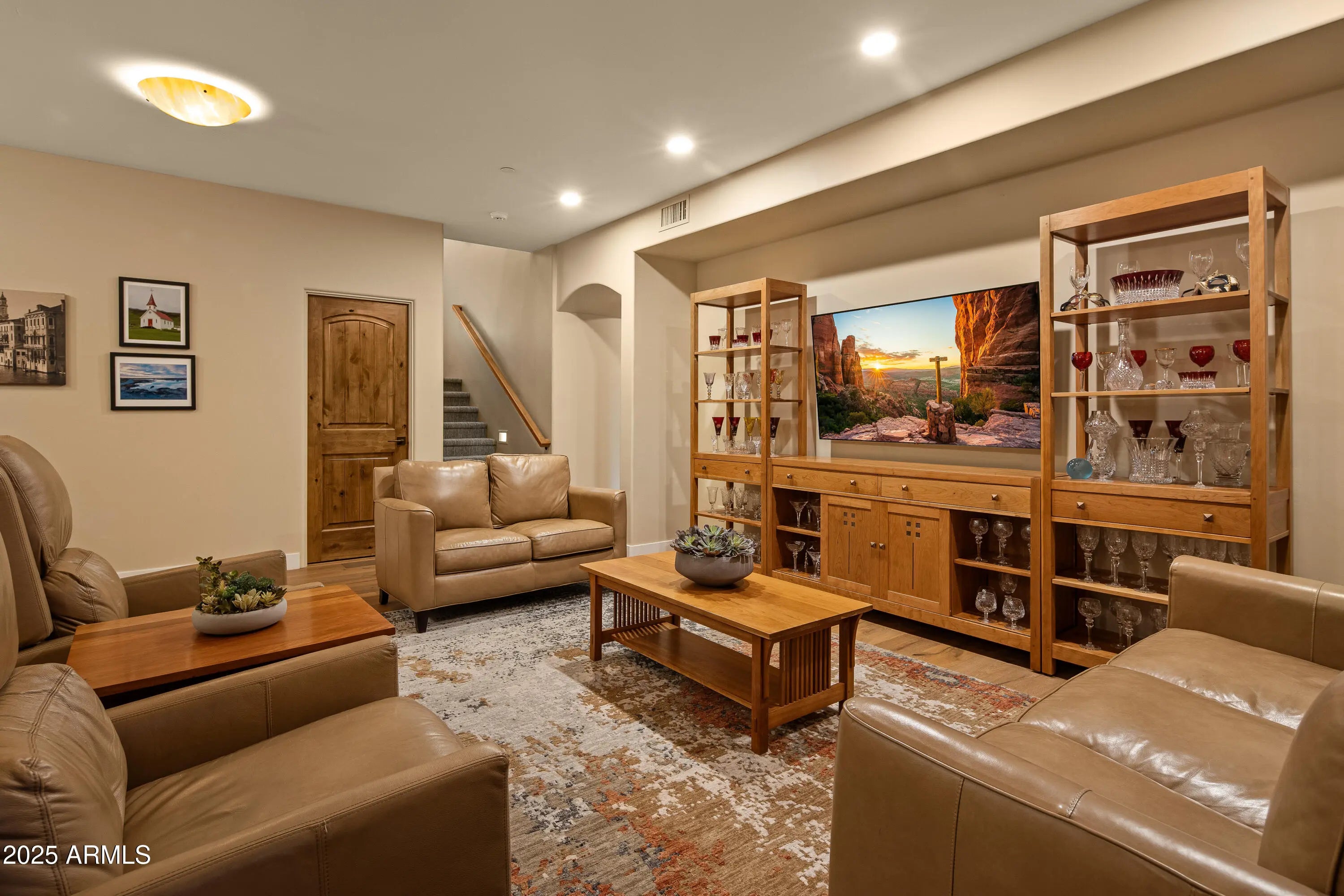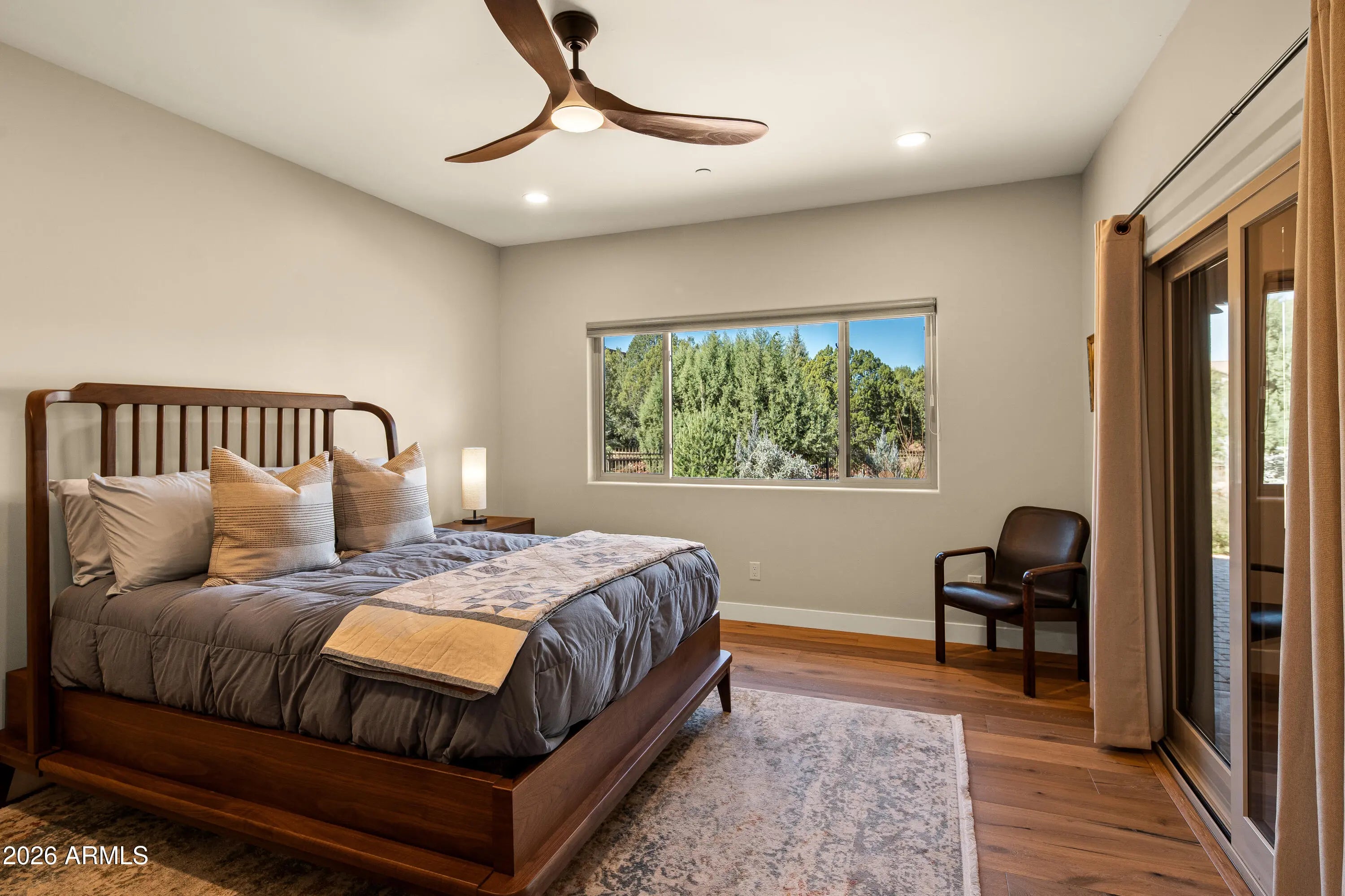 UPGRADED LUXURY REMODEL with stunning Sedona red rock views. This 4 bedroom residence offers a huge media room, 2.5 bathrooms, and 3,405 SqFt of beautifully designed, energy efficient living space. Enjoy unforgettable sunsets from the expansive NEW Trex wraparound deck featuring a gas fire-pit, built in BBQ, and dedicated plumbing and electrical for a future hot tub. The recently landscaped backyard includes a second fire-pit and a waterfall that is beautifully illuminated at night. Inside, the home showcases Mont Blanc quartzite countertops, Miele and Thermador appliances, motorized shades, custom Alder cabinetry, remodeled bathrooms, custom closets, and designer lighting throughout. Every detail reflects refined craftsmanship and thoughtful luxury. Energy Star certified & owned solar! New Feng Shui water feature at front entry installed 12/25. Two water features provide the ultimate ambiance. Some designer furnishings are available for purchase separately. Brochure and complete list of upgrades are available in the MLS.