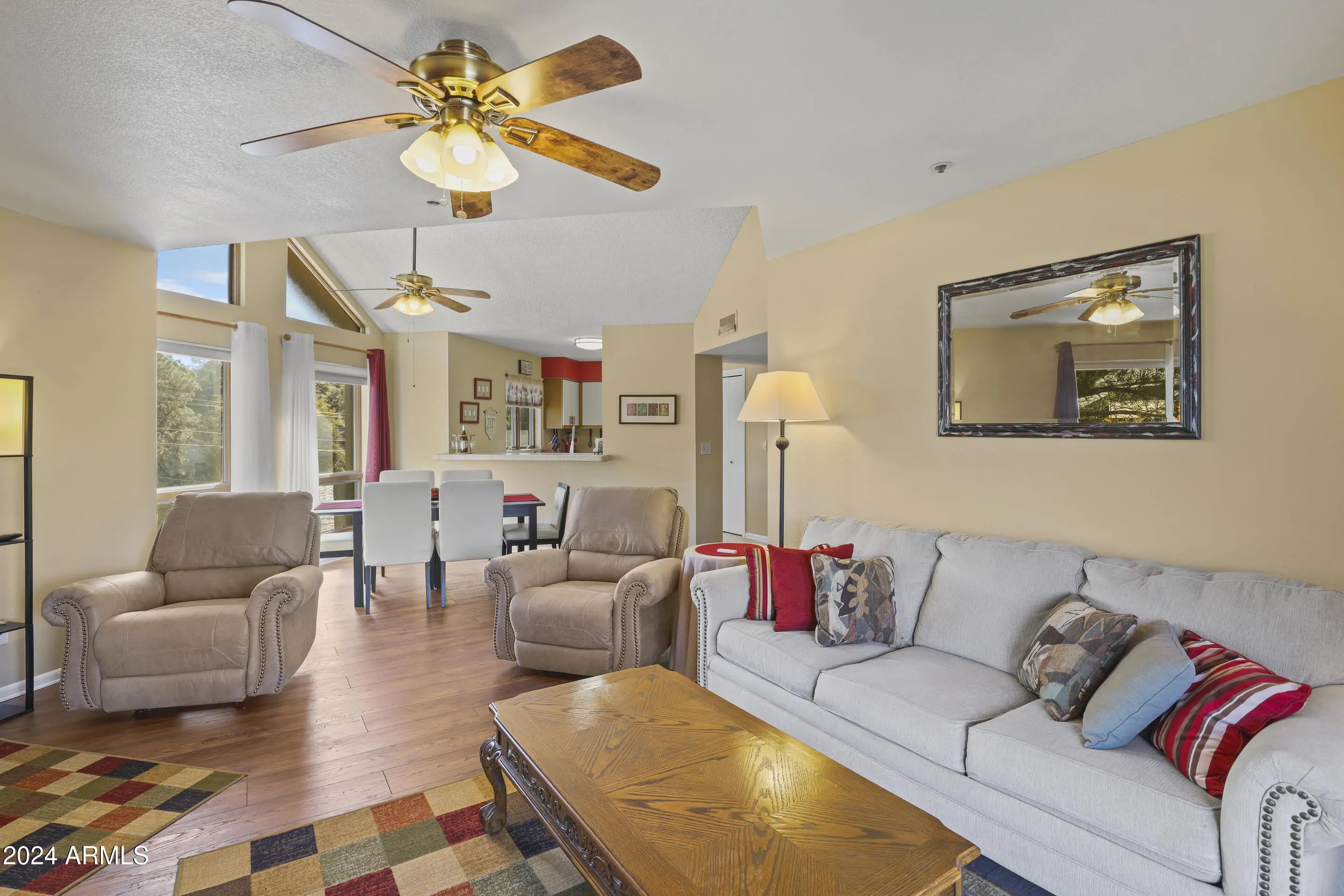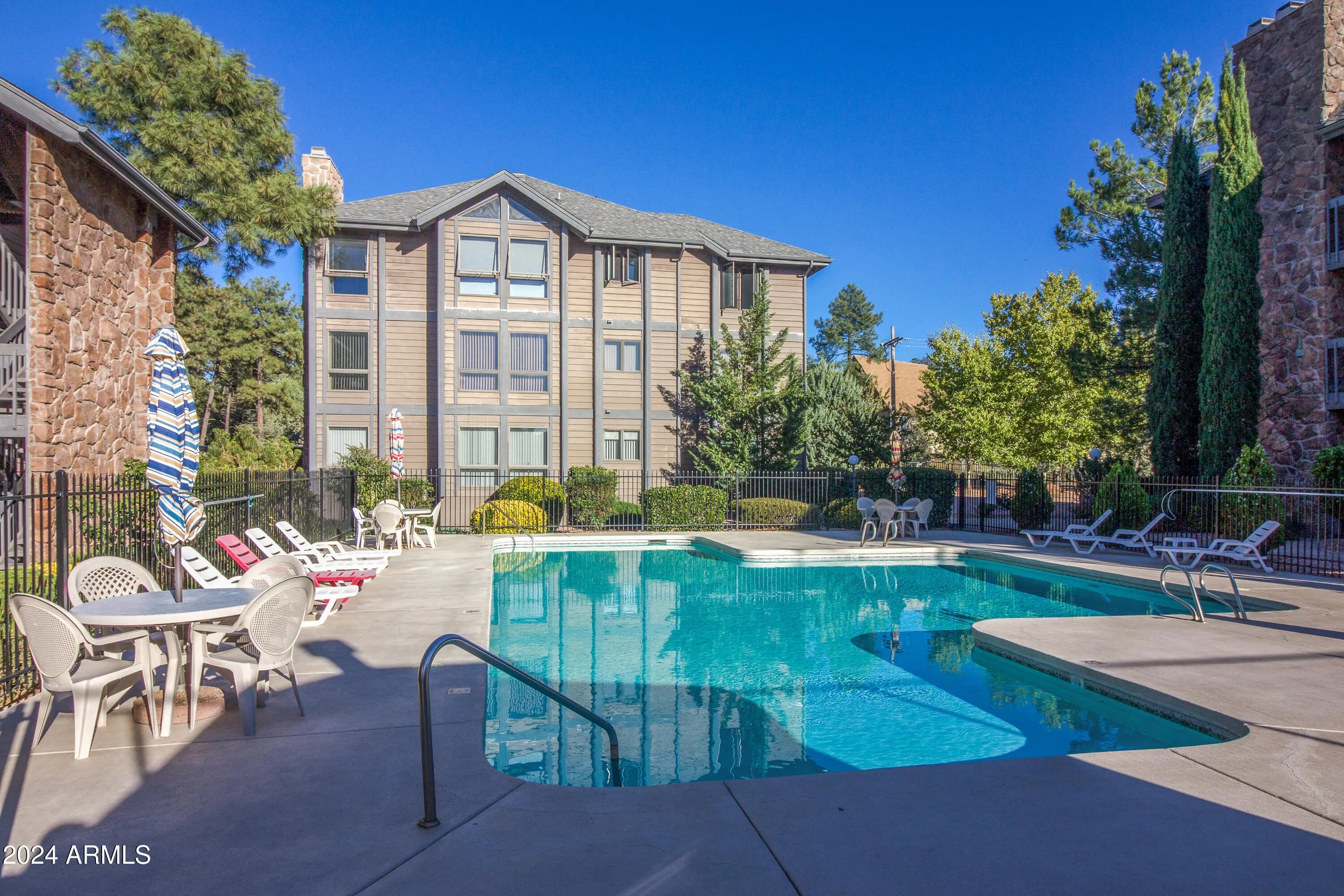 Beautifully updated condo in Four Seasons North with views of the pool! This 2 bedroom, 2 bathroom home features 1,346 Sq. Ft., vaulted ceilings, and luxury vinyl plank floors throughout. The living room has a wood fireplace, an open floor plan to the dining room and plenty of windows for letting in natural light. The kitchen has tons of counter space, a breakfast bar, and plenty of storage with a pantry. The master suite features an oversized vanity, and a walk-in shower. The guest bedroom has a large walk-in closet, and a jack & jill bathroom. You'll love the covered deck perfect for enjoying all four seasons in Payson along with views of the many community amenities.