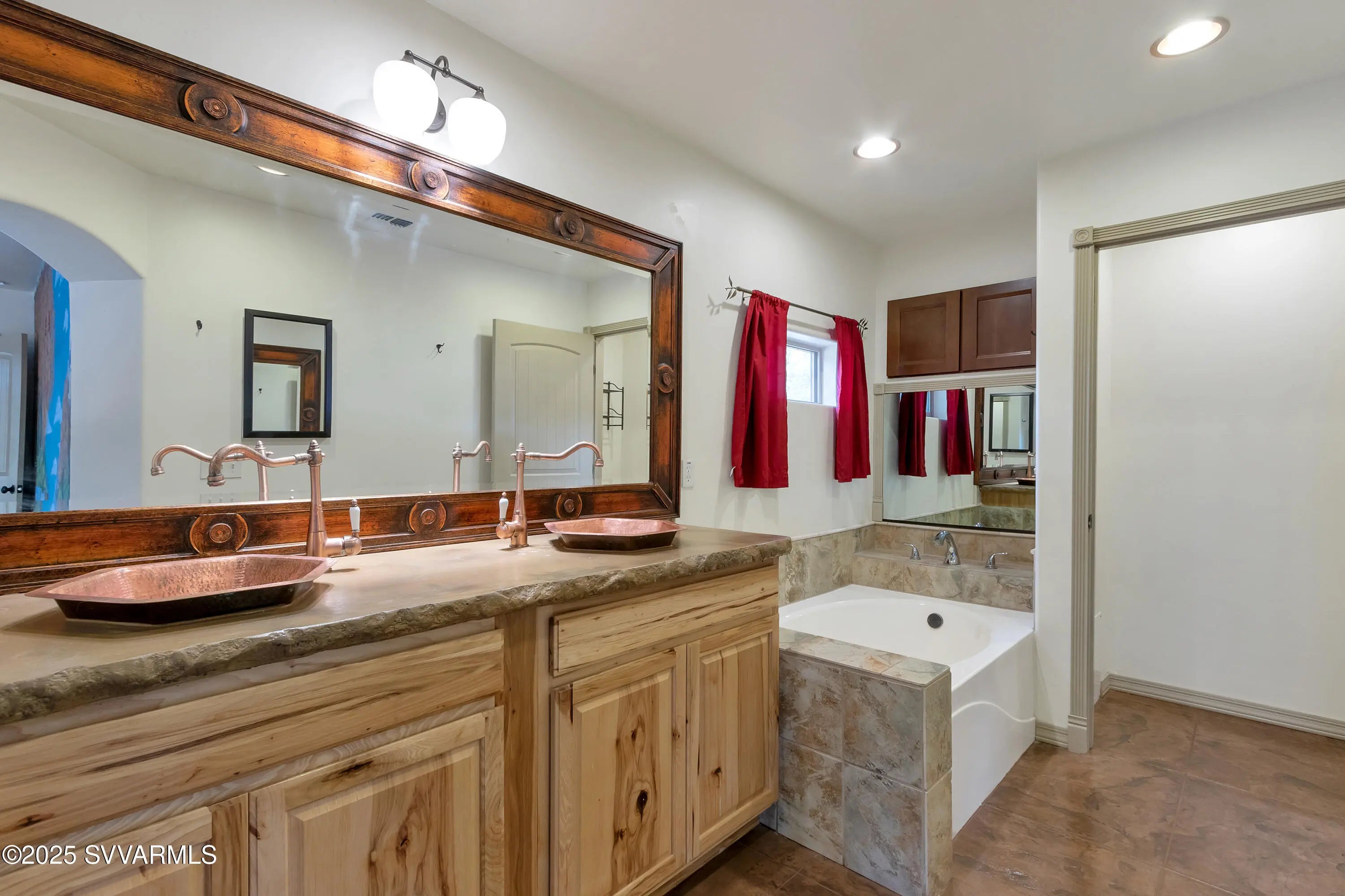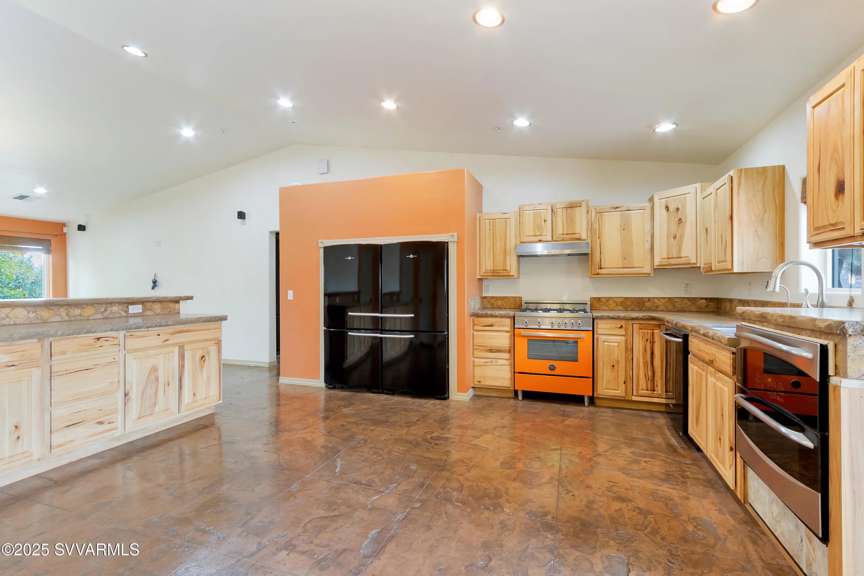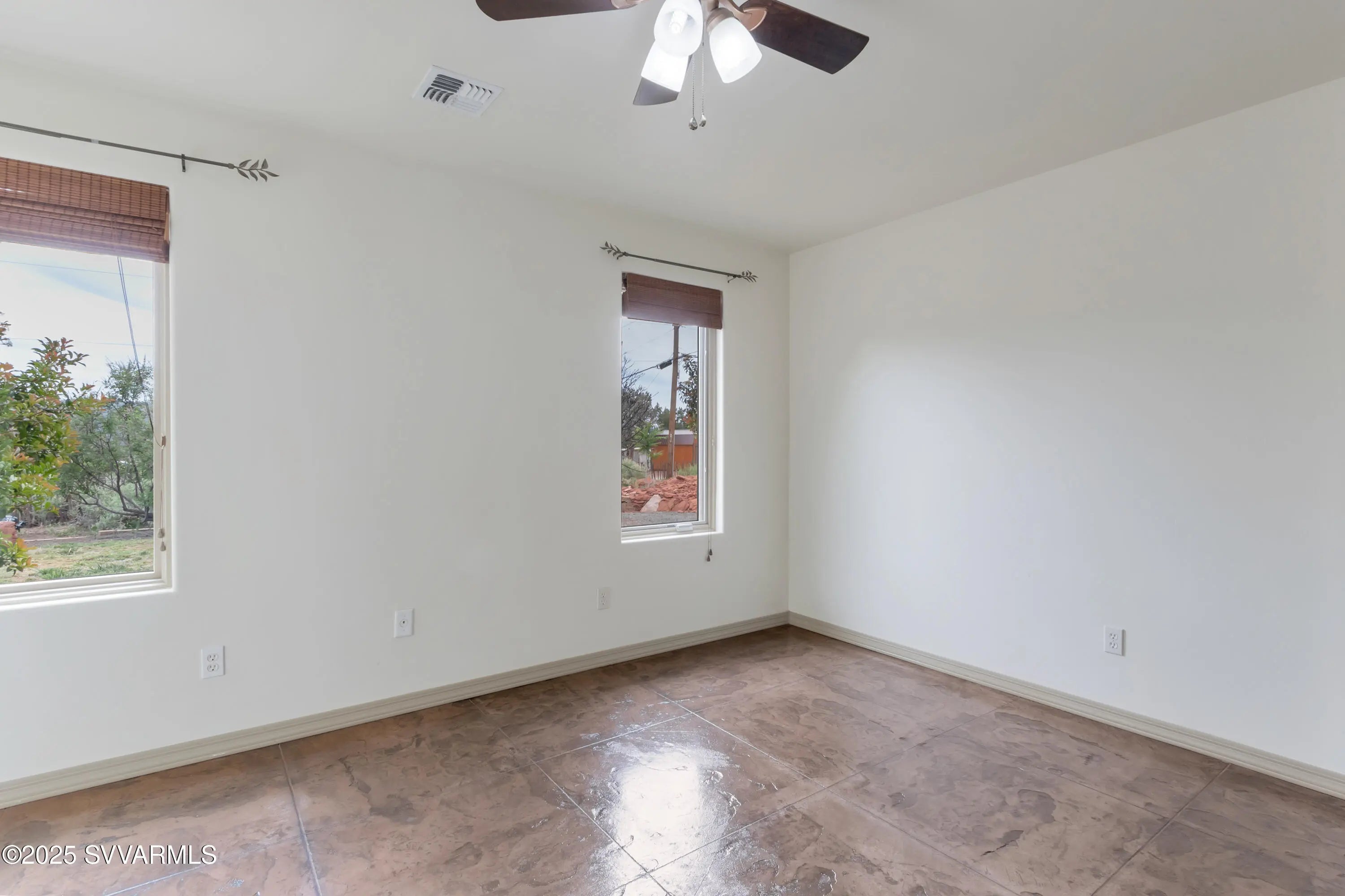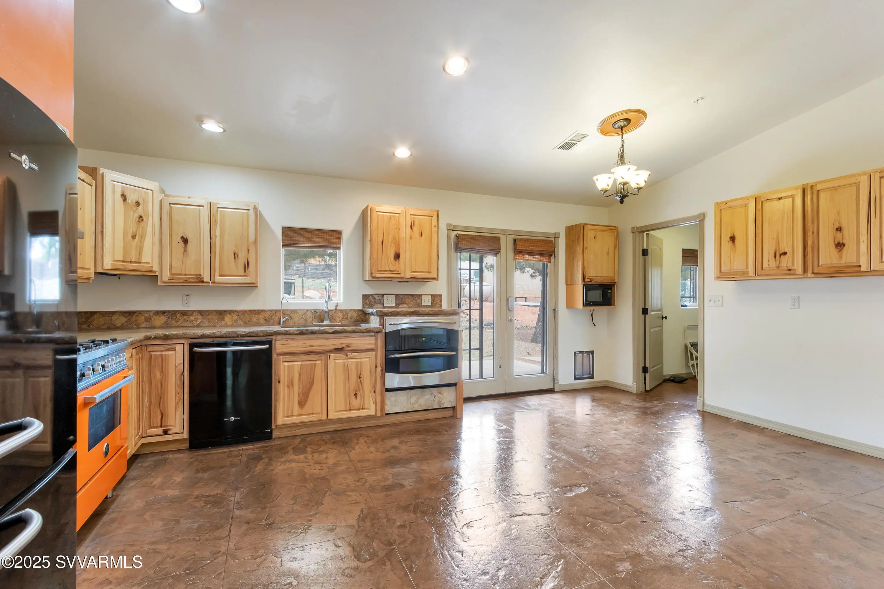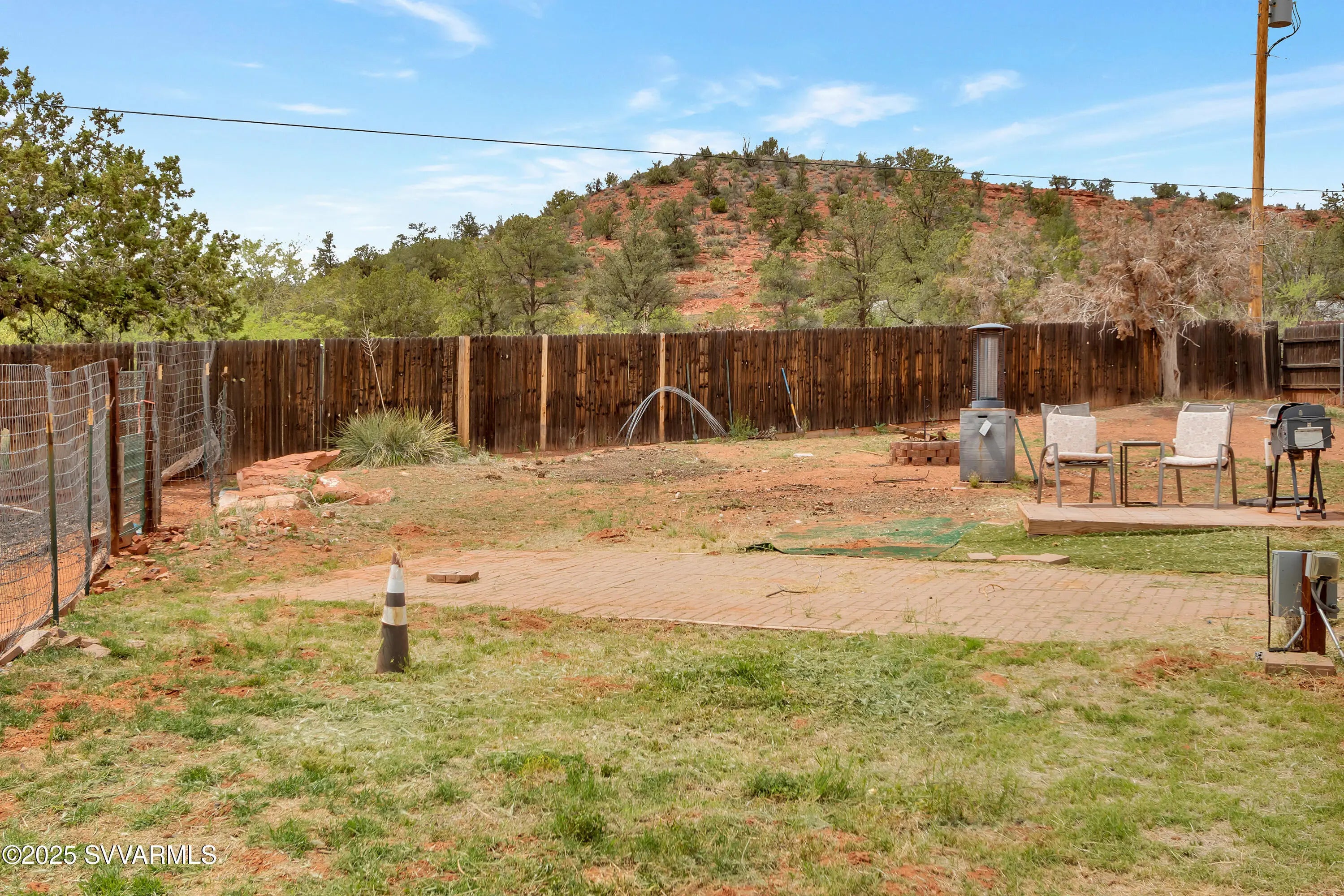 This 2590 sqft, 3-bedroom, 2-bathroom, ranch-style home, with attached 2bed/1bath guest house, offers sweeping panoramic mountain views on a generous 0.8-acre lot, and combines a spacious interior with thoughtful design. The well-appointed kitchen features a gas range, with additional built in double oven, and ample cabinet and counter space. Coupled with the open concept great room it is ideal for entertaining. Step outside to enjoy a concrete patio with a hot tub, surrounded by wonderful views and a fully fenced backyard. For those with an equestrian lifestyle, the property is horse-friendly, allowing up to two horses. It also includes a paved RV parking spot with an electric hookup. Additional highlights of the home include a durable metal roof, an oversized three-car garage and a shared well for water. The property is situated along the scenic Red Rock Loop Road, offering the perfect balance of seclusion and convenience, with easy access to hiking trails, Oak Creek, and the best of Sedona. Adjacent to the garage is an attached guest suite, providing a private and flexible space for visitors, multigenerational living, or rental potential. Door framing in the wall between garage and guest suite was installed during construction to facilitate easy interior access if desired.