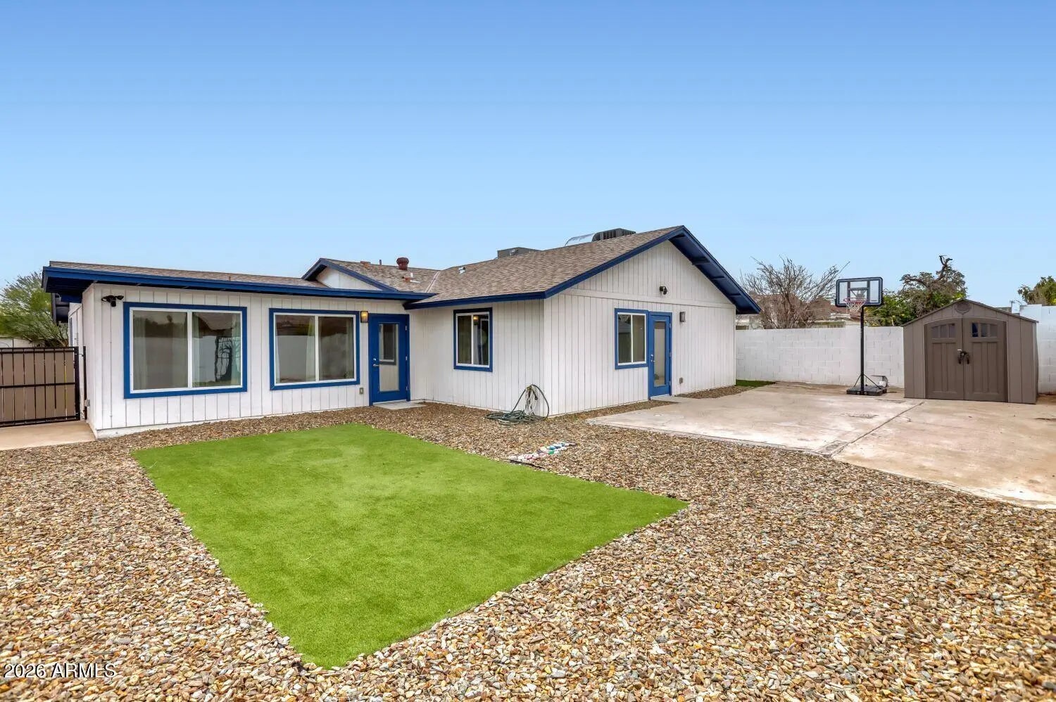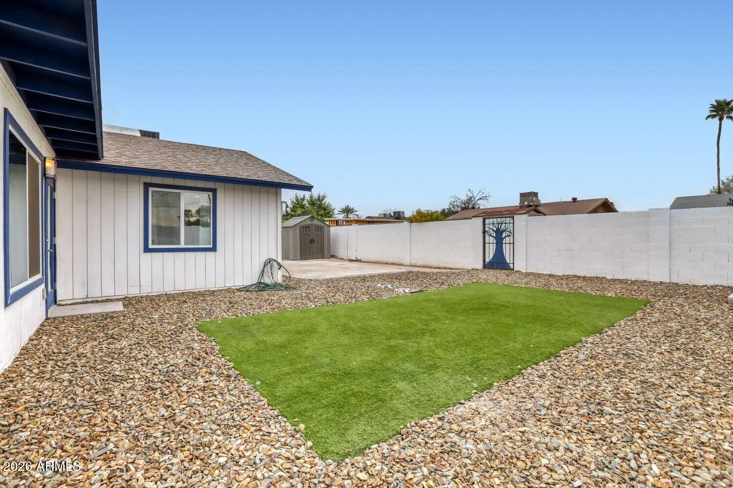 Sprinklers In Front, Alley, Desert Front, Synthetic Grass Back
