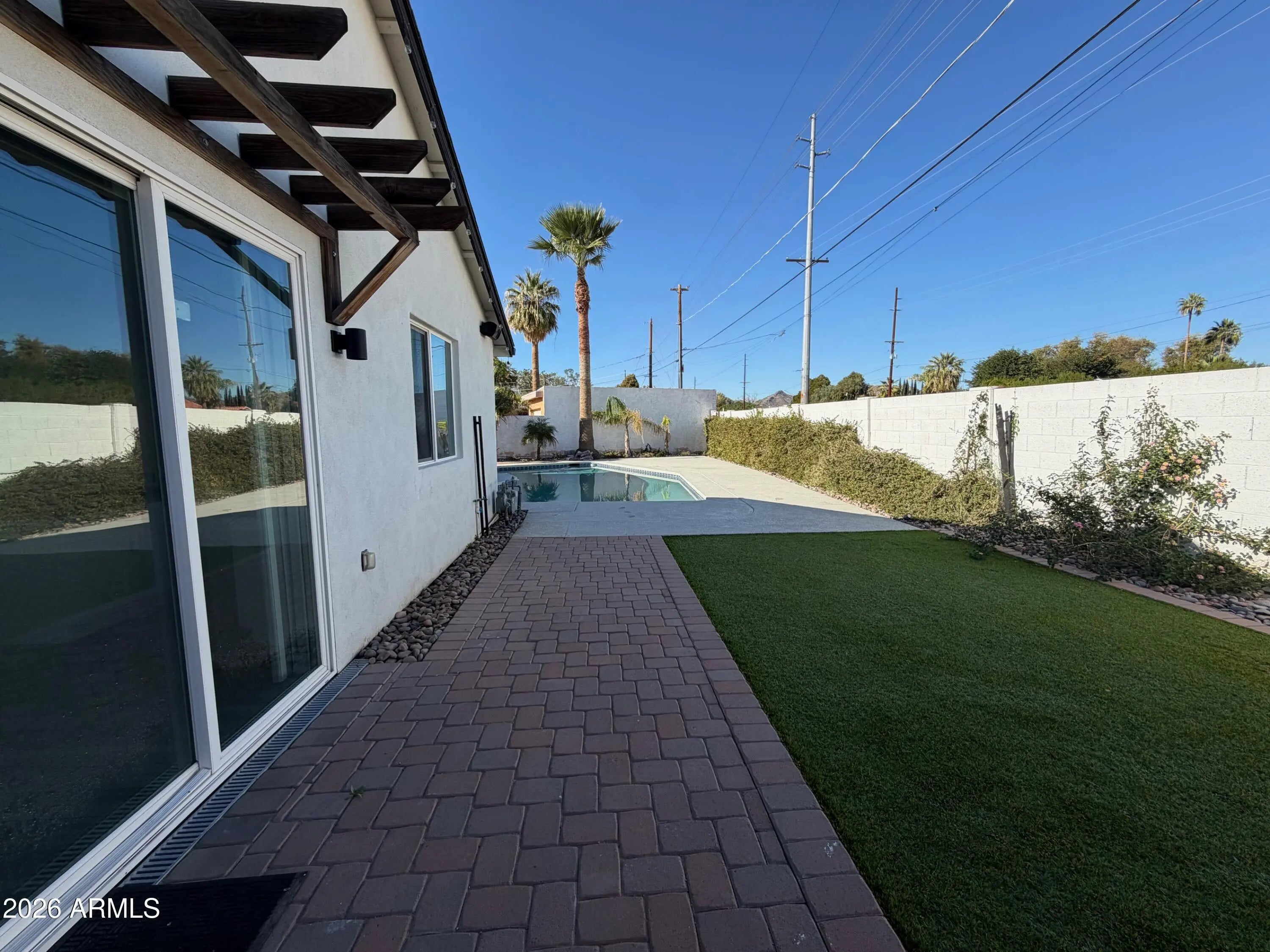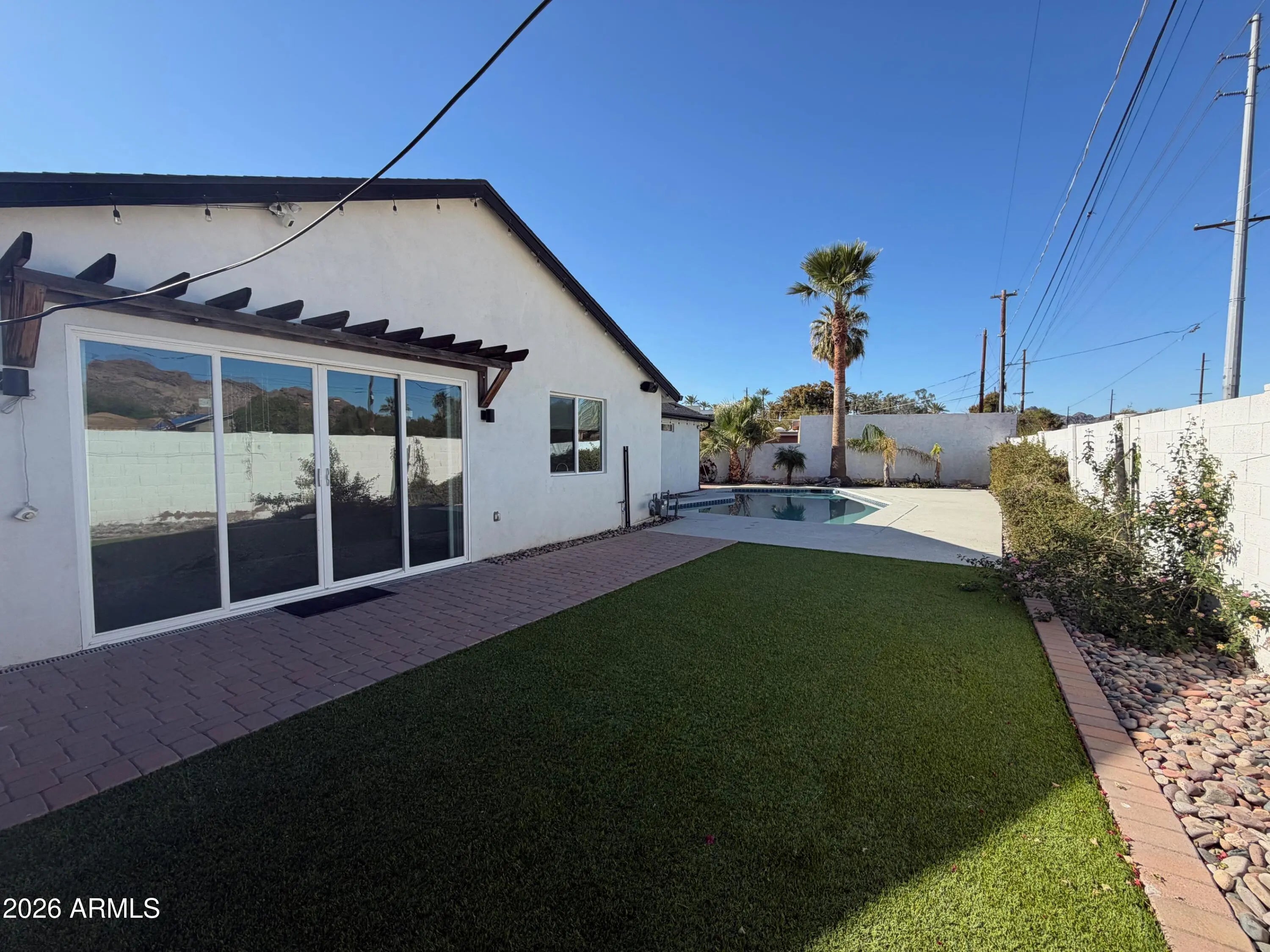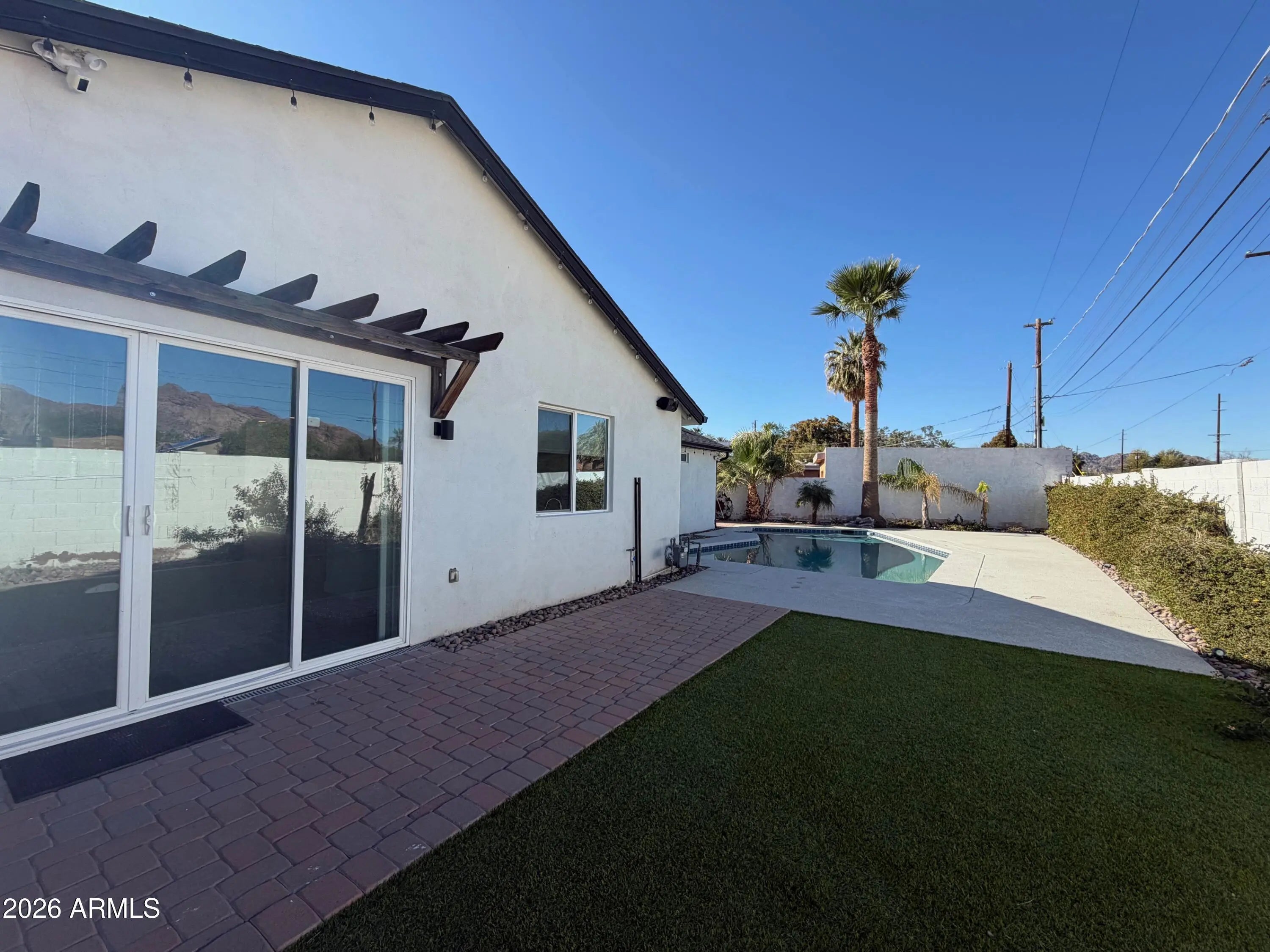 Welcome to this stunning 3 bedroom plus an enclosed office , 2.5 bathroom ranch-style fully remodeled home in the heart of Arcadia. The open concept living space flows seamlessly to the backyard, where you'll be greeted by breathtaking views of Camelback Mountain. The kitchen includes white shaker cabinets, SS appliances & a luxury 36in Empava gas range. With sleek quartz countertops, a grand island with a breakfast bar & a built-in 50 bottle wine fridge, this kitchen is perfect for entertaining. The backyard has artificial turf, a sparkling pool, & access to the Arizona Canal. The large primary bedroom features a spacious ensuite with a double vanity sink, a modern walk-in shower and a walk-in closet. Electric vehicle charger in garage, pool and landscaping included.