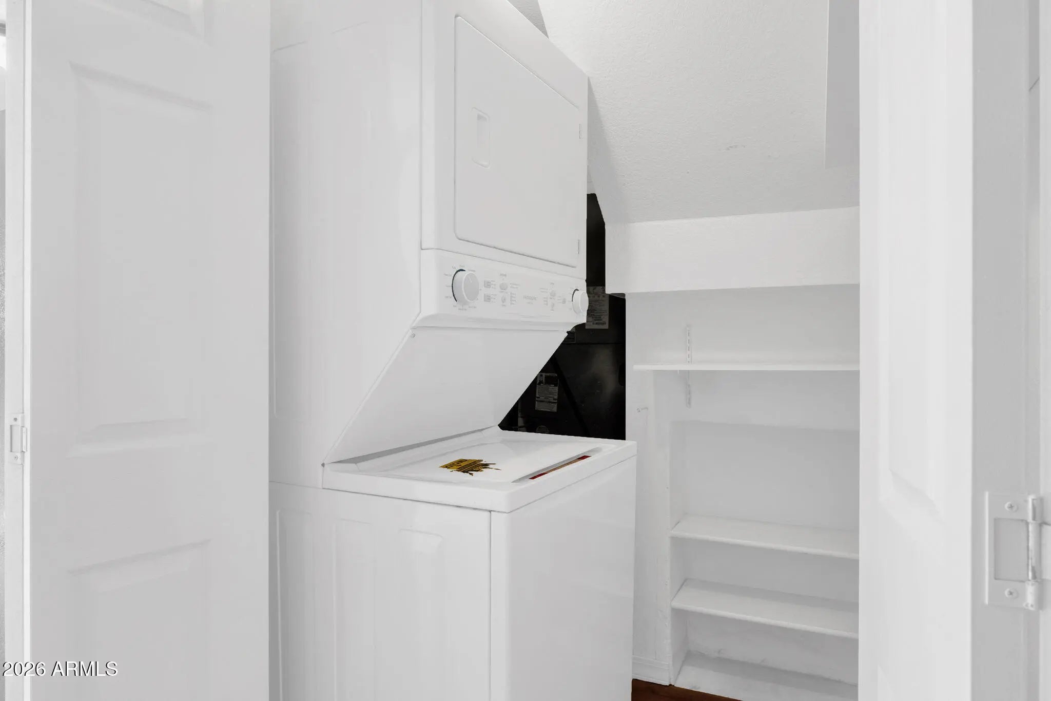 Stacked Washer/Dryer, Dryer, Washer, Refrigerator, Built-in Microwave, Dishwasher, Disposal