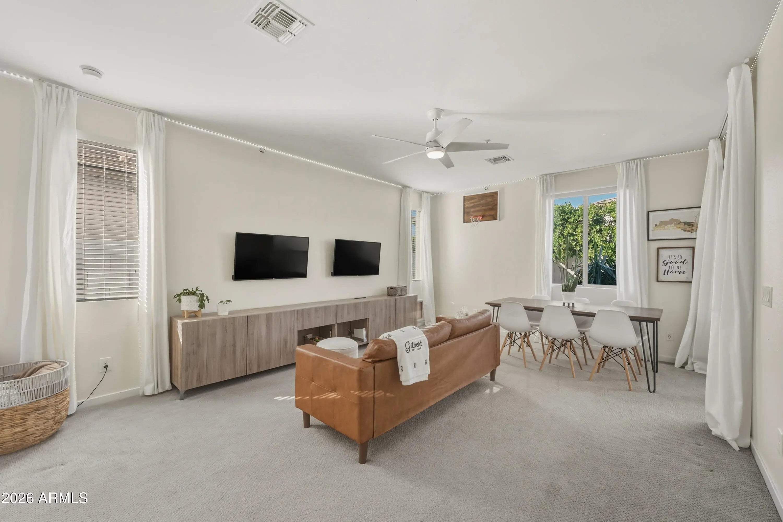 Beautiful home located in the desirable Recker Pointe HOA in Gilbert. This spacious residence offers 4 beds & 3.5 baths with a well-designed layout for everyday living/entertaining. The primary suite features a private master bath with walk-in shower double sinks. Enjoy a dedicated game room complete with 2 TV's and a ping-pong table, plus a versatile flex space currently used as an office. Step outside to your own private backyard retreat featuring a sparkling pool with heated spa, perfect for relaxing/entertaining year-round. Residents of Recker Pointe also enjoy access to a community pool. The home includes window blinds/screens throughout, an owned water softener, & ample storage with pantry space. Ideally located near SanTan Village, dining, shopping, entertainment & freeway access. Close to Downtown Gilbert's Heritage District, Agritopia & the Riparian Preserve at Water Ranch, offering outdoor recreation, trails & local events. This home combines comfort, convenience & the best of Gilbert living.