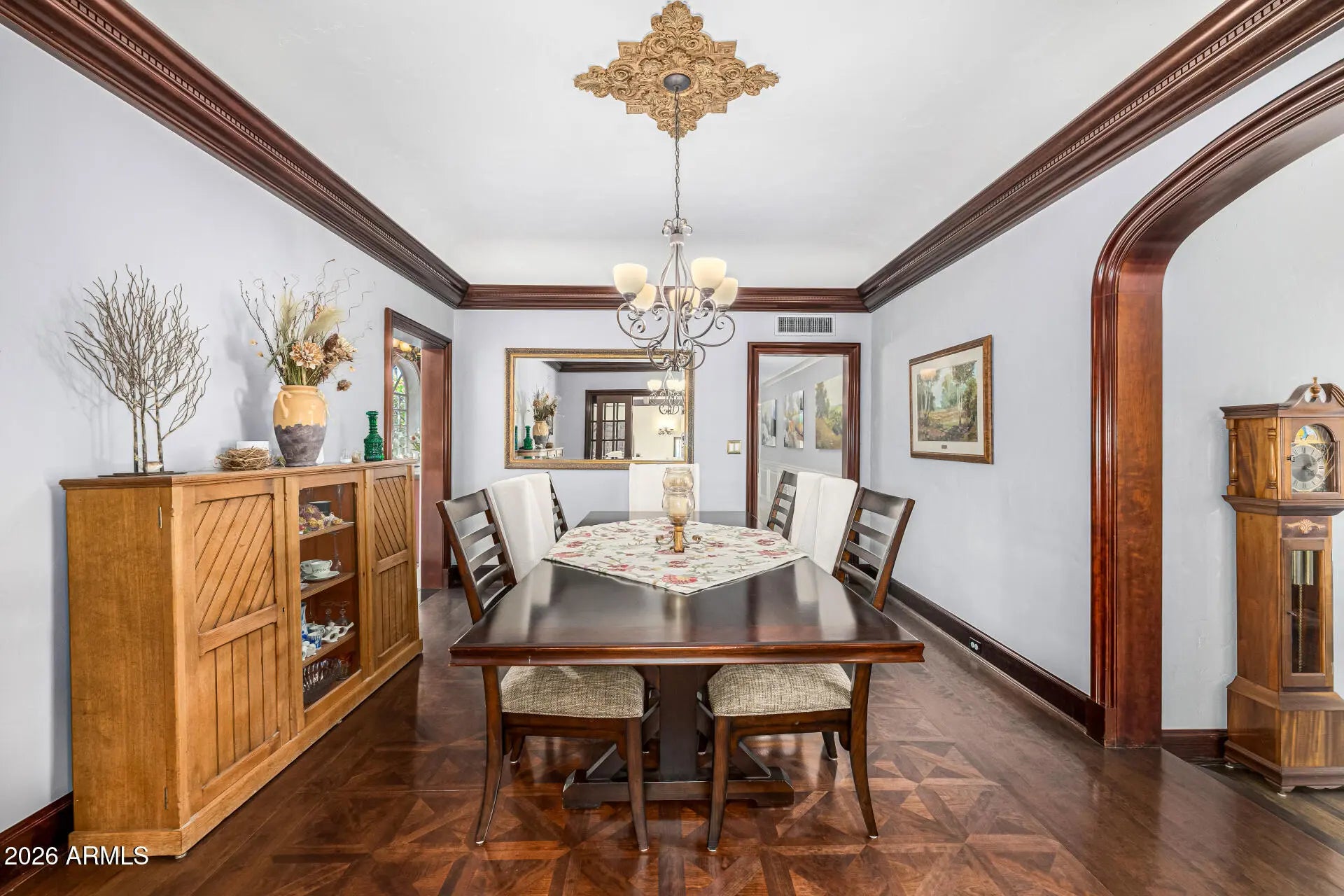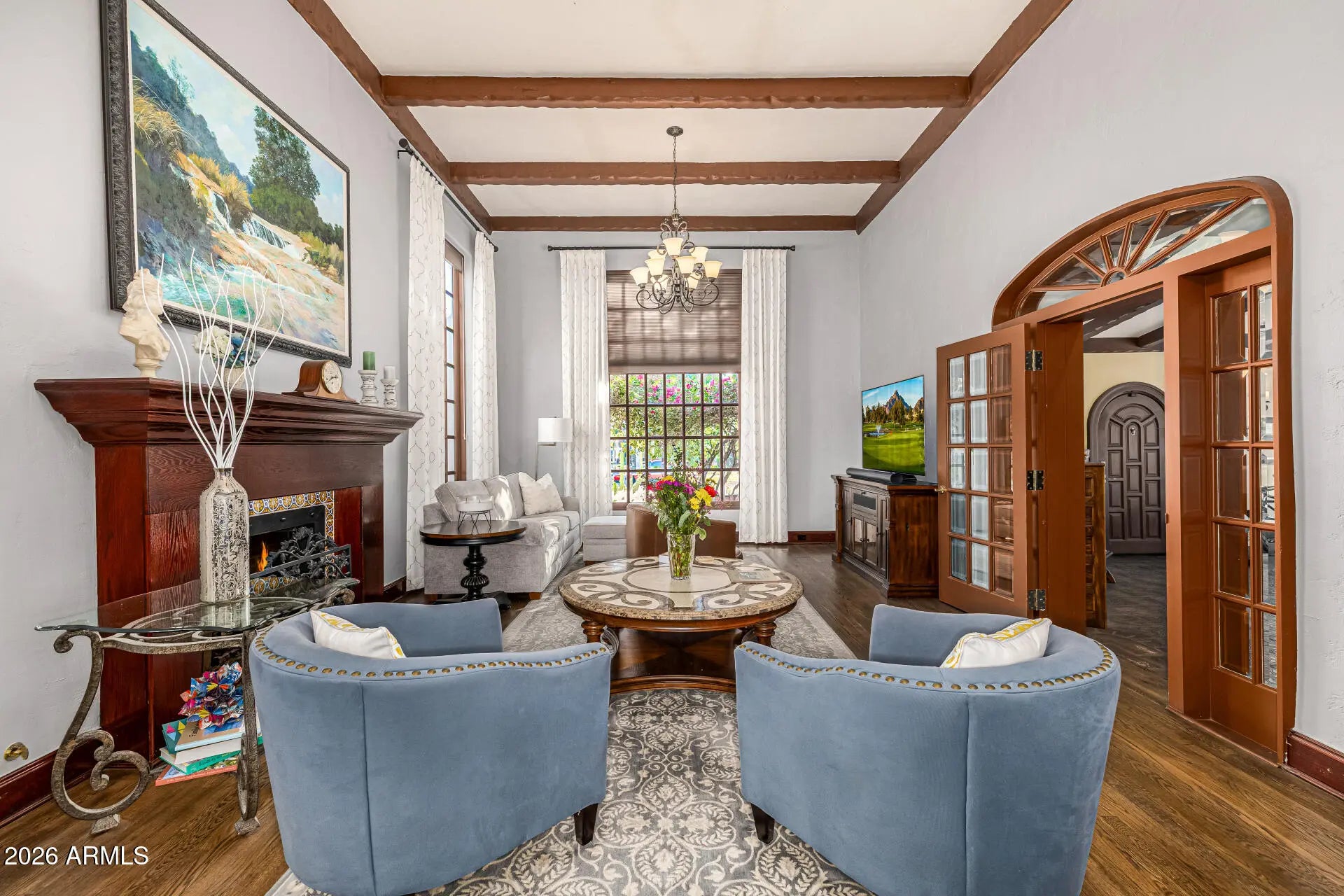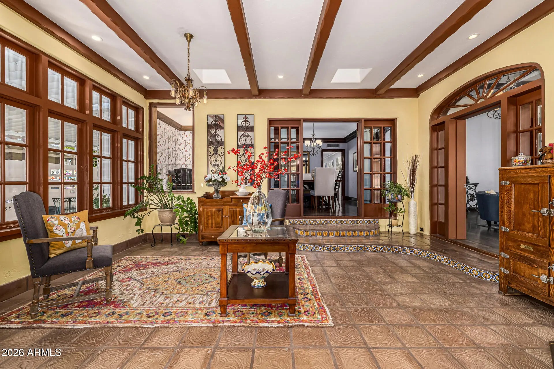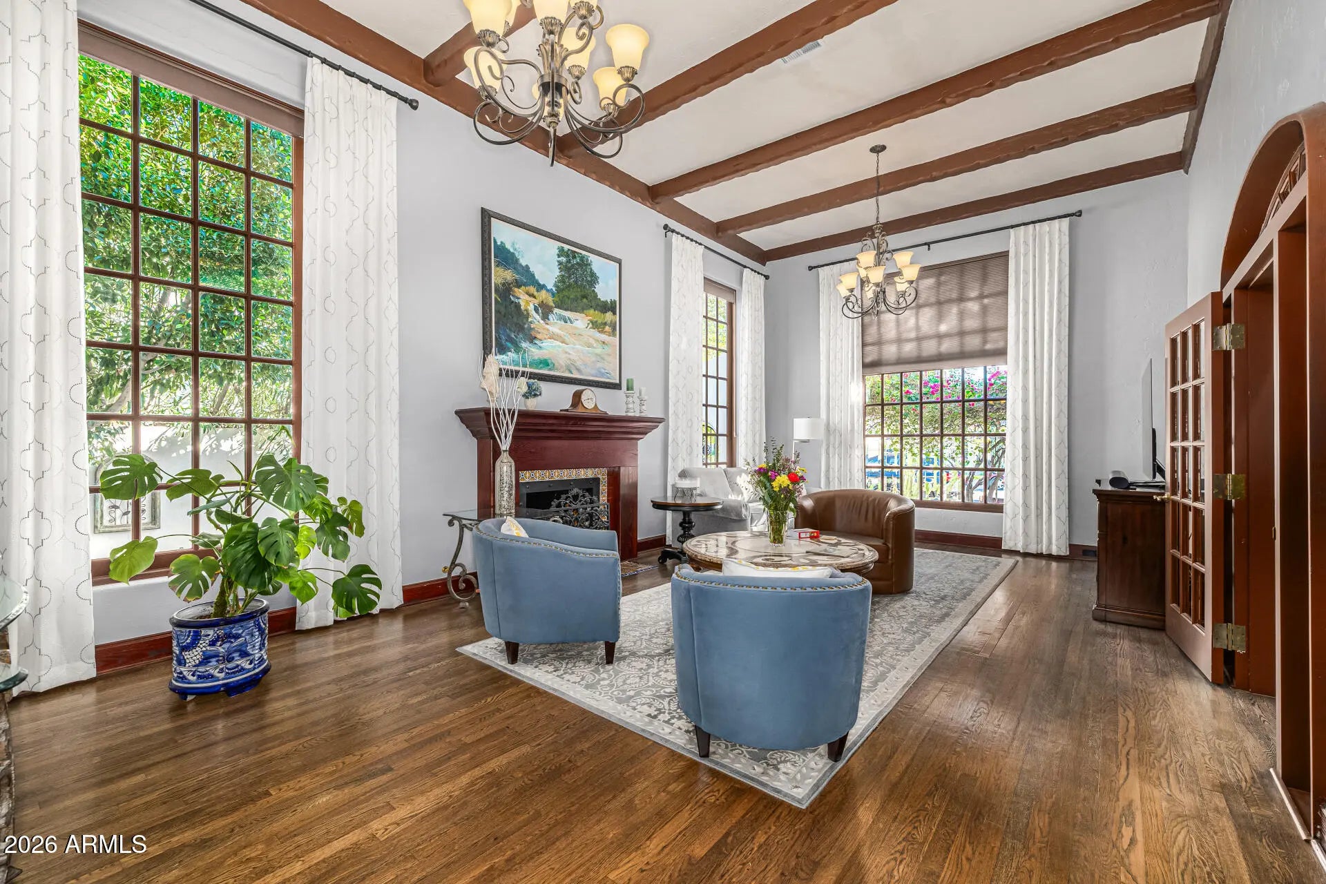 Just listed in the highly coveted Willo Historic District. Known as ''El Padre,'' this iconic 1928 Spanish Mission Revival home-originally built by F.P. Baldi and historically recognized as the Baily & Upshaw Spec House-is a true architectural landmark. Concrete masonry construction, stucco exterior, and a high-pitched clay tile roof with exposed rafters anchor its timeless design, while arched entry details, Talavera tile accents, custom wrought iron, and dramatic windows complete the Spanish electric style. The home's significance is reflected in its multiple magazine features, including three cover appearances since 2016 and recognition by Phoenix Home & Garden. Inside, original character blends seamlessly with thoughtful modern upgrades. Highlights include a grand foyer with hand-hewn beams, Saltillo flooring, and skylights; an elegant ballroom with soaring ceilings and original wood floors; and a beautifully updated kitchen featuring solid surface counters, a nook, & hand-painted Talavera tile, premium appliances, and restored ceilings. The primary suite offers a spa-like bath with heated floors and custom finishes, while the outdoor spaces showcase a heated and chilled saltwater pool (2022), brick pavers, custom ironwork, and updated mechanical systems, preserving historic charm while delivering today's comfort and convenience. You can't beat the location of this home & you have a chance to own a piece of history. It's an amazing neighborhood with quick access to popular restaurants and the Art district.