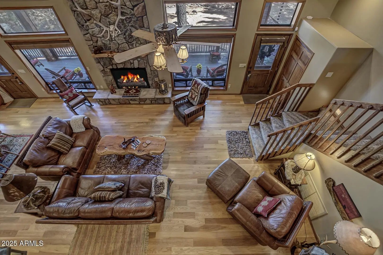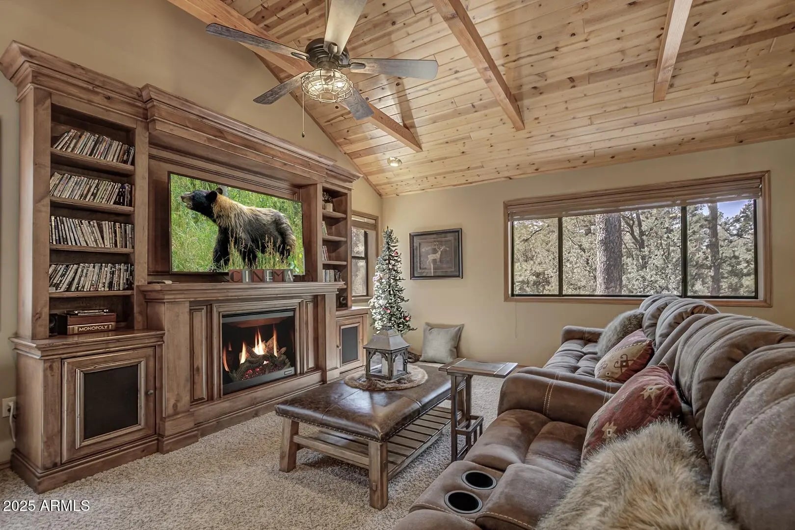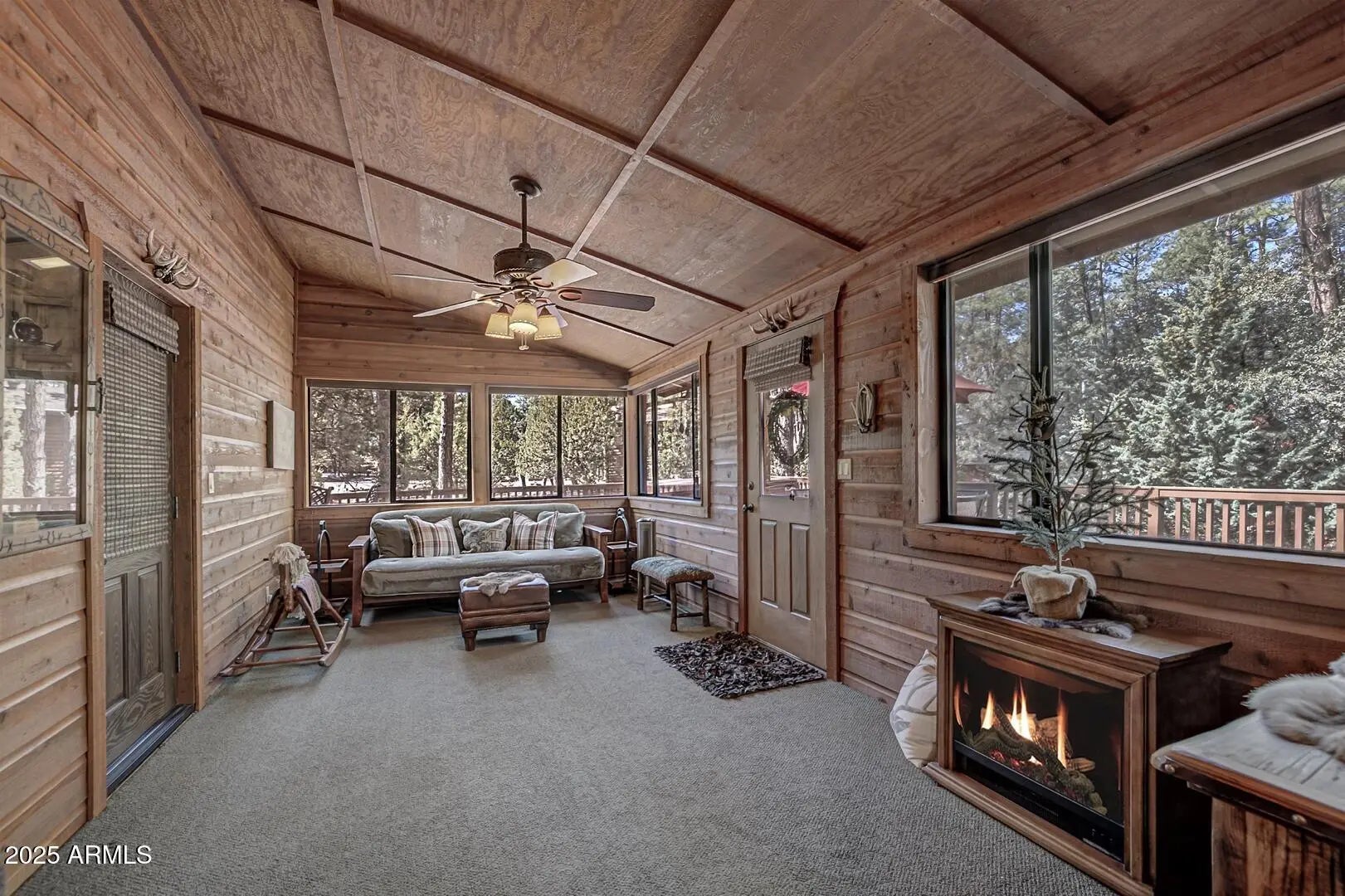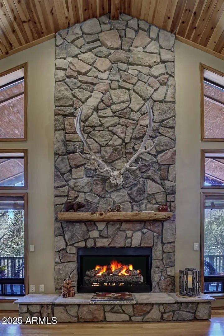 Nestled among towering pines in a private, gated community, this fabulous turn-key cabin offers mountain views and comes fully furnished—ready for you to enjoy! Step inside to a spacious great room featuring soaring wood cathedral ceilings, wood flooring, and a striking rock-faced gas fireplace. A wall of windows fills the space with natural light and showcases the stunning scenery, while the expansive covered wraparound deck with built in BBQ and opens to a large back deck with hot tub, which steps down to a propane fire pit—perfect for enjoying crisp mountain evenings. The well-appointed kitchen boasts a large island with granite countertops, a gas range, and plenty of space for cooking and gathering. Adjacent to the kitchen, a sunroom offers a cozy retreat—perfect as a a sitting area or extra sleeping space. The main level includes a luxurious primary suite with an upgraded ensuite bath and private access to the back deck. A comfortable guest bedroom and a full bath complete the main floor. Upstairs, a spacious loft serves as the ultimate family game room, complete a cozy electric fireplace. An additional bedroom and bathroom for guest and family. Situated on a generous 0.53-acre lot, this property provides ample privacy while keeping you close to nature. New Roof 2026, a large garage for all your mountain gear, this home is the perfect getaway for those seeking tranquility, adventure, and the beauty of the outdoors. Don't miss this rare opportunityschedule your private showing today!