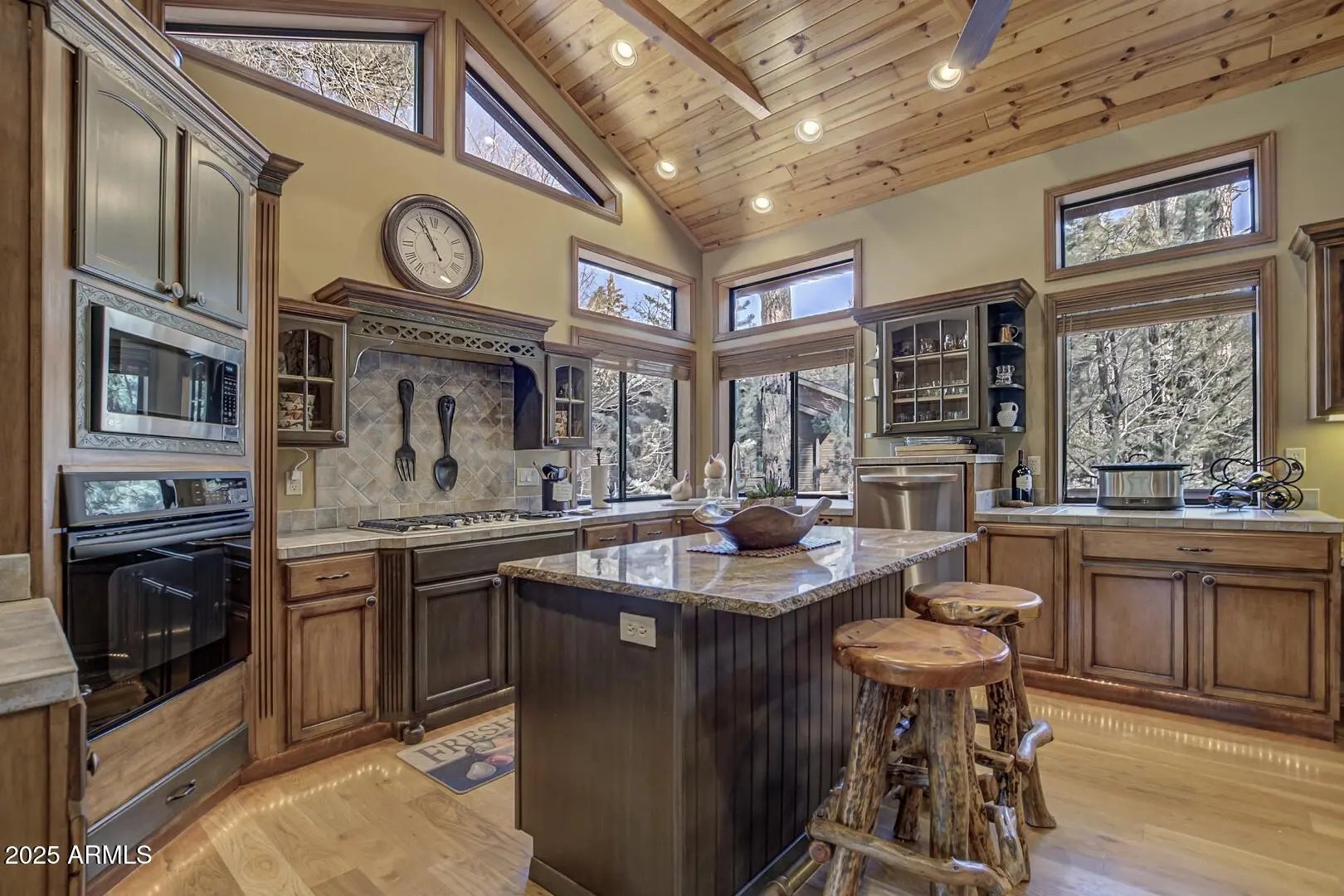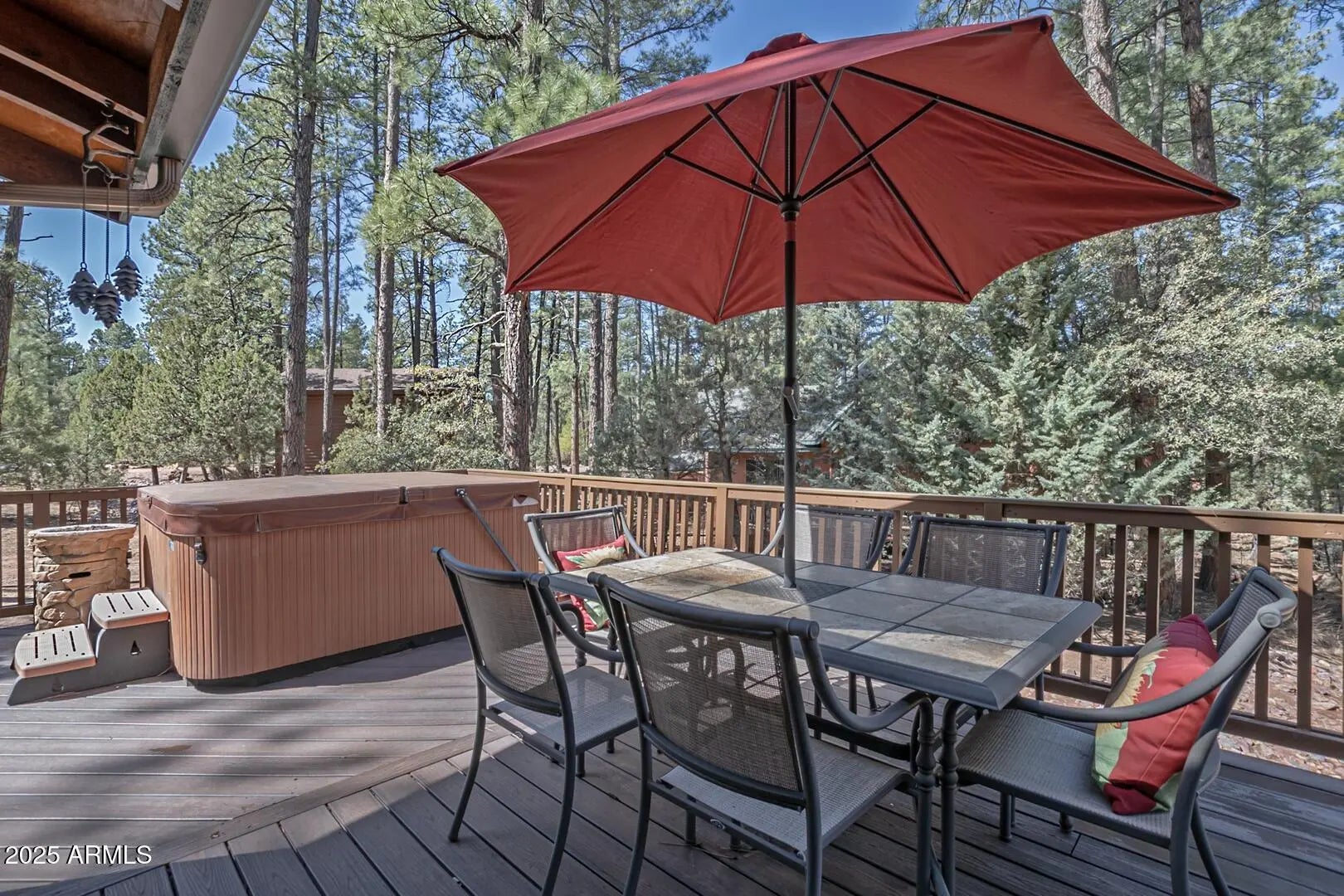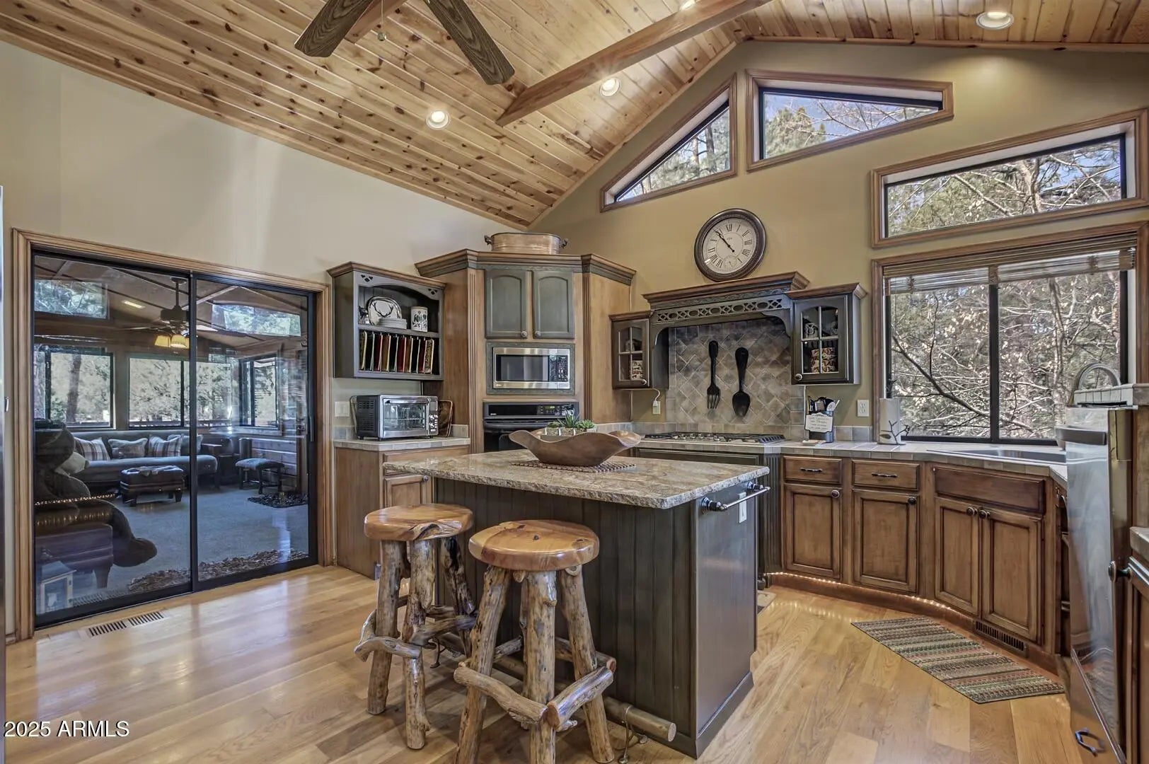 Nestled among towering pines in a private, gated community, this fabulous turn-key cabin offers mountain views and comes fully furnished—ready for you to enjoy! Step inside to a spacious great room featuring soaring wood cathedral ceilings, wood flooring, and a striking rock-faced gas fireplace. A wall of windows fills the space with natural light and showcases the stunning scenery, while the expansive covered wraparound deck with built in BBQ and opens to a large back deck with hot tub, which steps down to a propane fire pit—perfect for enjoying crisp mountain evenings. The well-appointed kitchen boasts a large island with granite countertops, a gas range, and plenty of space for cooking and gathering. Adjacent to the kitchen, a sunroom offers a cozy retreat—perfect as a a sitting area or extra sleeping space. The main level includes a luxurious primary suite with an upgraded ensuite bath and private access to the back deck. A comfortable guest bedroom and a full bath complete the main floor. Upstairs, a spacious loft serves as the ultimate family game room, complete a cozy electric fireplace. An additional bedroom and bathroom for guest and family. Situated on a generous 0.53-acre lot, this property provides ample privacy while keeping you close to nature. New Roof 2026, a large garage for all your mountain gear, this home is the perfect getaway for those seeking tranquility, adventure, and the beauty of the outdoors. Don't miss this rare opportunityschedule your private showing today!