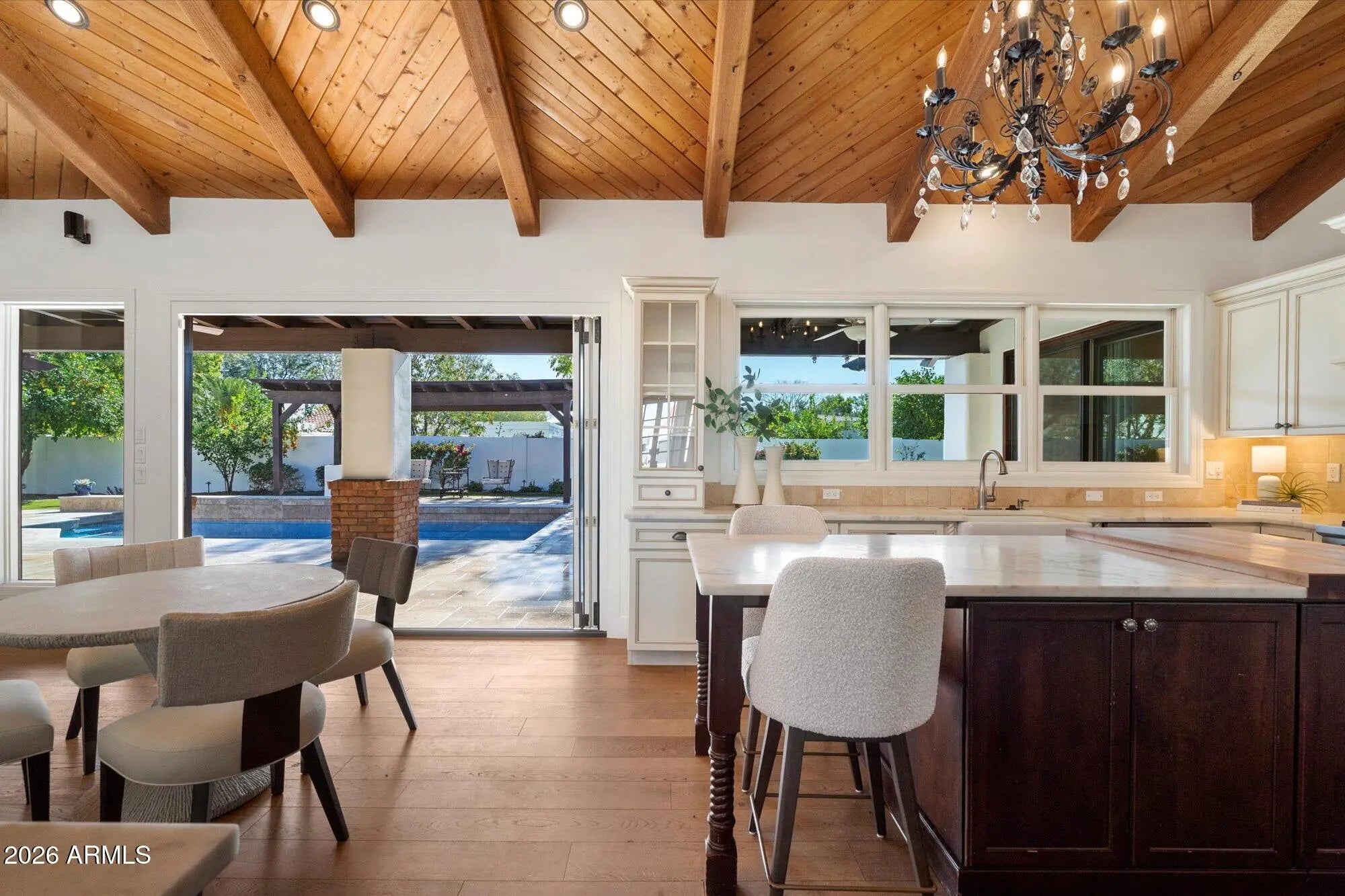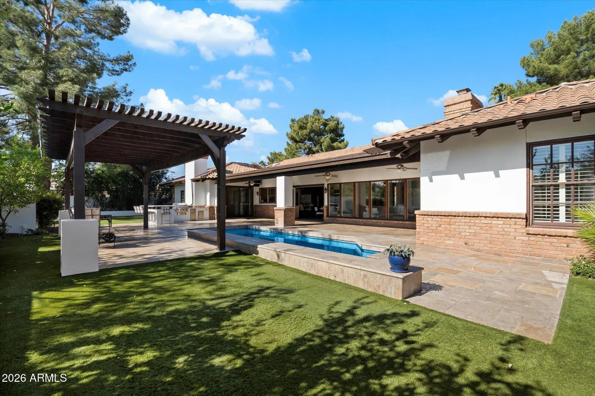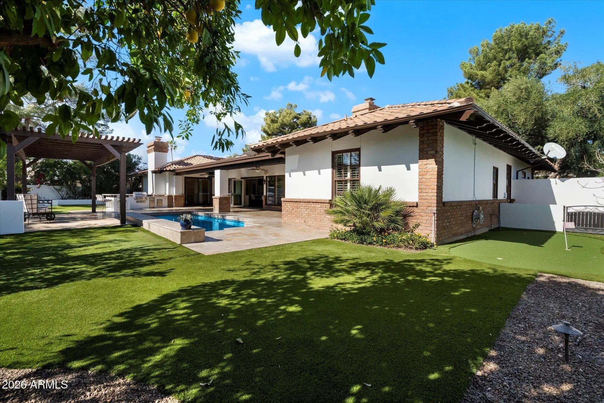Located in Arizona's WEALTHIEST zip code, 85253, and within the THREE C's school district, this RENOVATED 4 bedroom residence sits on a nearly half-acre lot. The home is minutes from the $2B redevelopment of the PV Mall, placing it near one of Paradise Valley's most dynamic and evolving destinations. The residence offers a well-designed split floor plan and is finished with premium materials throughout, including Wolf and Sub-Zero appliances, marble surfaces, and custom cabinetry. A secluded primary suite features a luxurious high-end bathroom and a large custom walk-in closet. Vaulted wood-plank ceilings anchor the open kitchen and living spaces, opening to a private backyard with a gorgeous tile pool, built-in BBQ, putting green and gazebo.
