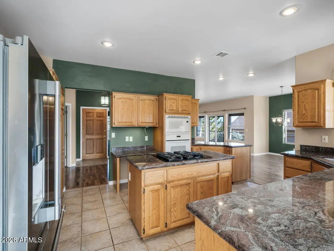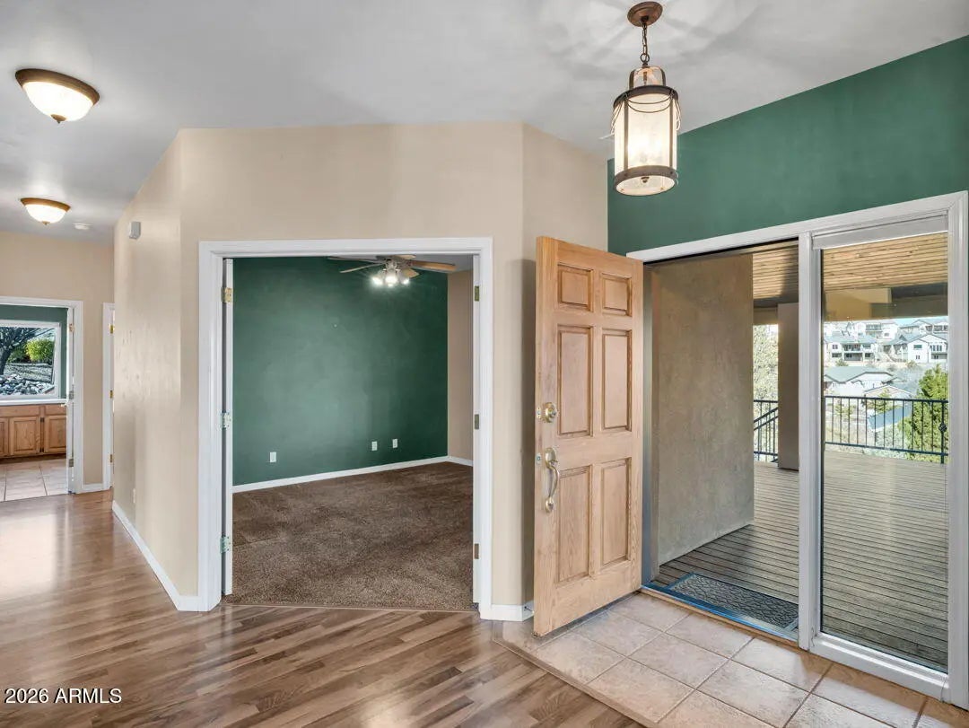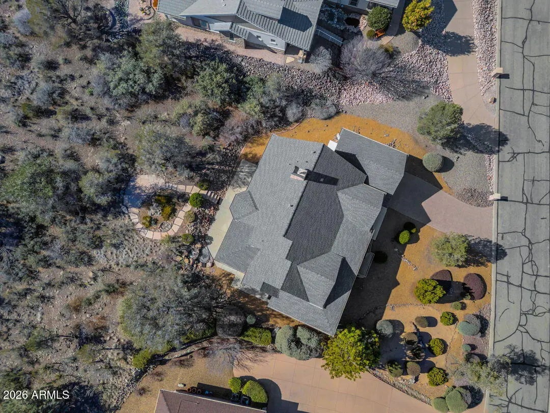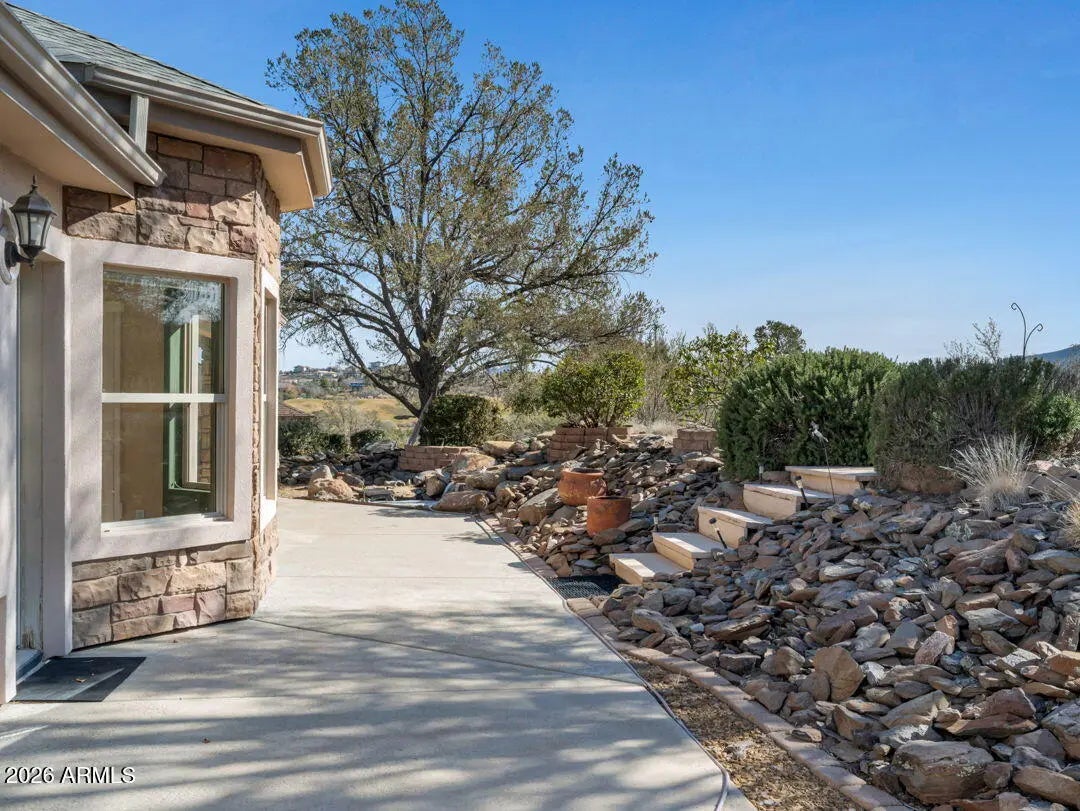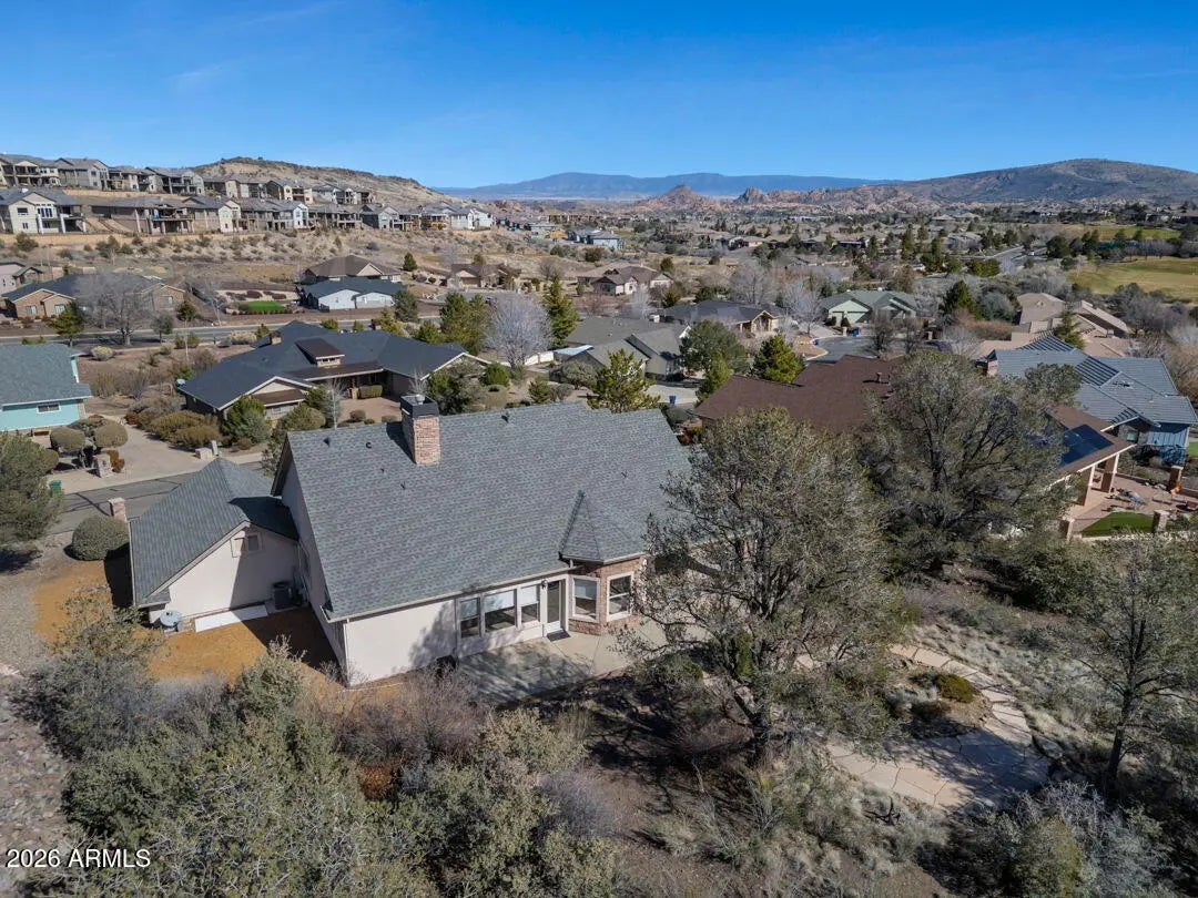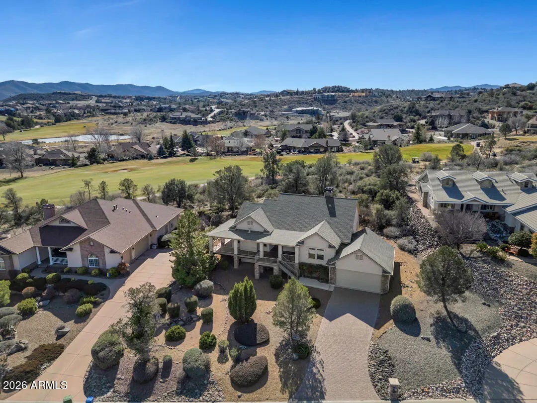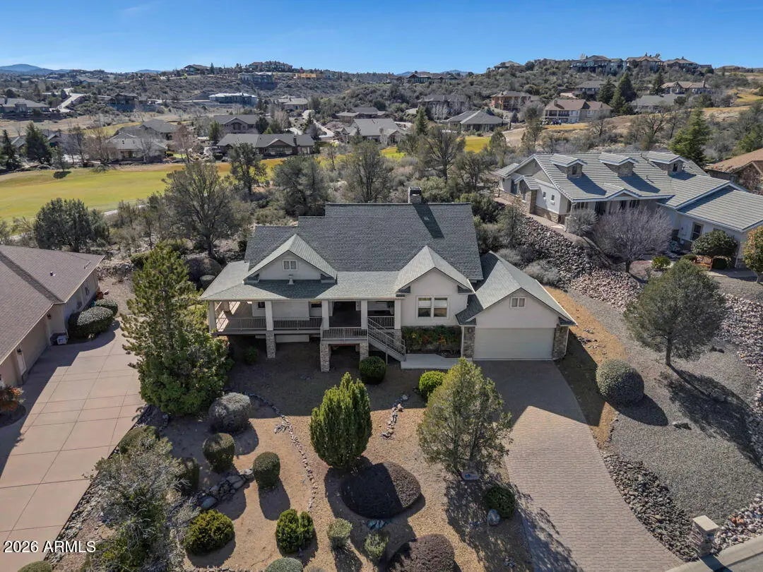 Enjoy breathtaking views of the Granite Dells & San Franscisco Peaks from the wraparound deck of this beautiful home, ideally located in the highly sought-after Prescott Lakes community. This well-designed residence offers 3 bed/ 2 full bath, Great Room w/fp, a spacious kitchen & a private backyard, perfect for entertaining & everyday relaxation. Backing the 6th fairway, the property provides exceptional privacy & a sense of open space. A backyard water feature creates a peaceful setting on the patio, ideal for relaxing or hosting guests. The front deck & patios feature charming tongue-and-groove ceilings. New roof installed in 2024 and ample storage located beneath the front deck. This home offers the perfect blend of views, privacy & comfort in one of Prescott's premier golf communities