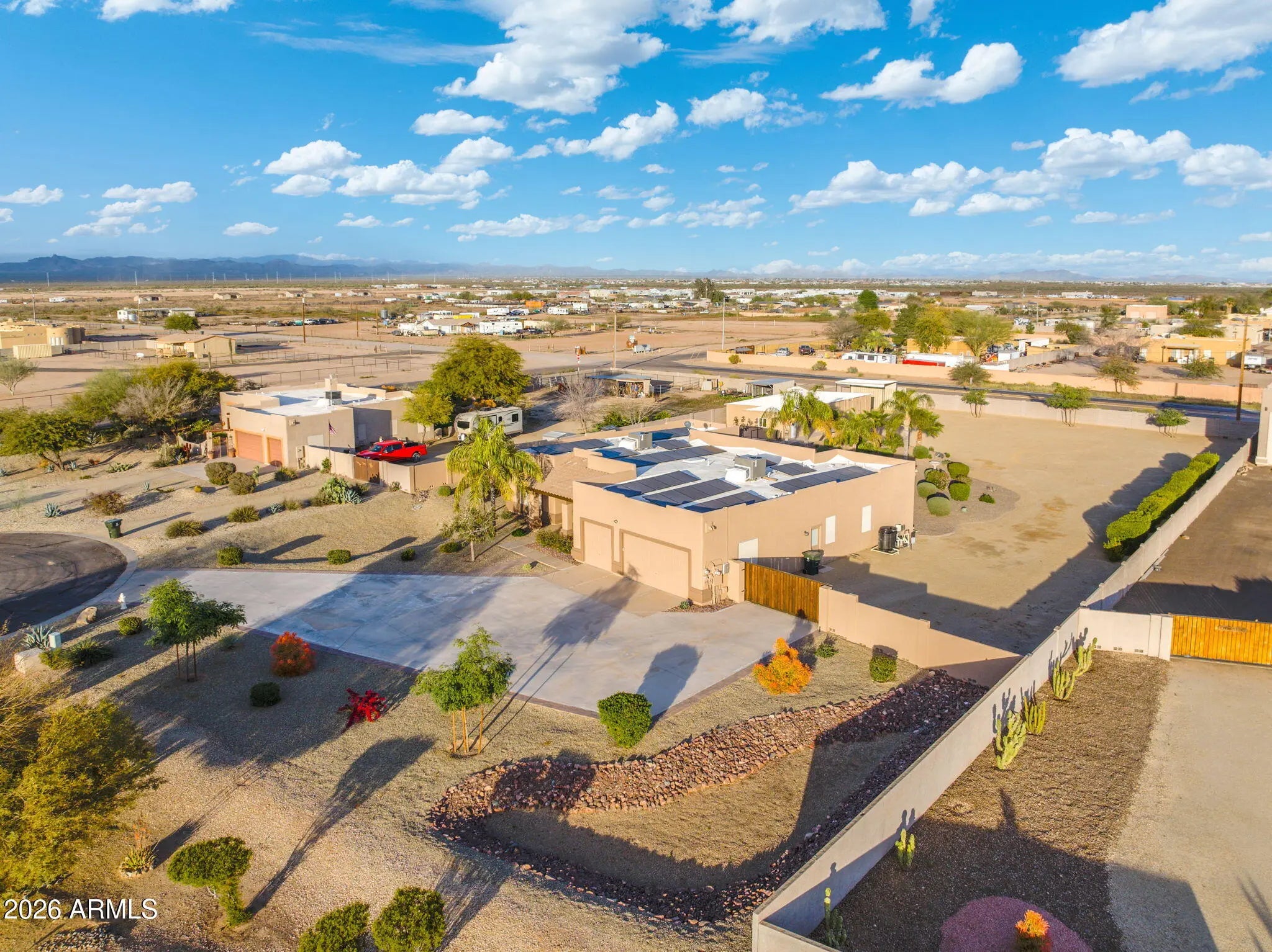 This beautifully upgraded cul-de-sac home sits on over an acre in Patton Place Estates and offers exceptional space, privacy, and versatility. The home has been recently painted on the exterior and features extensively updated interiors, including a fully remodeled primary suite with a large soaking tub and a walk-in shower featuring a rain head and handheld spray. The single-level layout includes four bedrooms plus a den, an open great-room design, and new tile flooring in the main living areas and office. The kitchen is outfitted with GE Café appliances, including an induction cooktop, counter-depth refrigerator, dishwasher, and microwave, making it both stylish and functional. New exterior doors enhance efficiency and design, with French doors leading to the backyard and internal blinds on most doors. Outdoor living is a standout feature. The property offers a low-maintenance, professionally designed landscape with gravel, artificial turf, pavers, mature trees, fruit trees, and a full drip irrigation system. Enjoy a private pool with updated equipment, heated for year-round use, along with epoxy-coated front and back porches and a concrete driveway. For those needing space and flexibility, the property includes a large workshop, additional garage space, RV parking with a 50-amp hookup, covered RV or trailer awning, and ample storage. Owned solar, upgraded HVAC systems with air purification, and thoughtful infrastructure improvements further enhance comfort and efficiency. With mountain views, a paved county-maintained road, and no HOA, this property delivers freedom, functionality, and lifestyle-ready living. Comprehensive Property Improvements & Upgrades " New Roof Installed (March 2020) " All Exterior Doors Replaced - French Doors at Rear; Internal Blinds on All Except Front Door " New Tile Flooring in Living Room, Dining Room, and Office (2022) " Completely Remodeled Primary Suite (December 2023) - Large Soaking Tub and Walk-In Shower with Rain Head and Handheld Spray " All New GE Café Appliances (February 2025) - Counter-Depth Refrigerator, Dishwasher, Microwave, Induction Cooktop Range " New Water Heater with Recirculation Pump (November 2022) " Both HVAC Units Replaced with Captura UVC Germicidal Air Purification & Odor Control Systems (October 2024) " Owned Solar System - 48 Panels (In Service October 2024) " Concrete Driveway Installed (March 2022) " Epoxy-Coated Front and Rear Porches " New Gate Opener to Backyard (2023) " Complete Landscape Renovation (2022) - Gravel, Crusher Fine, Artificial Turf & Brick Pavers " 86 Plants and 13 Trees Added (Including Mexican Lime, Naval Orange & Mandarin Orange) with Drip Irrigation System " Pool Equipment Upgrade (December 2021) - New Cleaning System Pump and Filtration " New Pool Heater Installed (November 2024) " Large Detached Workshop and Garage in Backyard " 220-Volt, 50-Amp RV Plug Installed at Workshop " Covered RV/Trailer Awning " 20-Foot Conex Storage Container