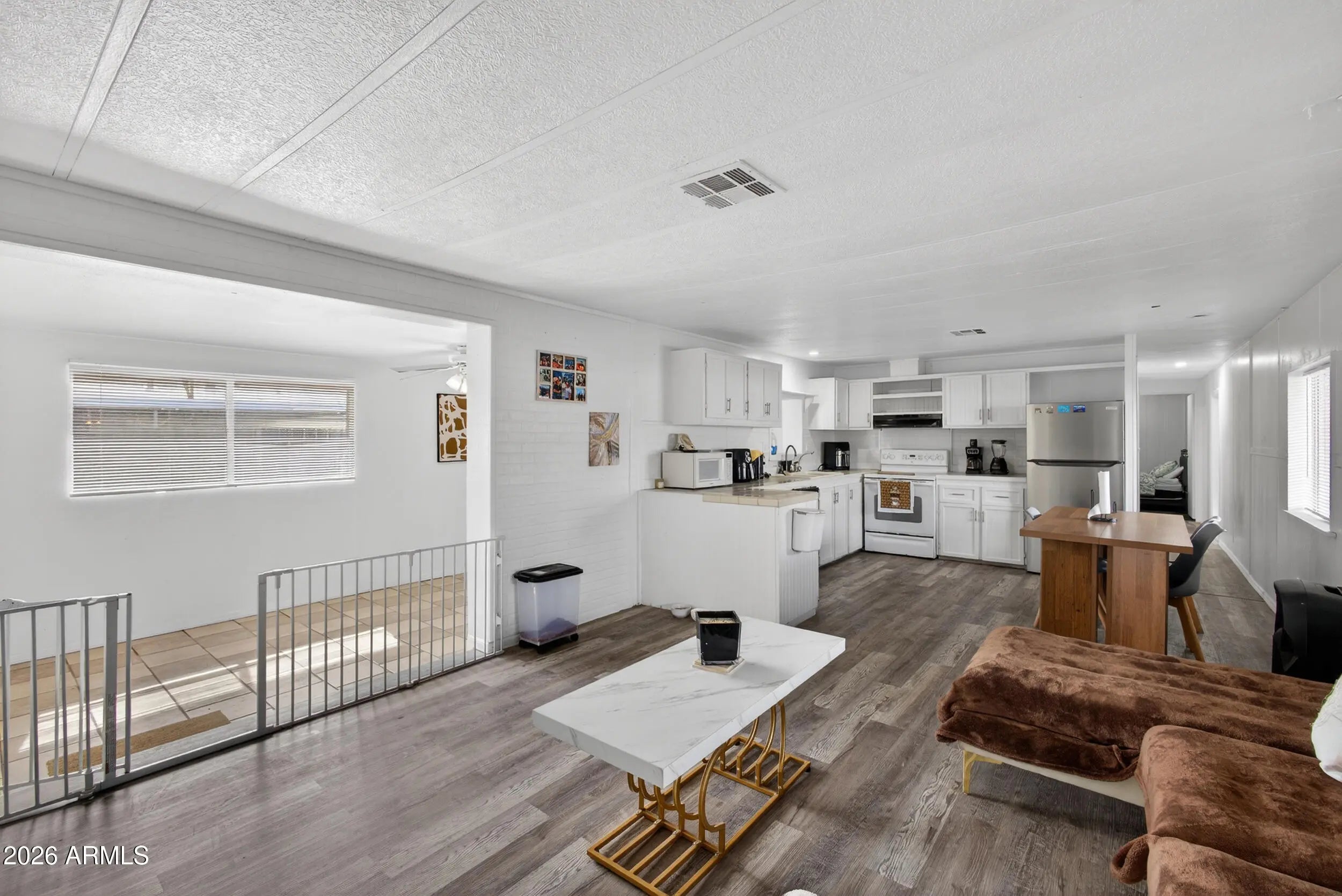 Welcome to this beautifully upgraded 3+bedroom, 2-bath manufactured home in Mesa—no HOA! The home boasts two spacious primary suites, each with its own bathroom, both completely remodeled. The kitchen has been partially refreshed, and you'll find newer flooring throughout the main house. Fresh paint brightens the space, and there's ample room for comfortable living. Additionally, enjoy extra storage or a workshop area, private side parking, and two new front gates—ideal for multiple vehicles or a small business. Located near freeways, Costco, and shopping, this is a rare opportunity—schedule your showing today!