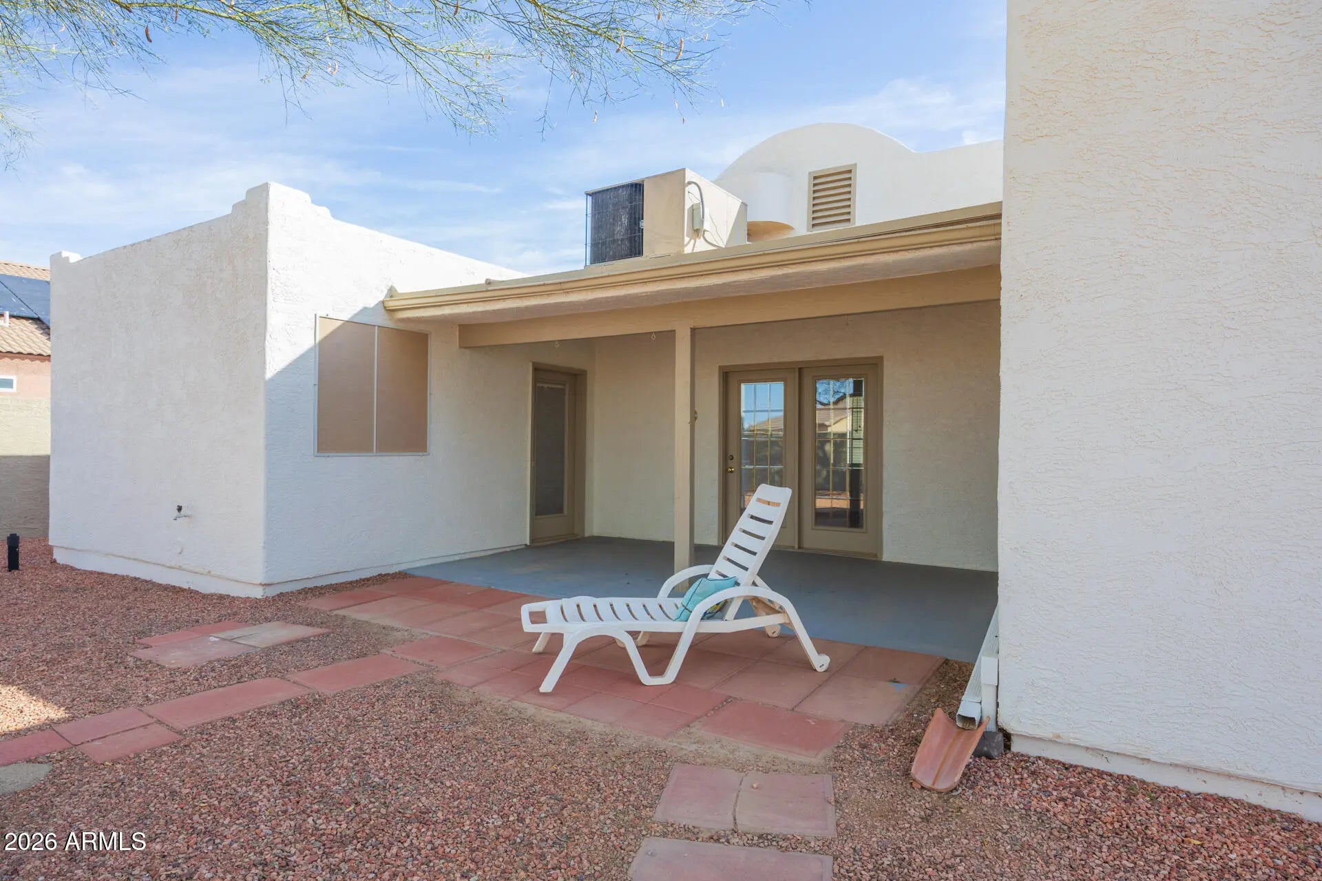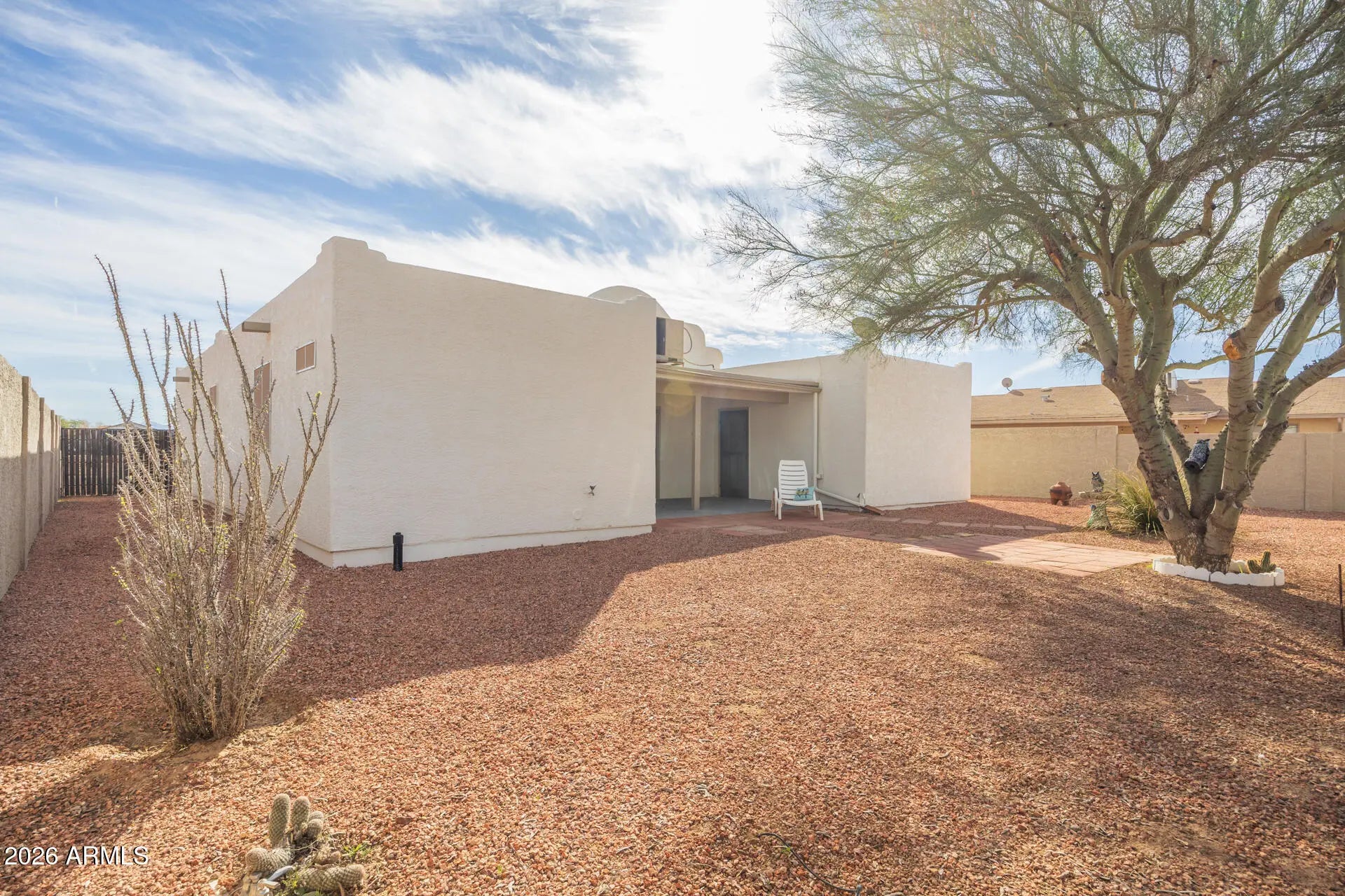 ''Southwestern charm meets easy living in this light-filled adobe beauty!'' Charming adobe-style 2-bedroom, 2-bathroom home with a 2-car garage and inviting Southwestern character! This light and bright home features an open feel with abundant natural light throughout, beautiful arched doorways that add architectural charm, and no carpet, offering easy maintenance and a clean, modern touch. Enjoy relaxing or entertaining in the welcoming front courtyard or unwind under the covered back patio overlooking the fully fenced backyard with attractive desert landscaping and rock accents for low-maintenance living. The spacious primary suite features two closets and a relaxing jacuzzi tub, perfect for unwinding at the end of the day. The updated guest bathroom includes a stylish walk-in shower. The kitchen equipped with breakfast bar, electric range, dishwasher and plenty of cabinets. An inside laundry room adds everyday convenience. Added bonus No HOA!