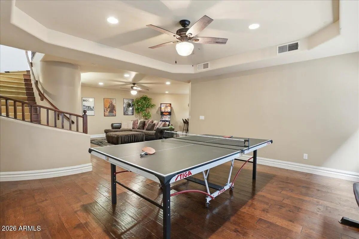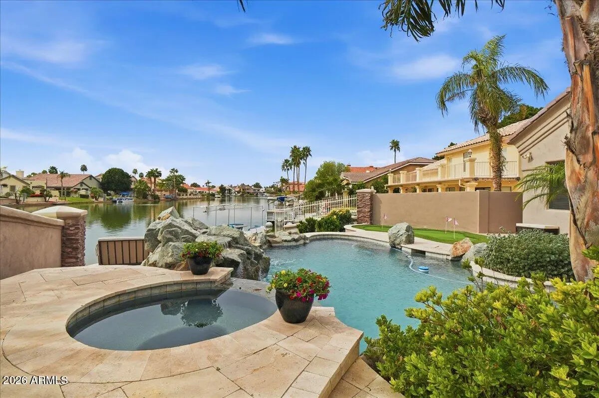 Stunning Updated Single Level with a Basement in the best waterfront community in all of Phoenix! Over $193k in recent updates, roof, ac's & more! Resort backyard w/pool & spa overlooking the lake, large covered patio for enjoying lake views and you can boat to the clubhouse w/Jr. Olympic Pool, Pickleball/tennis, workout & locker rooms! Spacious Great Room with 12' ceilings, updated taupe Cabinets in huge Kitchen w/island, Main Floor Primary Suite w/12' ceilings & new updated Primary Bath plus huge closet w/custom built-ins. 2 more bedrooms + bath on main level plus 1/2 bath. Basement w/2 bedrooms, bath, wet bar & huge family room/game room. 2 offices off main entry (1 could be formal dining), large laundry room plus oversized 3 car garage w/cabinets. Upscale shopping & restaurants nearby