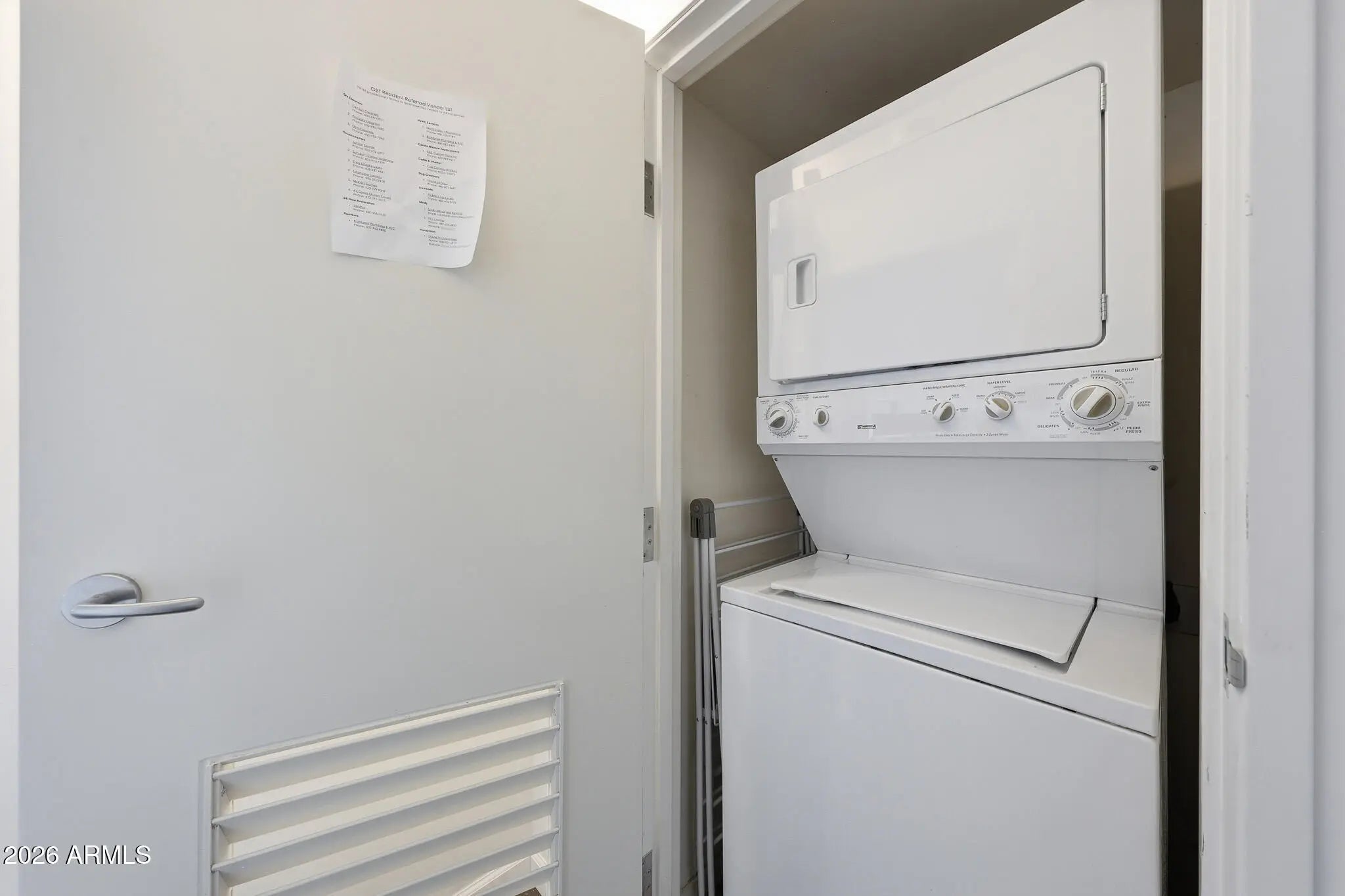 Stacked Washer/Dryer, Refrigerator, Built-in Microwave, Dishwasher, Disposal, Electric Oven, Gas Cooktop