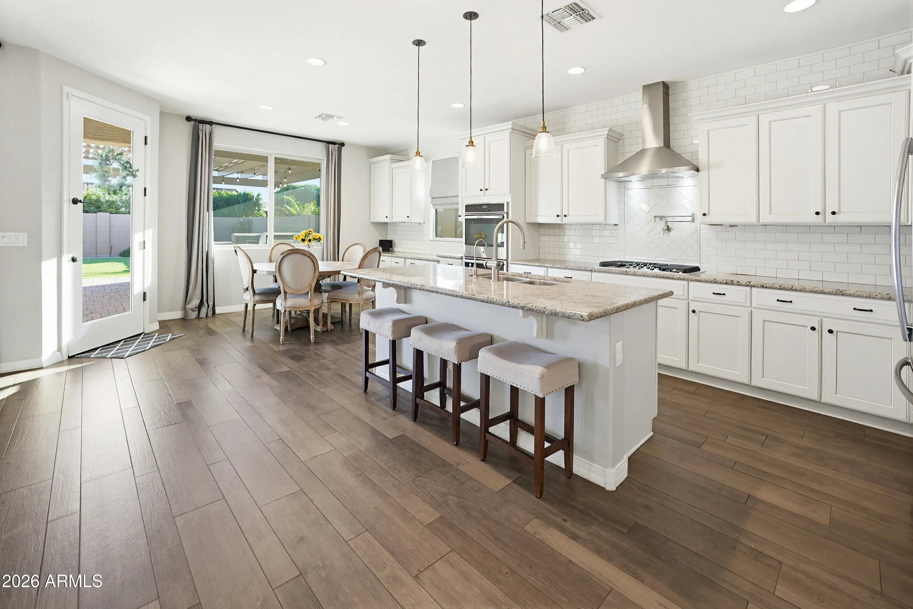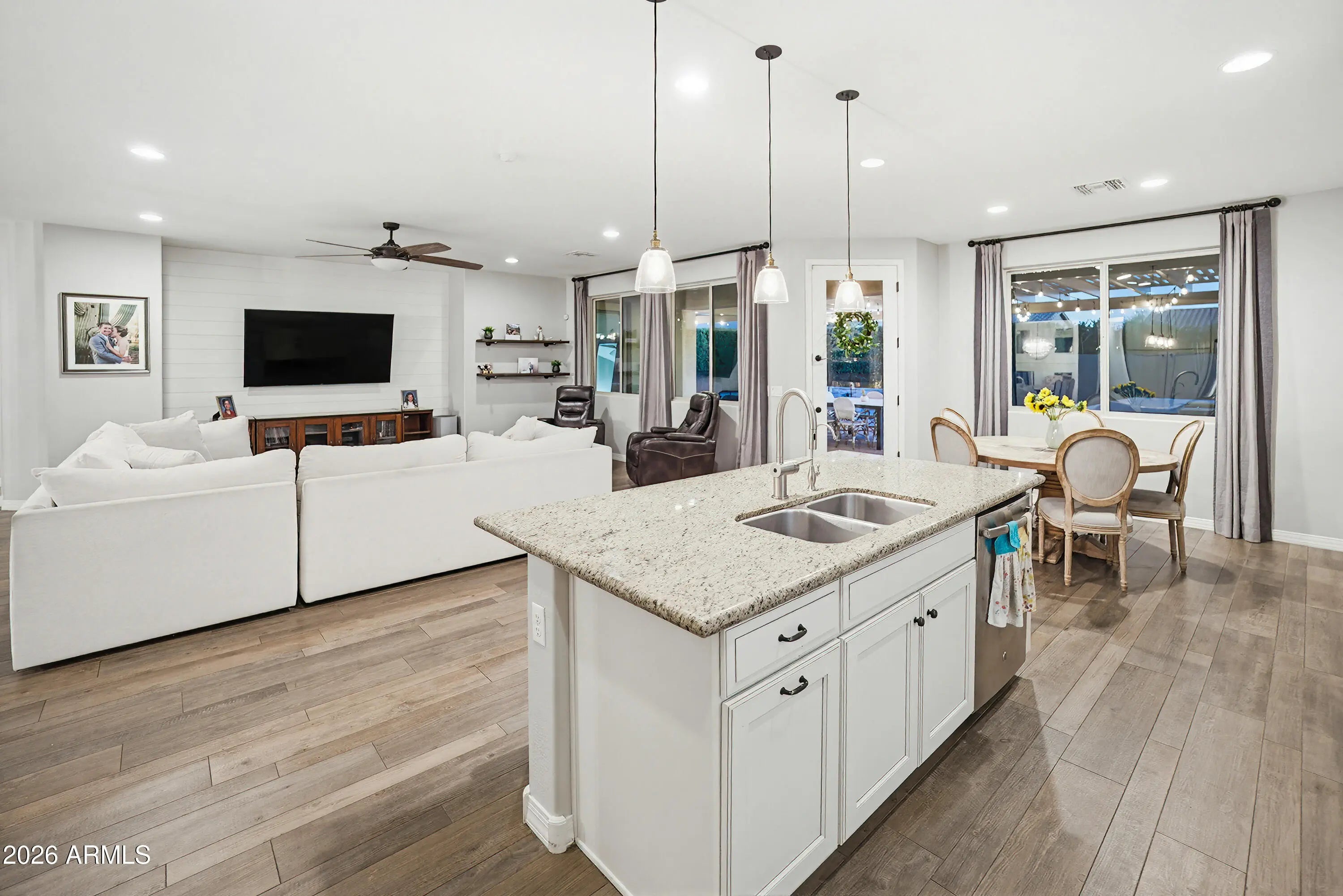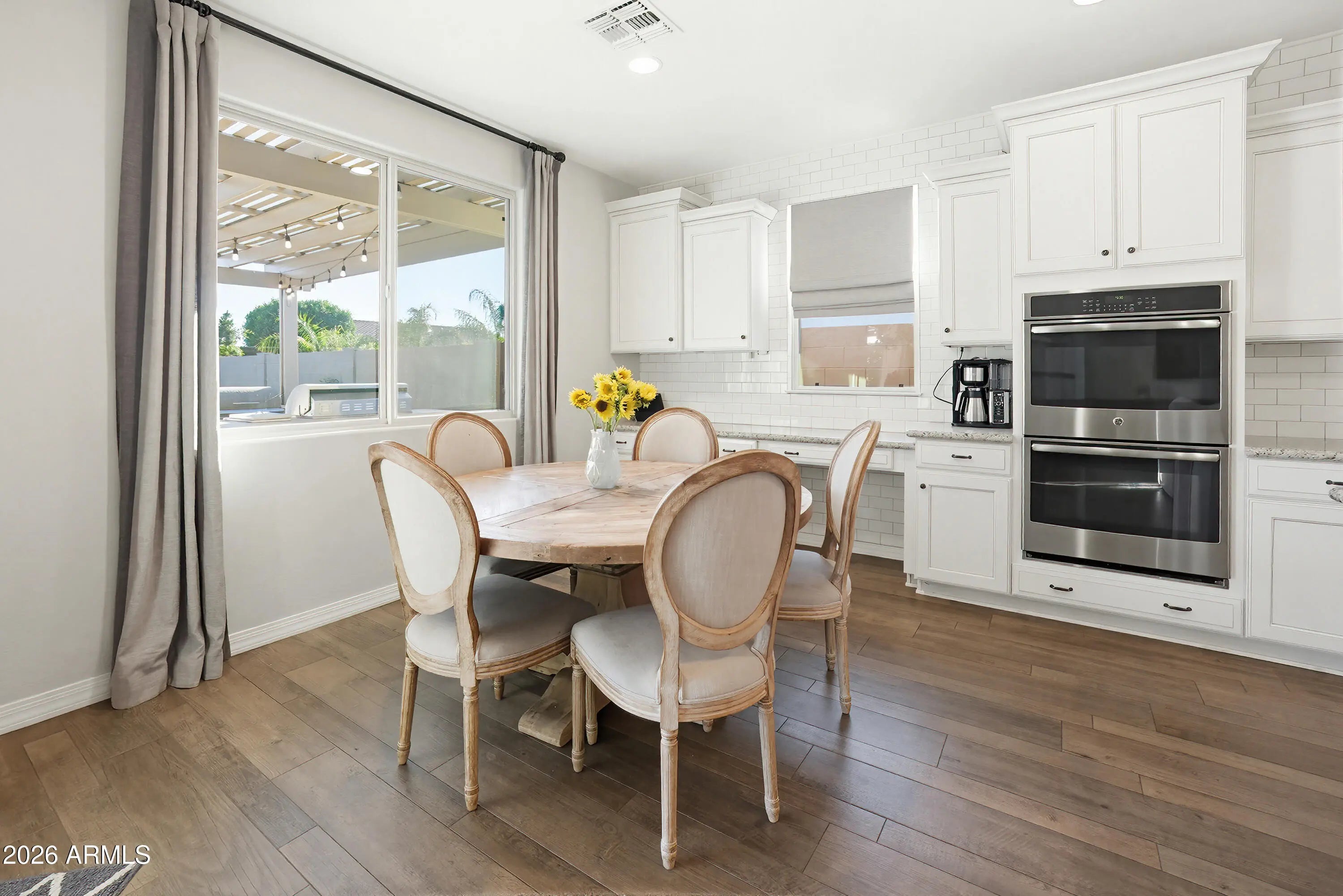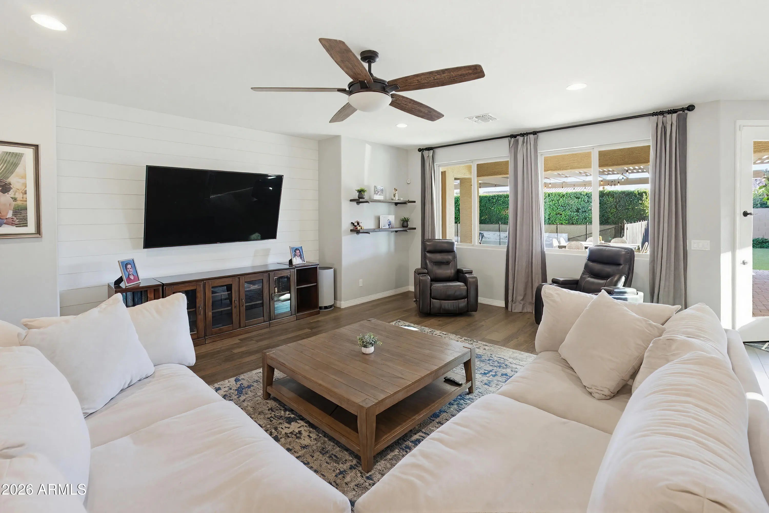Located on one of the largest lots in desirable Sunset Ranch, this upgraded NW Peoria home enjoys a private cul-de-sac setting with greenbelt access nearby. Designed for both comfort and elevated Arizona living, this 2,709 SF residence offers 3 bedrooms and 2.5 bathrooms, along with a formal den/office and an additional flex space ideal for a second office, craft room, or hobby area. The thoughtfully designed layout also includes extra living room, giving family members a space of their own while maintaining separation from the main living areas. The open-concept floor plan features a formal dining area and expansive great room that flows seamlessly into the gourmet eat-in kitchen, complete with a large island, double ovens, granite countertops, and a gas cooktop perfect for entertaining or everyday living. The oversized Owner's Suite serves as a true retreat with direct backyard access and a spacious en-suite bath featuring a separate soaking tub and walk-in shower, dual walk-in closets, and a dedicated vanity area for added comfort and functionality. Step outside to your private backyard retreat designed for true Arizona living. The extended covered patio overlooks a sparkling pool, surrounded by lush mature landscaping and low-maintenance artificial turf. The built-in BBQ and bar beneath the pergola create the perfect setting for hosting gatherings, while the firepit adds warmth and ambiance on cooler evenings. This outdoor space offers privacy, space, and functionality for year-round enjoyment. The two-car garage includes built-in cabinetry for organized storage. A RV gate opens to a large paved side yard capable of accommodating full-size RVs or boats, complete with a dedicated 40-amp RV hookup for added convenience. With HOA-approved RV parking, this is a rare opportunity to store your recreational vehicles at home without compromise. Situated near Liberty High School and just minutes from shopping, dining, freeway access, and entertainment, this home offers the perfect blend of privacy, luxury, functionality, and freedom. Properties offering this combination of cul-de-sac privacy, oversized lot, luxury outdoor living, and true RV flexibility rarely come available.