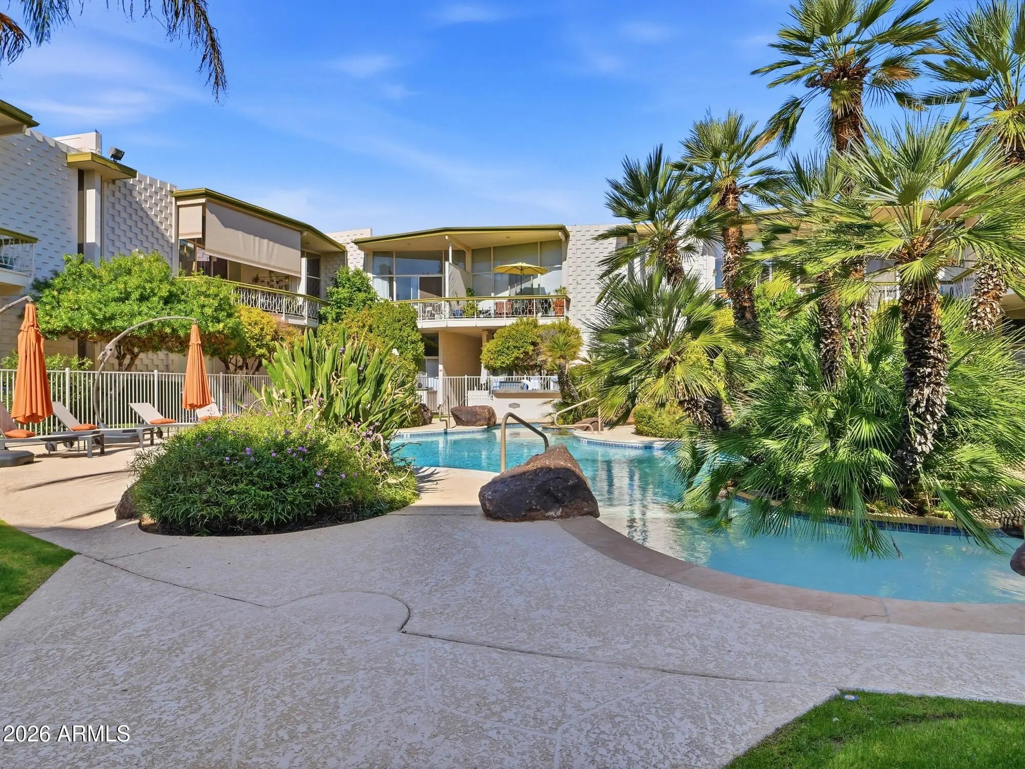 An urban oasis in the heart of Midtown Phoenix, this Melrose Place-inspired condominium offers resort-style living just steps from Central & Camelback. Tucked within a lush, palm-lined community, the grounds feature a serene, resort-style pool that feels like a private retreat. Inside, the residence is light-filled and architecturally striking, with soaring ceilings, warm wood flooring, an open-concept layout, and a modern loft-style design highlighted by a floating staircase. Ideally located near the Uptown Farmers Market, local dining, boutique shopping, and the light rail, this home delivers refined city living with a relaxed, resort-caliber lifestyle. An urban oasis in the heart of Midtown Phoenix, this Melrose Place-inspired condominium offers resort
