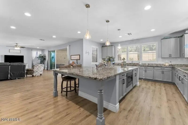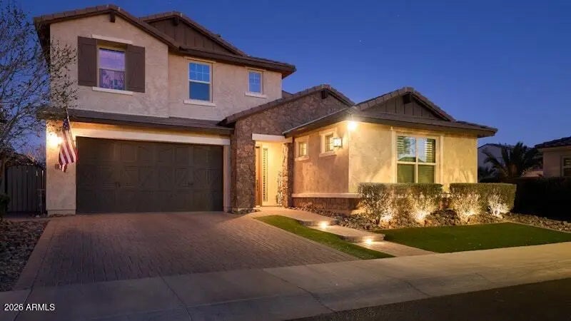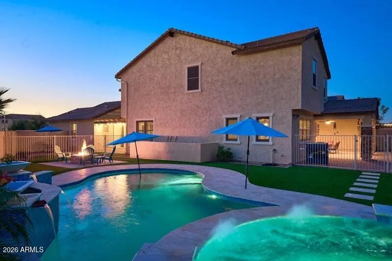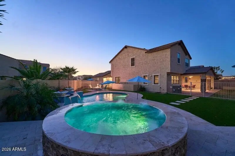 Welcome to refined living in the gated enclave of Eastmark, where space, style, and lifestyle come together effortlessly. Large lot home features 5 Bed/5 bath, plus an attached 1bed/1bath GUEST CASITA—perfect for guests, multi-generational living, or rental income. Massive open kitchen with a grand island, upgraded lighting, smart home features, upgraded wall ovens, and more! Expansive sliding doors create seamless indoor-outdoor living, great for gatherings. The primary suite offers a sitting area, spa-like bath, and spacious walk-in closet. Upstairs, enjoy a relaxing large loft and private den, ideal for media or work-from-home needs. Outside, relax by the state of the art pool and hot tub, with all the lighting and waterfall features. Perfect for entertaining!