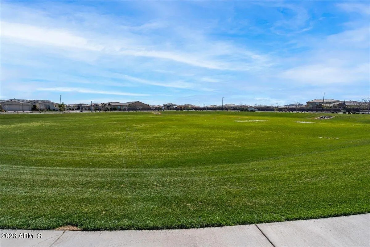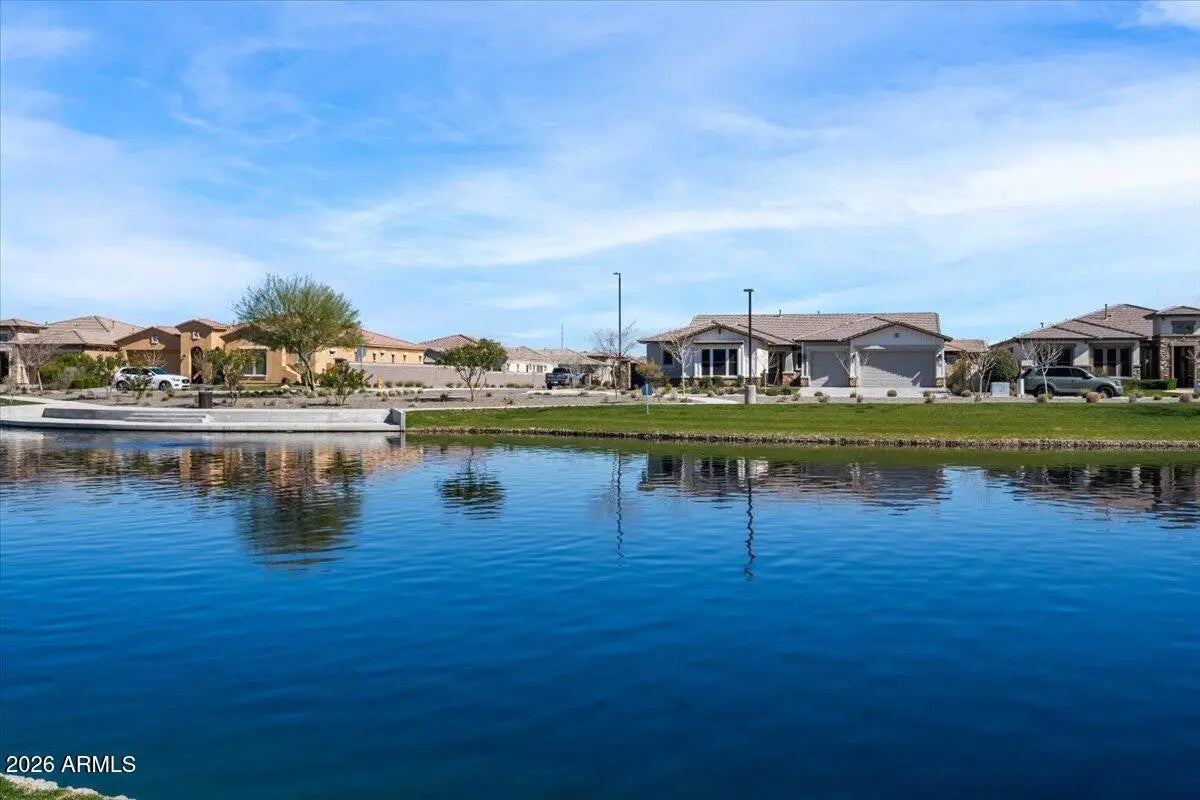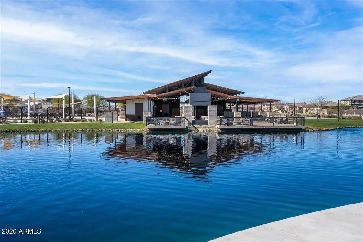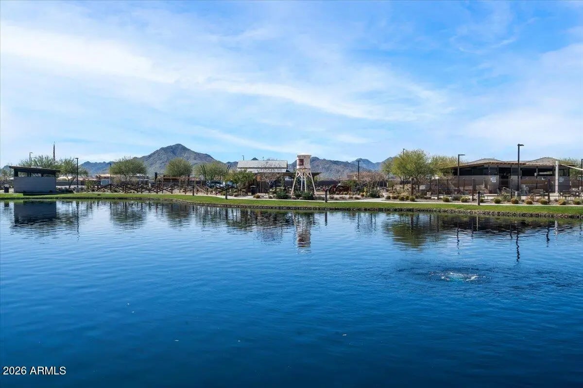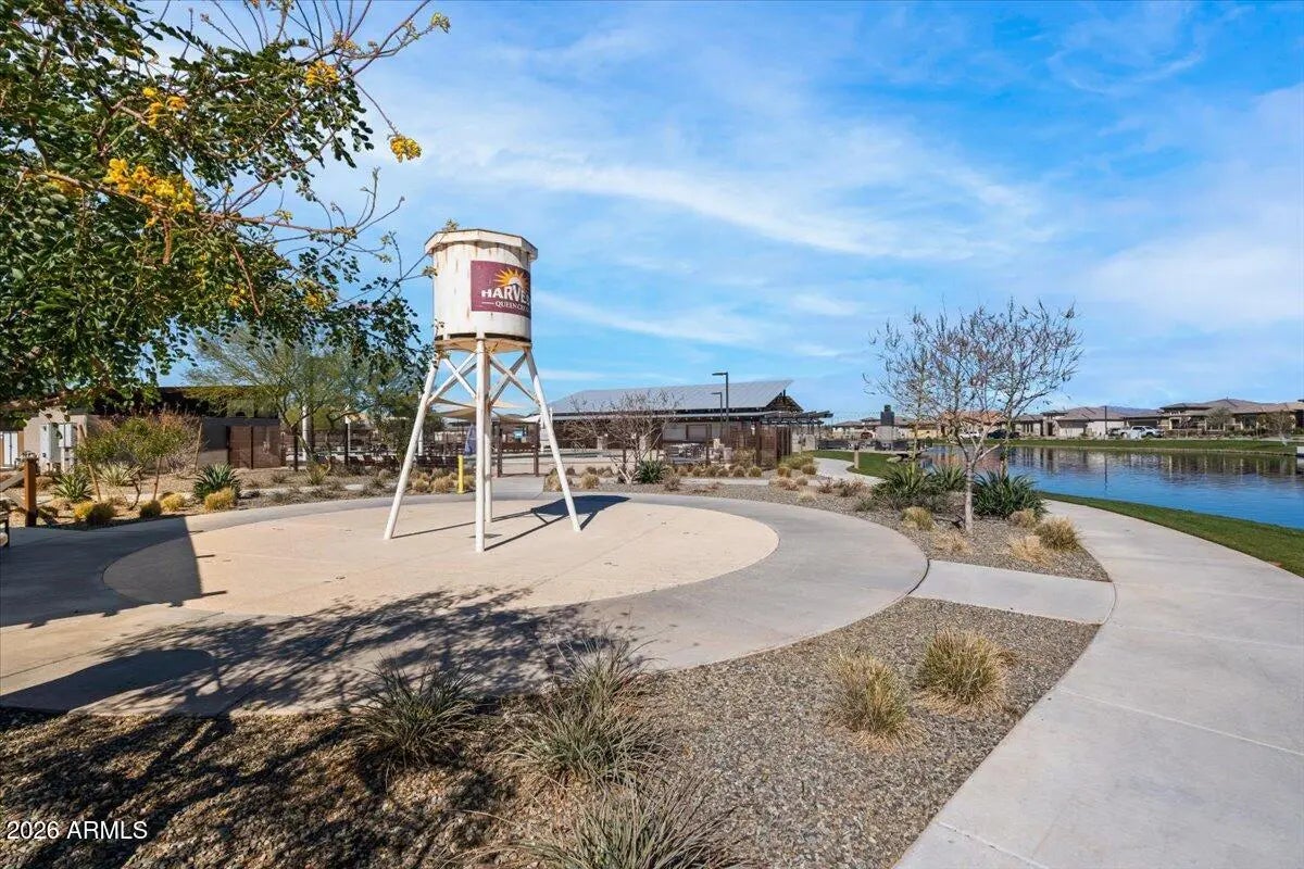 Your new home is a truly remarkable property and offered at below its original 2021 purchase price. Previously the model home for the renowned builder David Weekly Homes, featuring the highly desirable Tranquility floor plan with over $450k in upgrades. Nestled in the popular Harvest community in Queen Creek, this home sits on a premium lot with stunning views of the lake and the San Tan Mountains. Offering four bedrooms, a spacious study, a retreat, and a hobby room, it also includes an insulated three-car garage. As you pass through the courtyard entry and step inside, you'll immediately appreciate the expert design and thoughtful integration of materials. An interior designer's touch is evident in how the various elements come together seamlessly, creating a cohesive flow, from the extensive use of wood flooring to the custom accent walls throughout the home. The living area boasts soaring 11-foot tray ceilings with elegant wood beams and opens up to the outdoor living space through telescoping glass patio doors. Situated on a large 9,752 square-foot lot, there's no shortage of space to enjoy. The low maintenance backyard is an entertainer's dream, featuring over $64,000 in upgrades such as an extended paved covered patio, a pergola-covered outdoor kitchen with a built-in BBQ, turf landscaping, a gas fire pit, and privacy screening. The gourmet kitchen is a true standout, with white quartz countertops and backsplash, and an abundance of two-tone floor-to-ceiling cabinetry that extends into a spacious pantry. It's equipped with Bosch 800 series stainless steel appliances, including a 36" gas cooktop with a chimney hood, a whisper-quiet dishwasher, a French door refrigerator, and a built-in wall oven and microwave. The large kitchen island, illuminated by pendant lighting, comfortably seats four. The owner's retreat is an oasis that provides a calm haven upon entry with the alluring wood feature wall. Your relaxation continues in the two generously sized walk-in closets, exquisite tile flooring, a luxurious spa-like bathroom with a large walk-in shower, freestanding soaking tub, and double vanityeach detail beautifully enhanced by high-quality materials. As a resident of Harvest in Queen Creek and just across the street from the home, you'll enjoy the perfect blend of rural charm and suburban convenience. The community offers exceptional amenities, including a picturesque lake for catch-and-release fishing, two heated pools, playgrounds, a splash pad, lush green park areas located throughout the community as well as numerous walking/biking paths. Just outside the neighborhood, you'll find local agri-tourism gems like Schnepf Farms and Queen Creek Olive Mill. Schnepf Farms, a family-owned fourth-generation farm, is Arizona's largest organic peach grower, offering a U-Pick garden, bakery, petting zoo, train rides, and seasonal events. Queen Creek Olive Mill, the only producer of extra virgin olive oil in Arizona, features a delightful marketplace and restaurant.