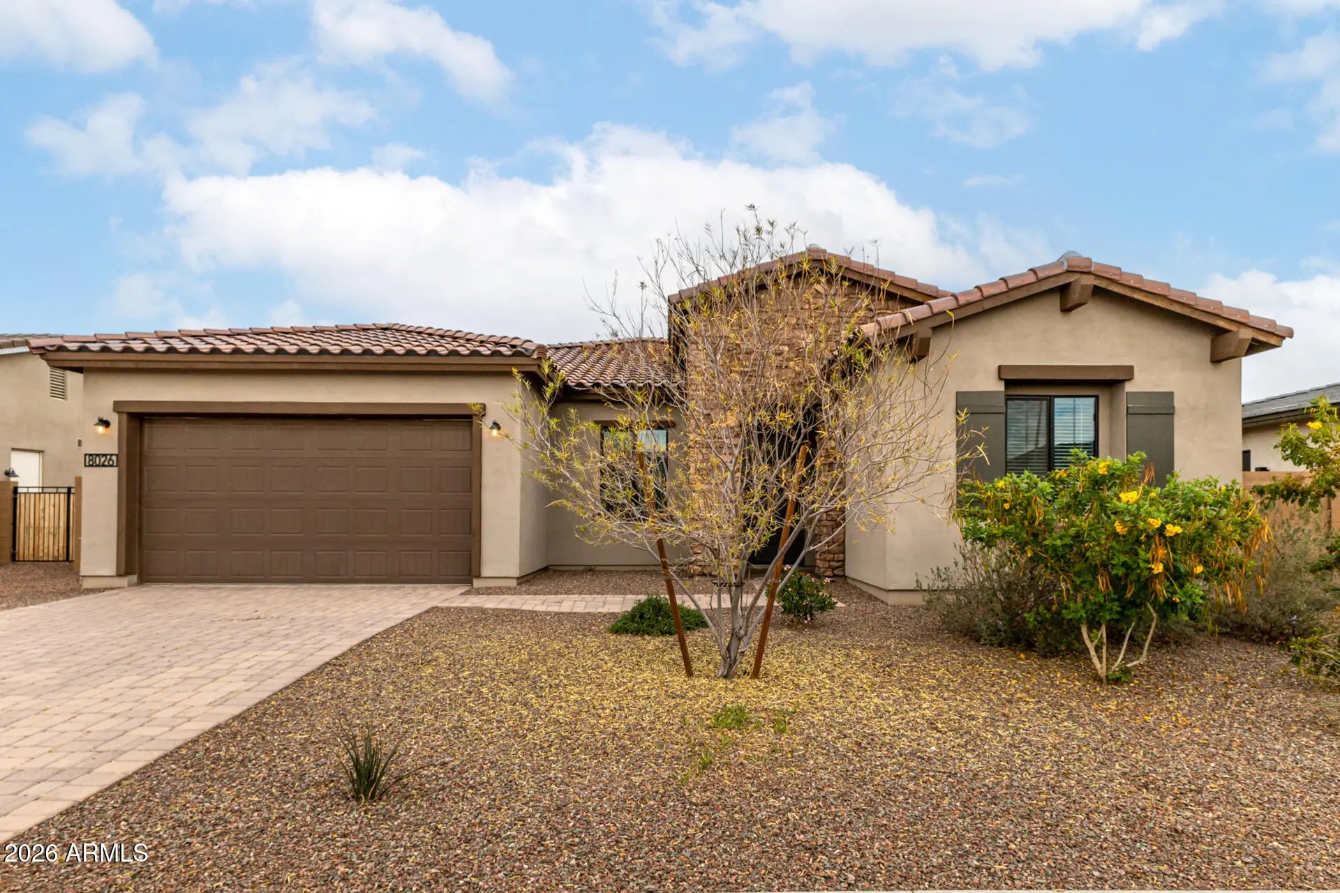 This stunning 4-bedroom residence welcomes you with a well-manicured landscape, a 3-car garage with a paver driveway & RV gates! The interior boasts a great room perfect for entertaining and relaxation, with tile floors, abundant natural light & neutral paint. The open-concept kitchen features espresso cabinets, tile backsplash, beautiful quartz countertops, SS appliances, a pantry, and an island with a breakfast bar, perfect for casual meals. The tranquil main bedroom hosts a bathroom with double sinks and a separate shower & tub, and a walk-in closet. The spacious den adds to the home's functionality, working perfectly as an office or quiet retreat. Out back, you'll have a cozy covered patio ideal for morning coffee, well-laid pavers & ample sitting space. Hurry up, this gem won't last!