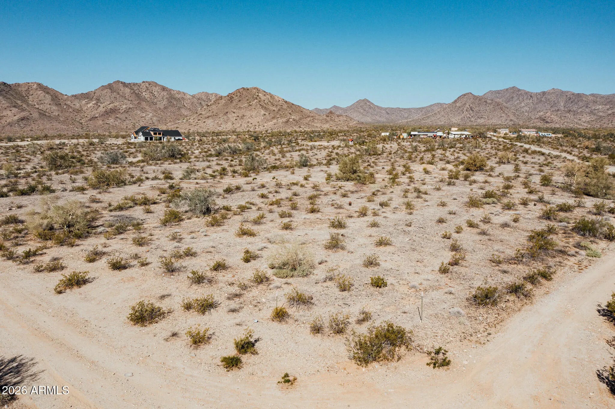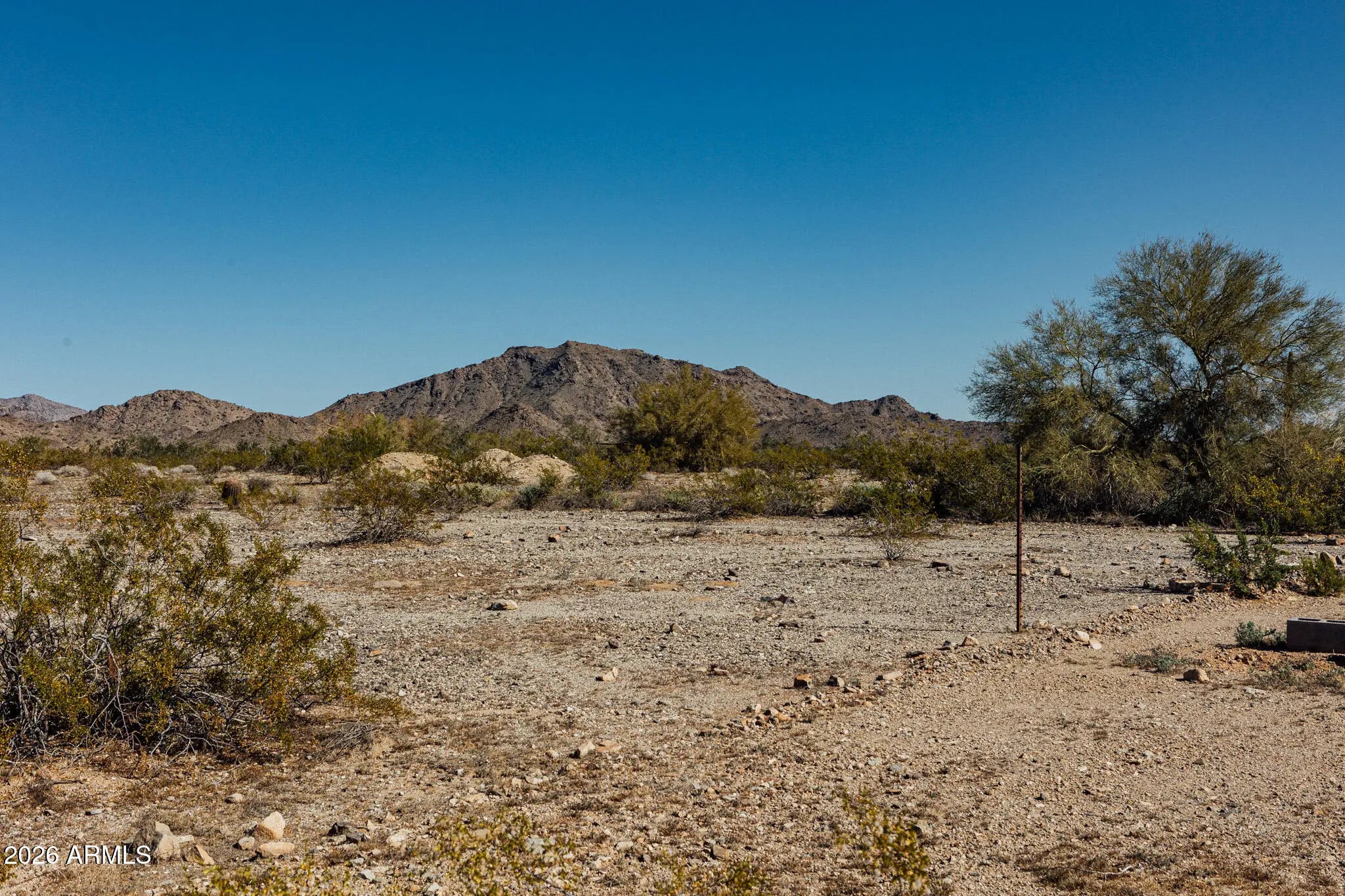 Build your dream home on this beautiful 1-acre corner lot in the Arizona low desert. Enjoy breathtaking panoramic mountain views and wide-open desert skies in every direction. This spacious parcel offers privacy, stunning sunsets, and plenty of room for a custom home, guest house, RV garage, or workshop. Ideal for horse property, there is ample space for corrals, barns, and riding arena. The corner location provides easy access and flexible building options, and the property is conveniently located near the I-10 freeway for an easy commute while still offering peaceful desert living. This is the perfect opportunity to create your own private desert oasis.