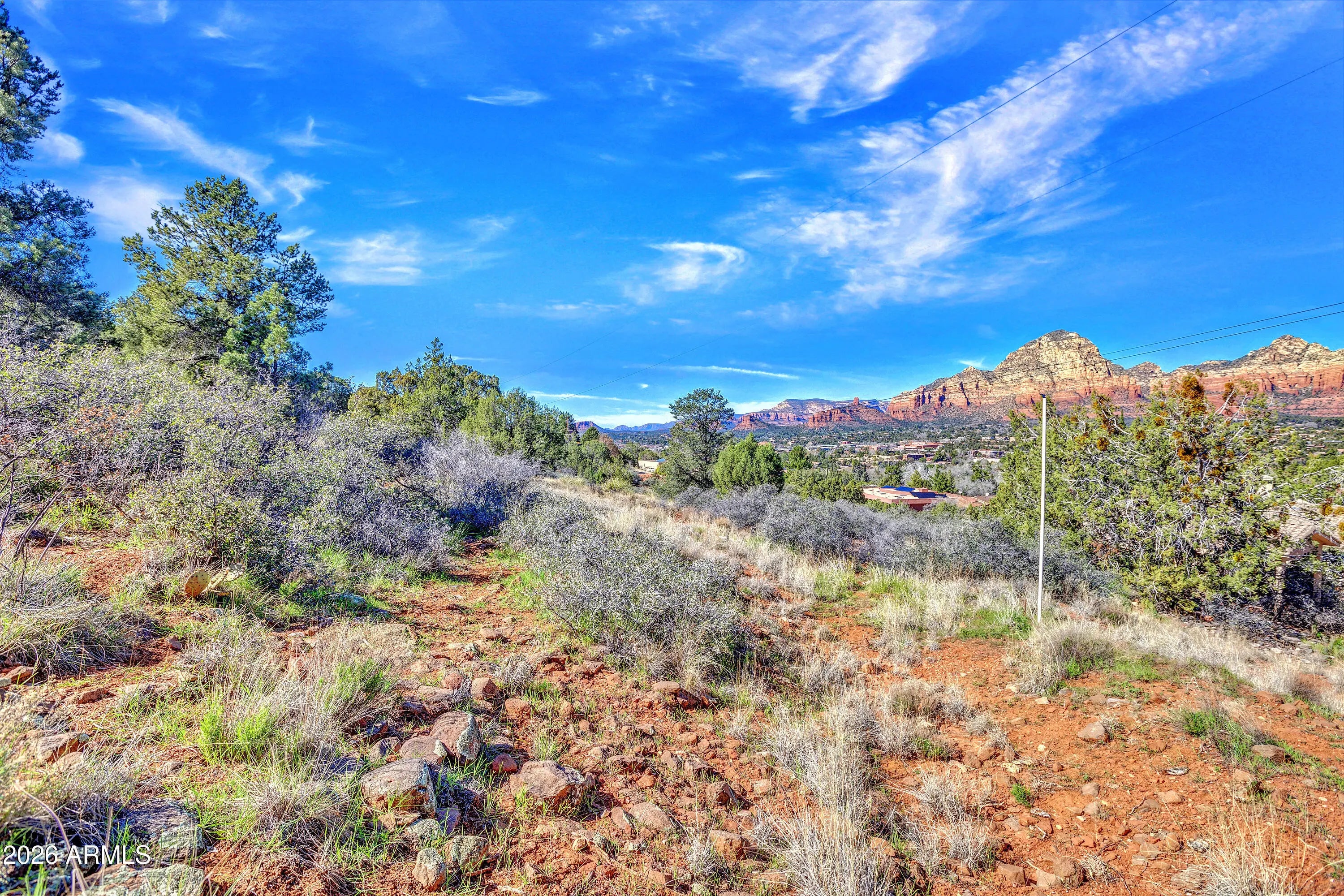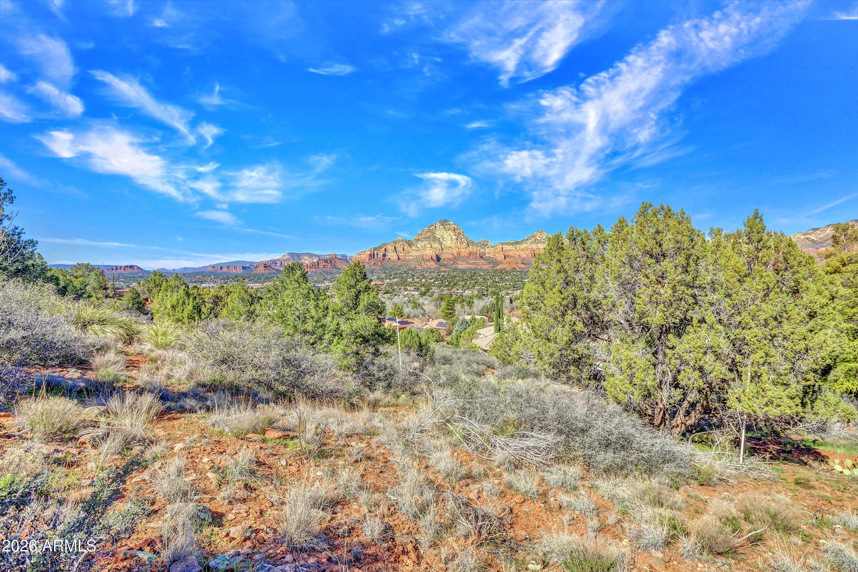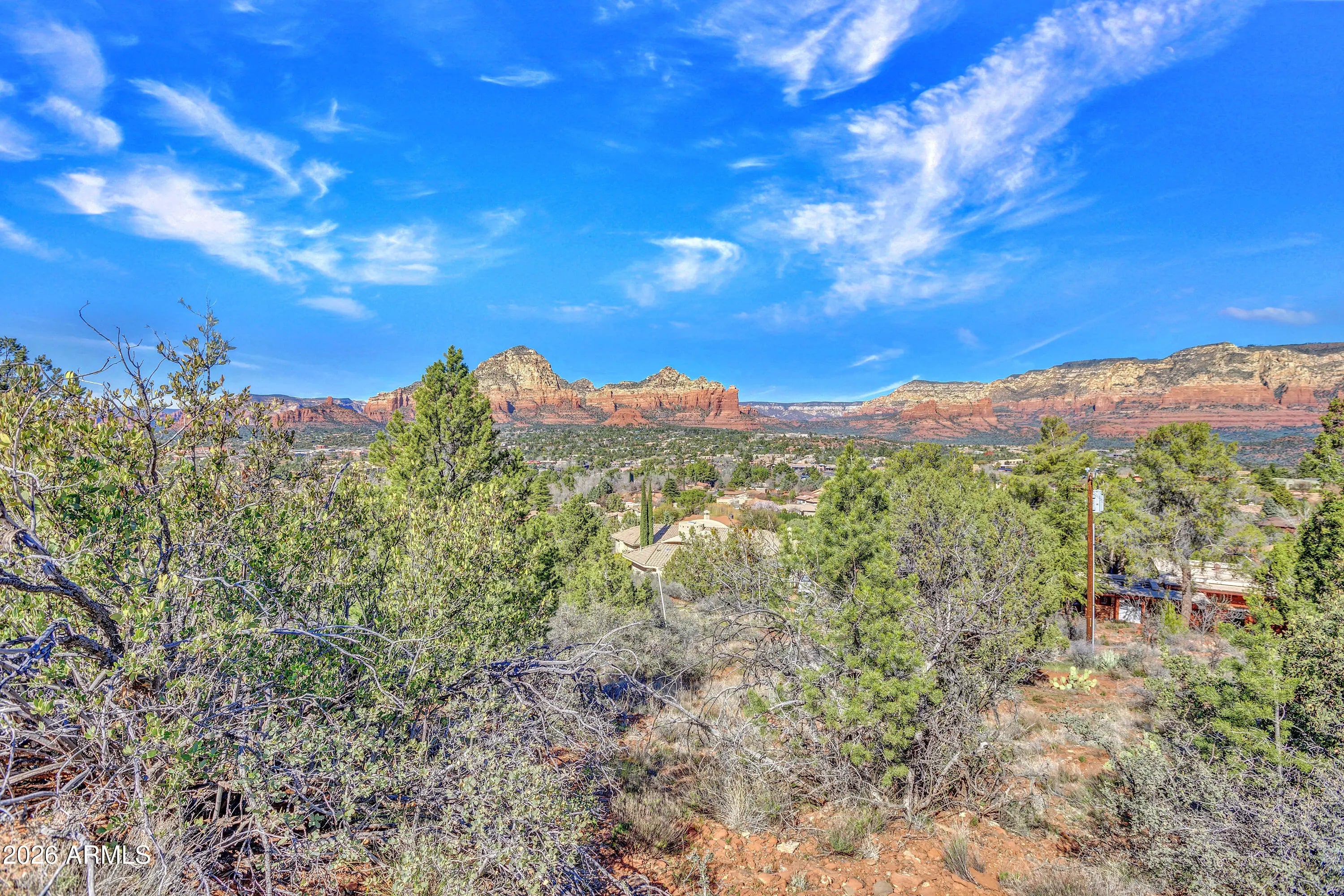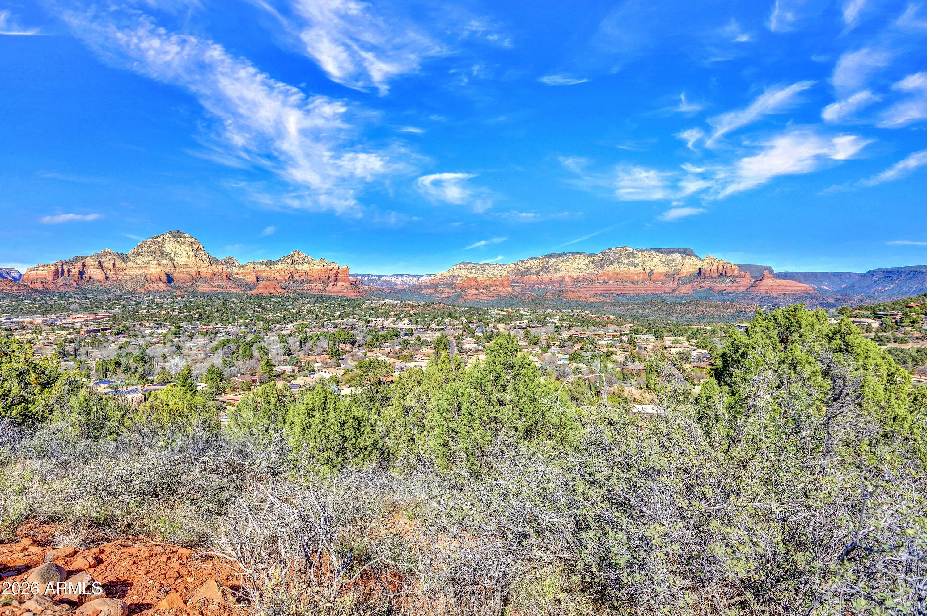 This is one of those lots people assume doesn't exist anymore. A rare 2.44-acre residential homesite in prime West Sedona- In town and bordered by National Forest on two sides. The setting feels protected, almost secret, with sweeping, jaw-dropping red rock views that span Turtleback, Wilson Mountain, Steamboat Rock, Brins Mesa, Mitten Ridge, Oak Creek Canyon, Coffee Pot, Sugarloaf, Thunder Mountain, Chimney Rock, Doe Mountain, Cockscomb, Airport Mesa, and the distant Mogollon Rim.Zoned RS-35 with metes and bounds: no HOA, homes only and the parcel can be split once. Natural gas is available. This is a legacy sloping site where views and location finally align. In West Sedona, that combination is nearly impossible to replicate and getting rarer by the day.