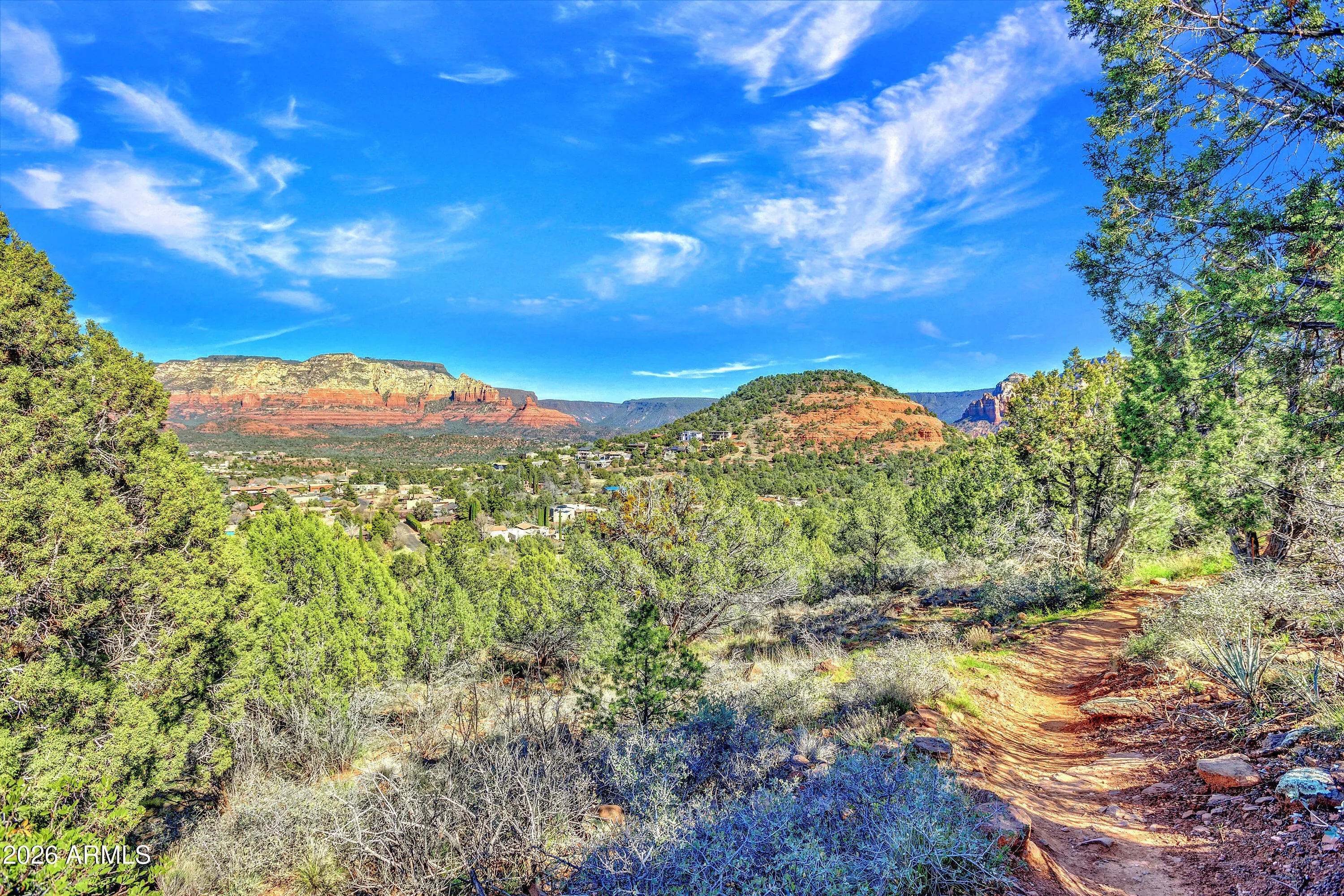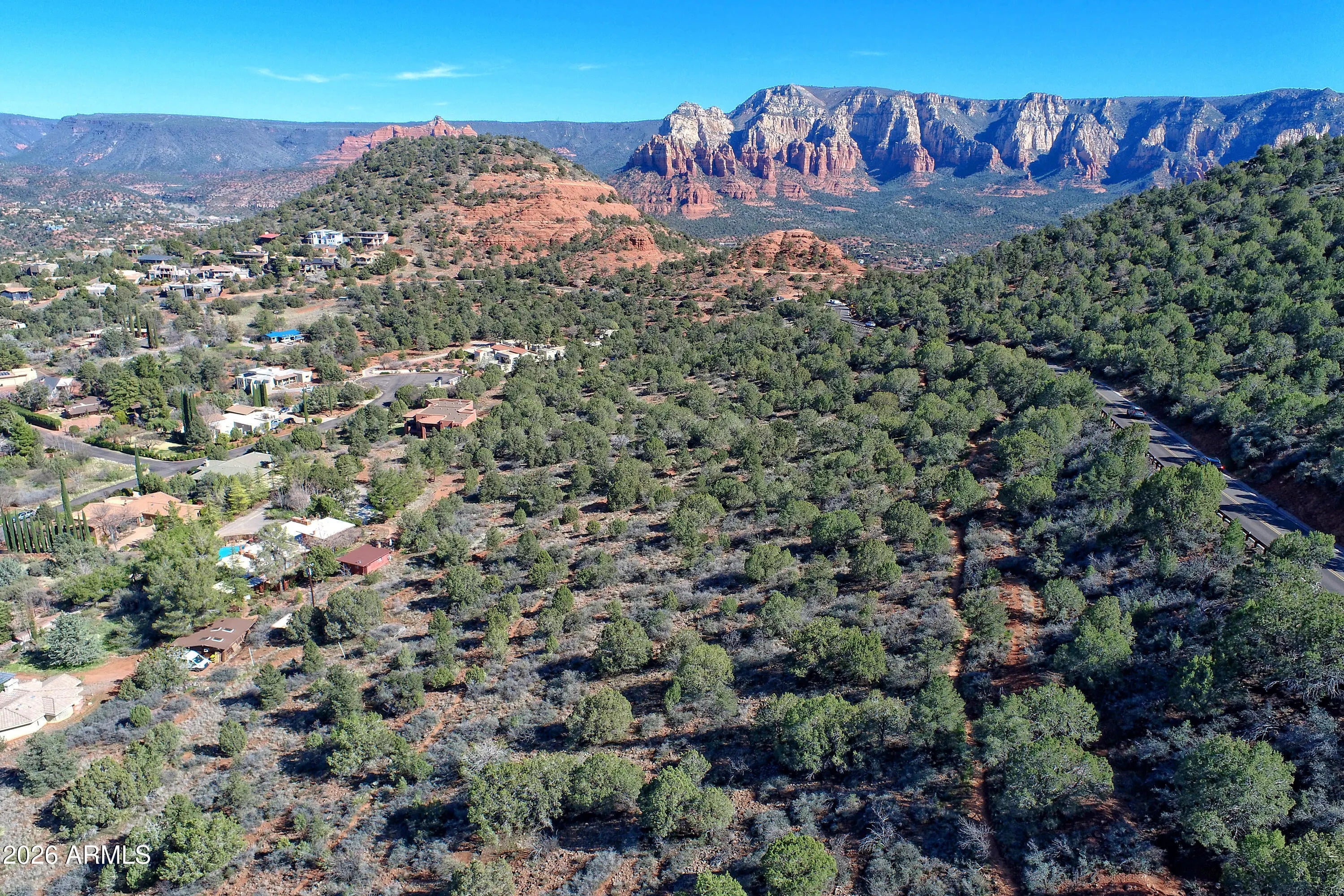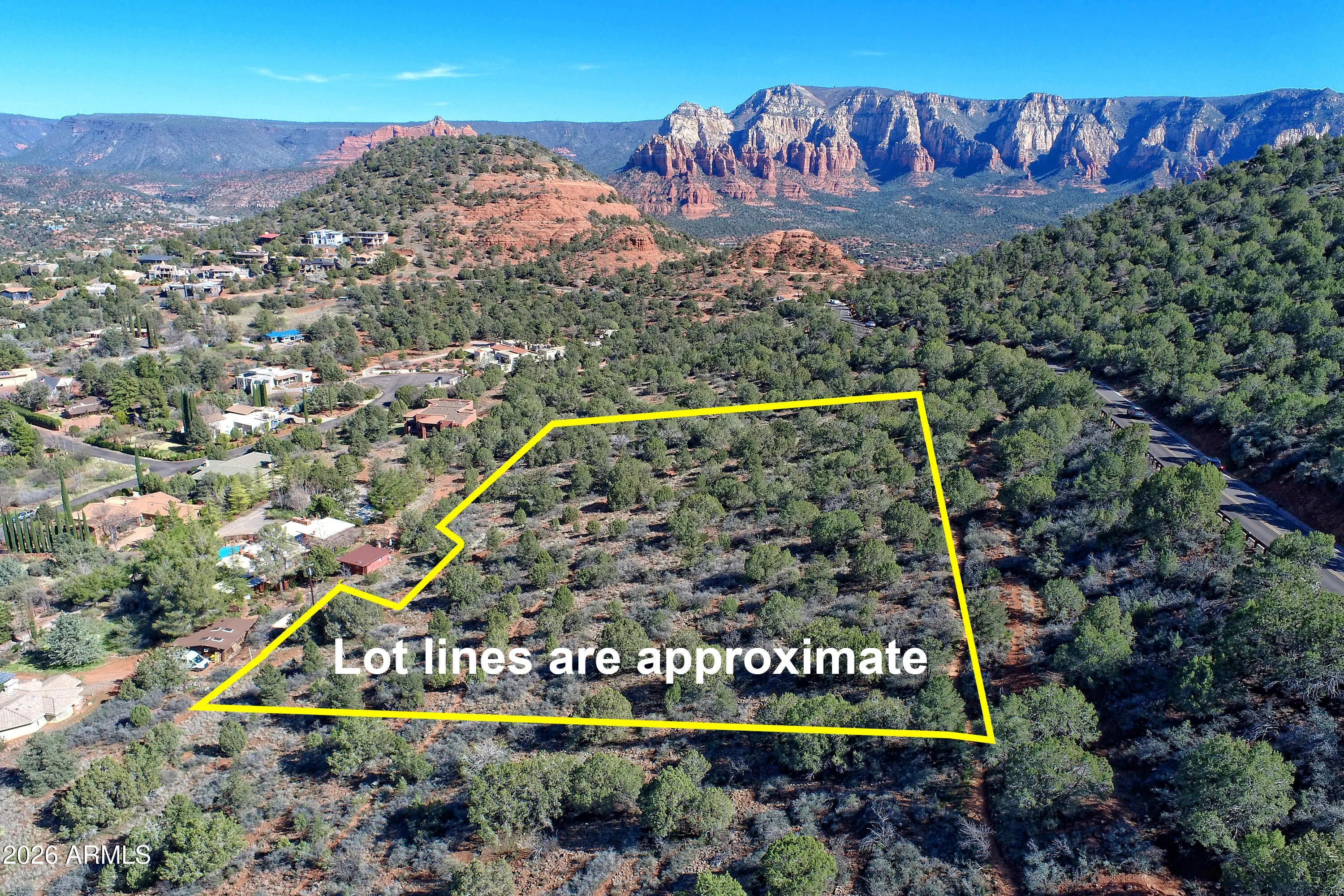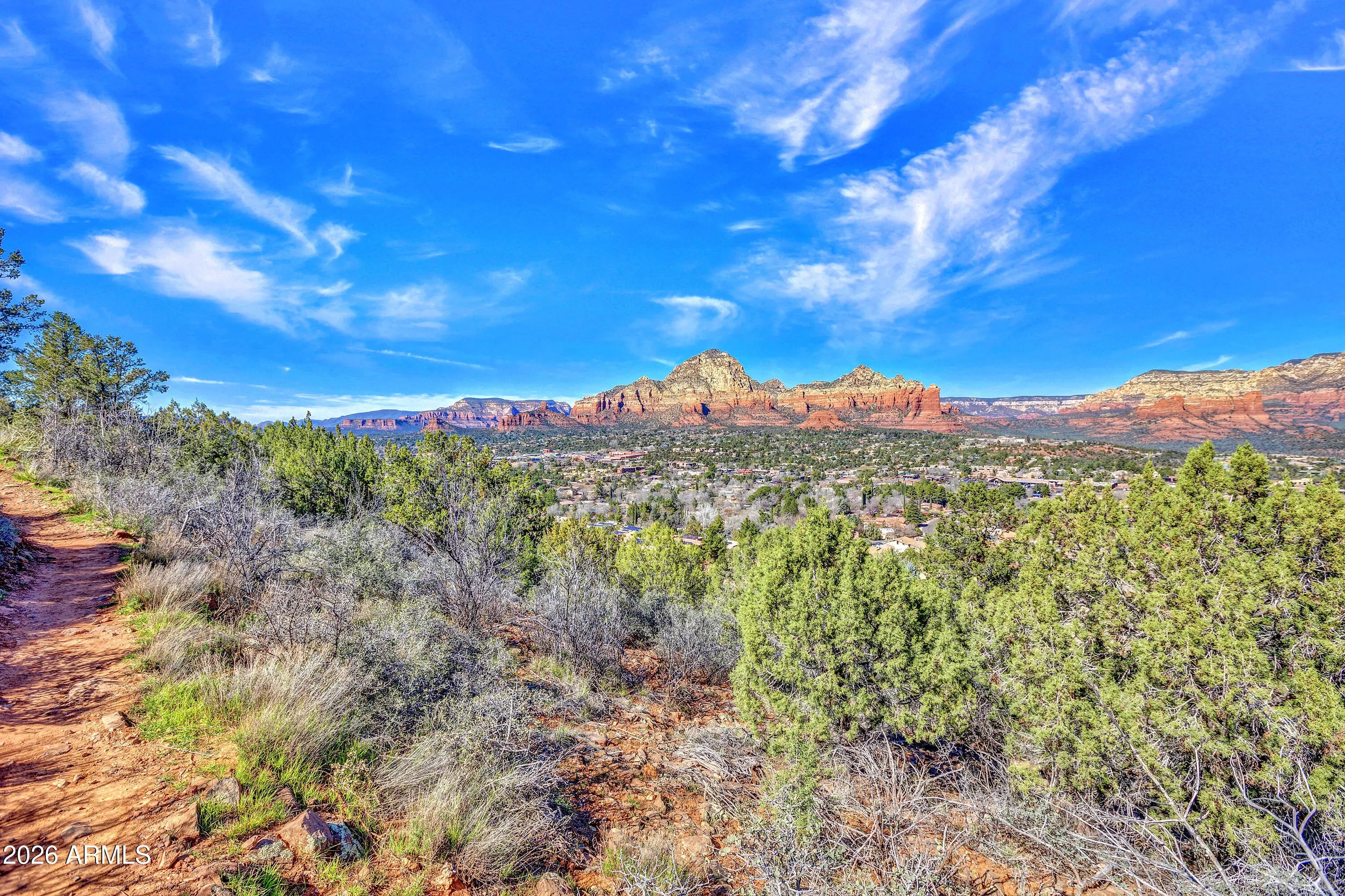 This is one of those lots people assume doesn't exist anymore. A rare 2.44-acre residential homesite in prime West Sedona- In town and bordered by National Forest on two sides. The setting feels protected, almost secret, with sweeping, jaw-dropping red rock views that span Turtleback, Wilson Mountain, Steamboat Rock, Brins Mesa, Mitten Ridge, Oak Creek Canyon, Coffee Pot, Sugarloaf, Thunder Mountain, Chimney Rock, Doe Mountain, Cockscomb, Airport Mesa, and the distant Mogollon Rim.Zoned RS-35 with metes and bounds: no HOA, homes only and the parcel can be split once. Natural gas is available. This is a legacy sloping site where views and location finally align. In West Sedona, that combination is nearly impossible to replicate and getting rarer by the day.