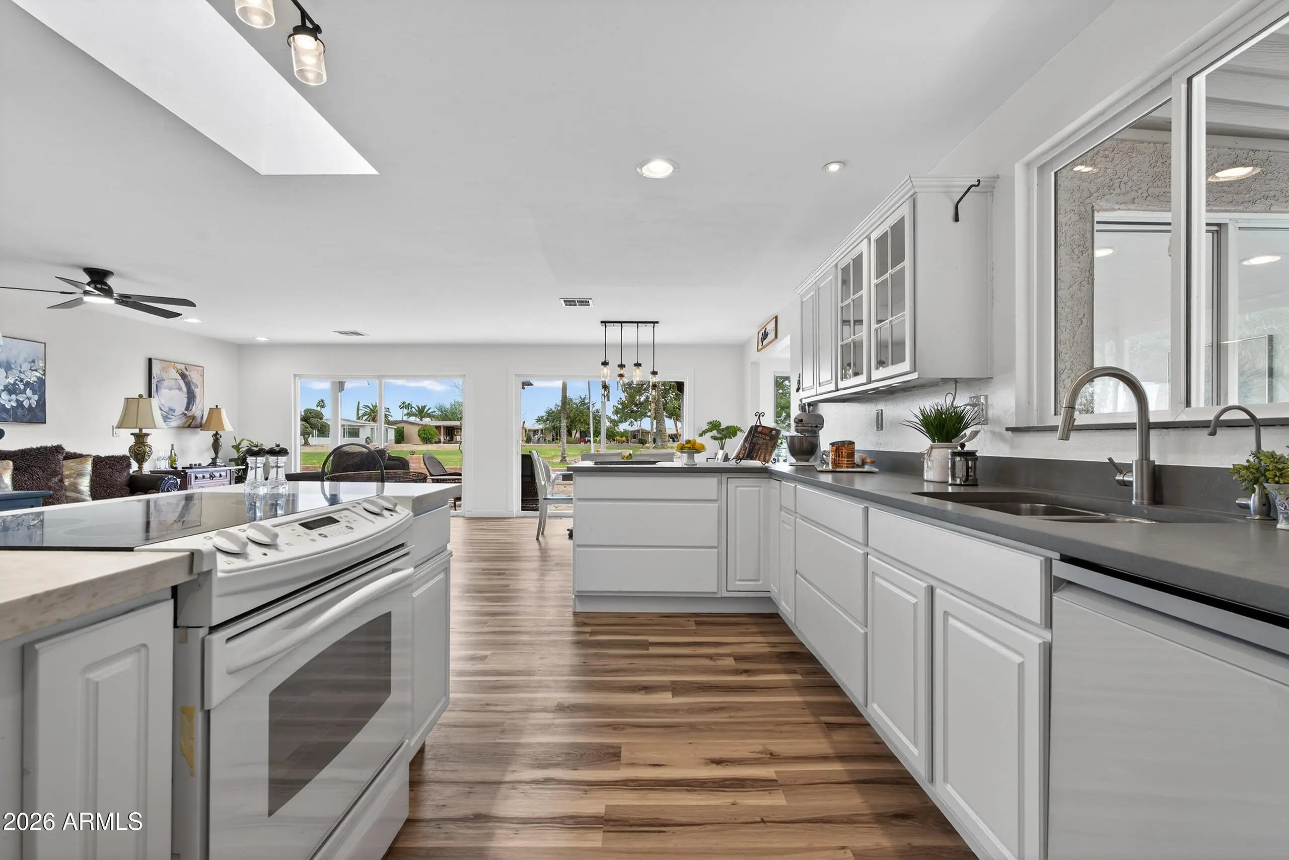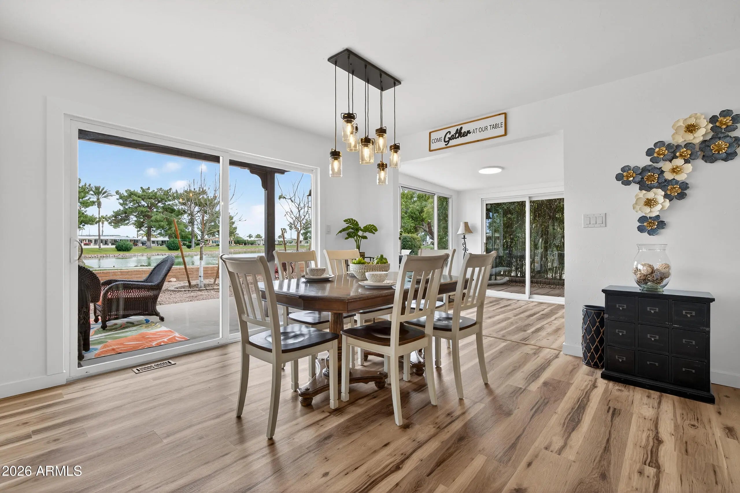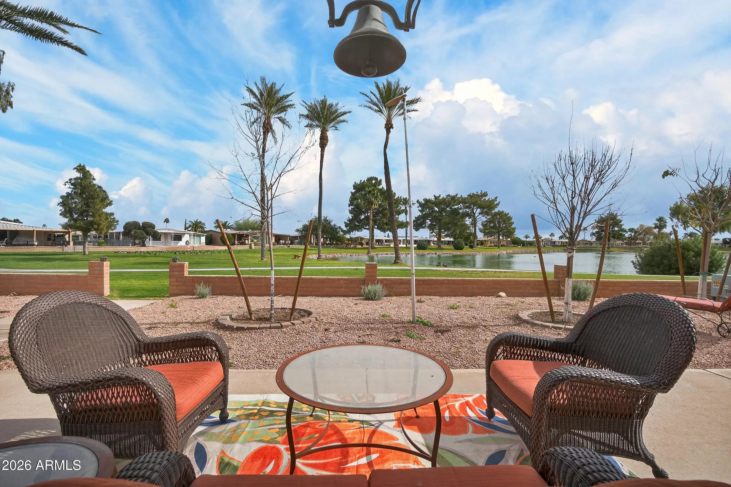 LAKEFRONT! Welcome to the Active Adult Community of Sun Lakes - where lifestyle meets breathtaking views. This beautifully refreshed, 2-bedroom, 2-bath home sits directly on the lake, offering spectacular water views and wildlife right from your backyard. Enjoy peaceful mornings on the patio with morning sun and relax in the evening shade. Freshly painted inside and out, this home features an open kitchen designed to capture the lake views, new quartz countertops, and a spacious den with a view - perfect for a home office. The primary suite offers a large walk-in closet generous shower. A 2-car tandem garage plus dedicated golf cart garage accessed from the backyard rounds out this property. If you've been waiting for lakefront living with both comfort and convenience, this is it!