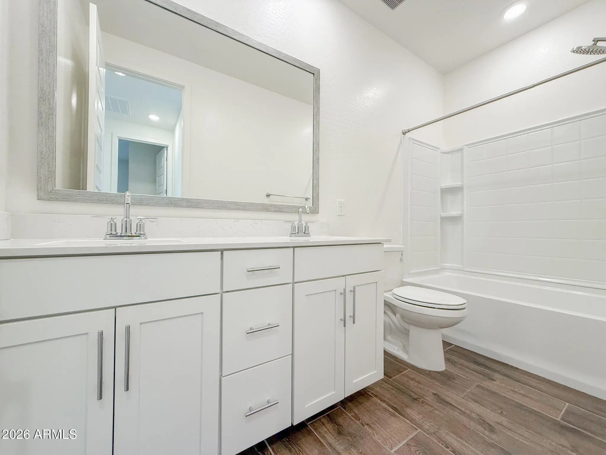 Unveil your dream home in this stunning 4/2.5 oasis in exclusive Phoenix gated community. This breathtaking residence offers unparalleled elegance, with sunlit living spaces featuring rich wood-plank like flooring throughout. The open-concept design flows seamlessly into a gourmet kitchen featuring white cabinetry, quartz countertops, subway tile backsplash, and premium black appliances. Retreat to the master suite with a spa-inspired ensuite bath, dual vanity, and spacious walk-in closet. Two additional bedrooms and a versatile bonus room perfect for an office. Outside, relax in your low-maintenance backyard finished with pavers. Enjoy a 2-car garage, indoor laundry, and exclusive community amenities: pool, spa, grills, and play area. A rare opportunity for sophistication and comfort.