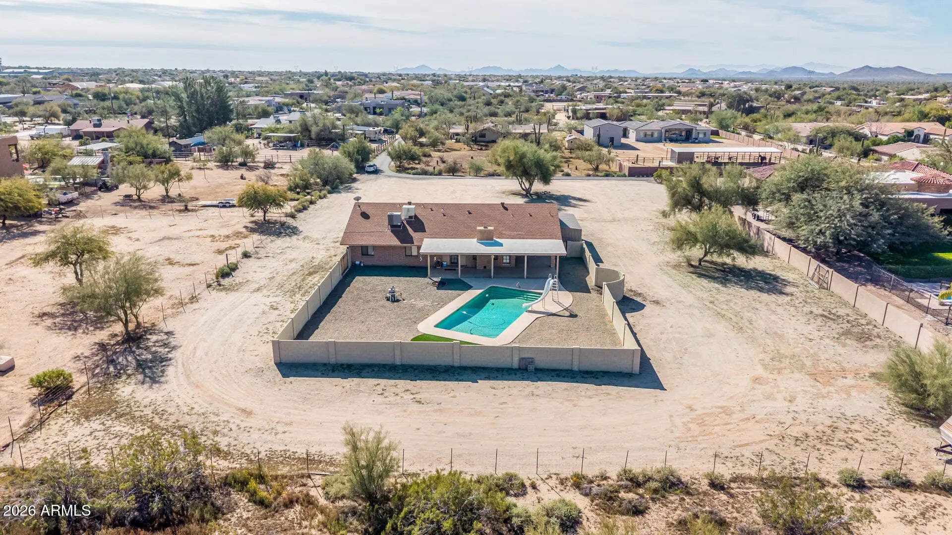 Proudly presenting this immaculately kept 3-bedroom 2 bath home nestled on a HUGE 1.27-acre lot! With unlimited potential, this timeless and charming property blends privacy, comfort, and quality with true Arizona living. Well maintained acreage complete with with a fenced yard and pool. 2-car garage w custom cabinetry plus shed, and plenty of space to build or add-on. NO HOA, Horses allowed, Room for and RV garage or RV parking..the possibilities are endless! Don't let this incredible opportunity slip by. Great neighborhood in one of the best areas of the valley. You have to see it to believe!