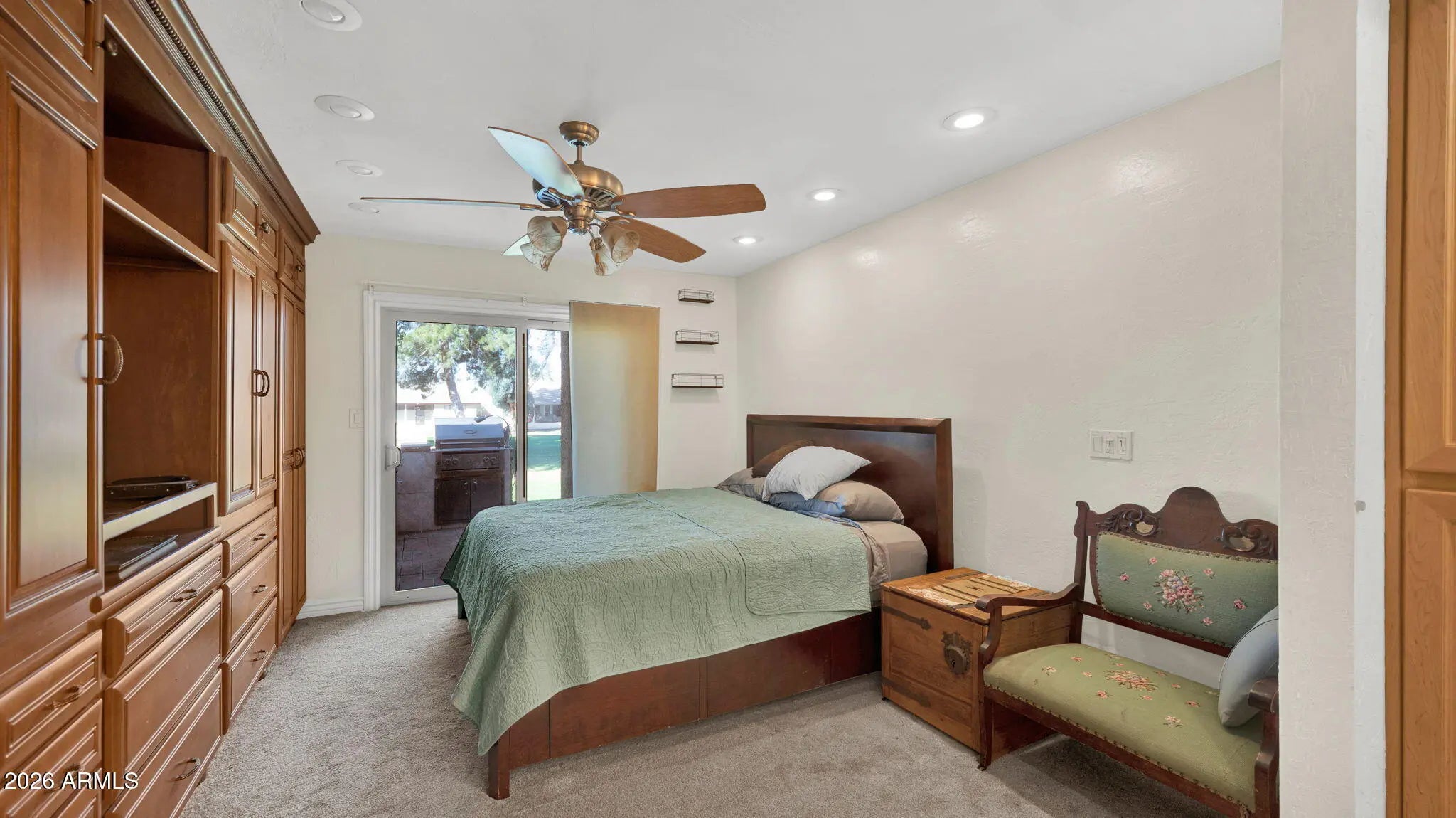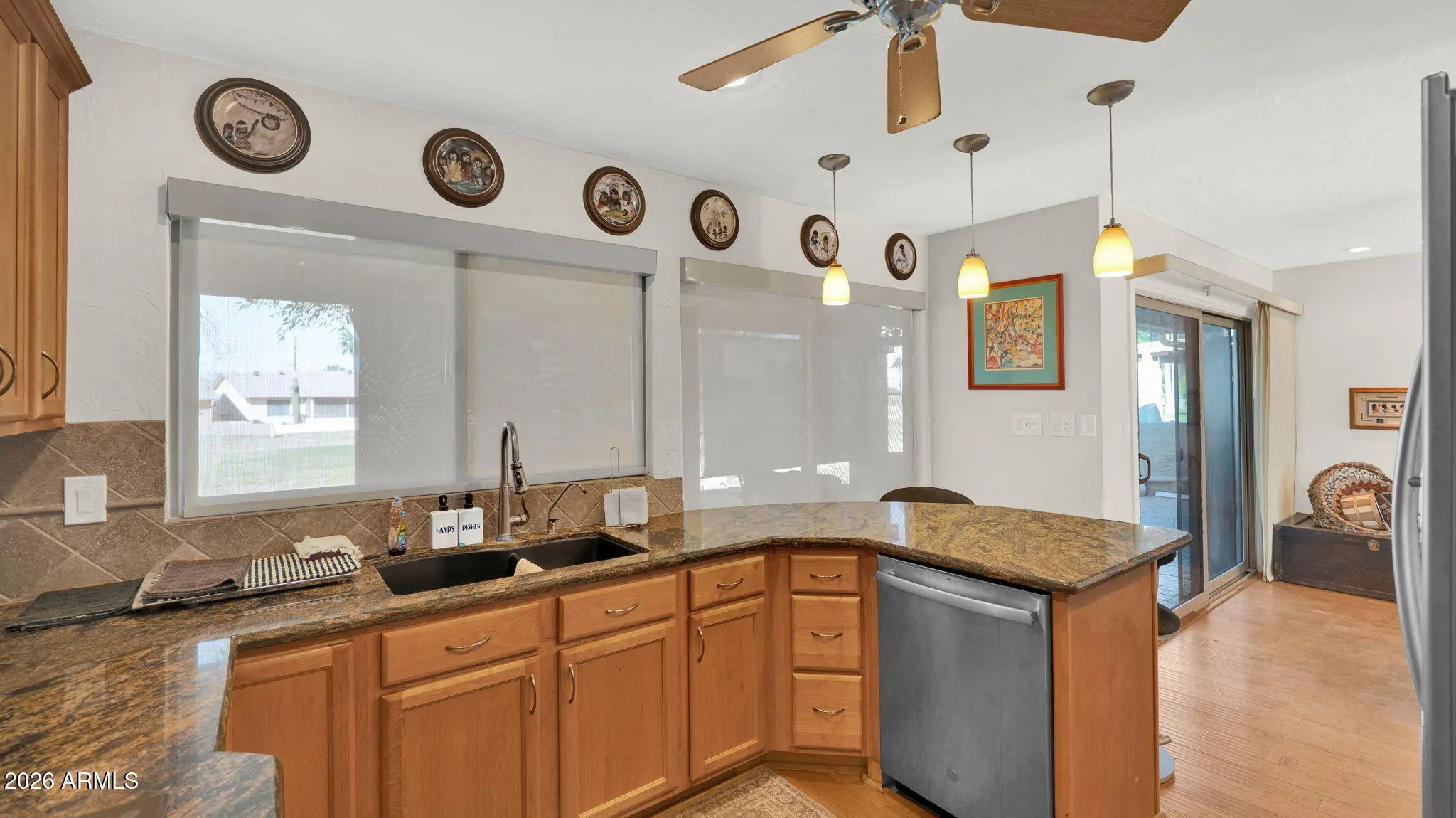 This golf course home is built for low maint & maximum enjoyment. The interior features granite countertops, stainless steel appliances, and an inviting layout that's both stylish and functional. Step outside to your private outdoor retreat overlooking the course -- complete with a built-in BBQ, refrigerator, and bar area, perfect for entertaining or relaxing with Arizona's gorgeous sunsets. Enjoy the active adult lifestyle with golf, community amenities, and a vibrant social atmosphere right at your doorstep. Buyer to verify all HOA fees. Agents are related to seller. No pets area.