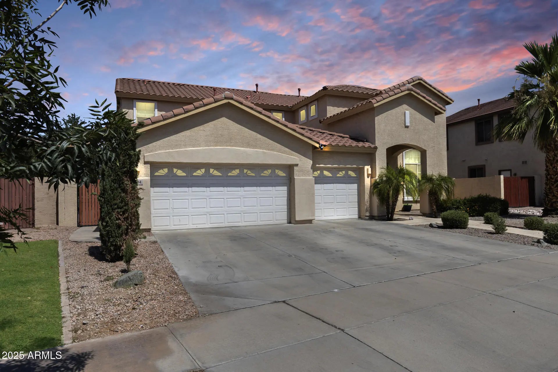 Step into elegance with this stunning 5-bed, 3.5-bath, two-story home nestled on an expansive 9,781 sqft lot in a prime location! Boasting 3,707 sq ft of beautifully designed living space, this residence welcomes you with a grand entrance and soaring ceilings, leading to a spacious den, family room, and loft—perfect for both relaxation and entertaining. The bright, open kitchen features a central island, breakfast bar, pantry, and abundant cabinetry. The split master suite is conveniently located downstairs and offers a walk-in closet and a luxurious bath with double vanities. Enjoy seamless indoor-outdoor living with a large covered patio, landscaped yard with grass, pavers, and decorative gravel, all backing to a serene park and greenbelt. With a 3-car garage and close proximity to Westgate Entertainment District, restaurants and shopping, this home truly has it all.