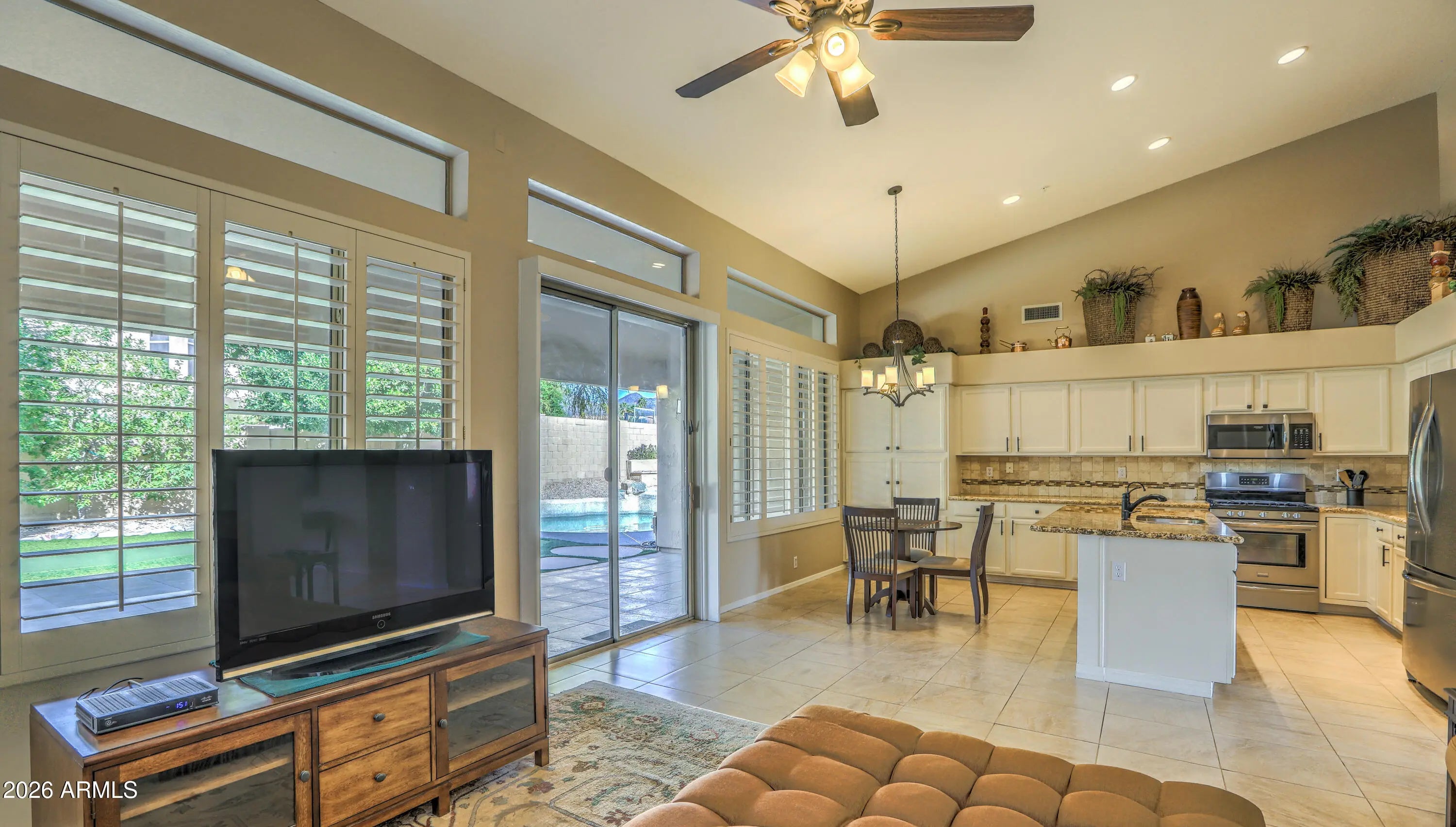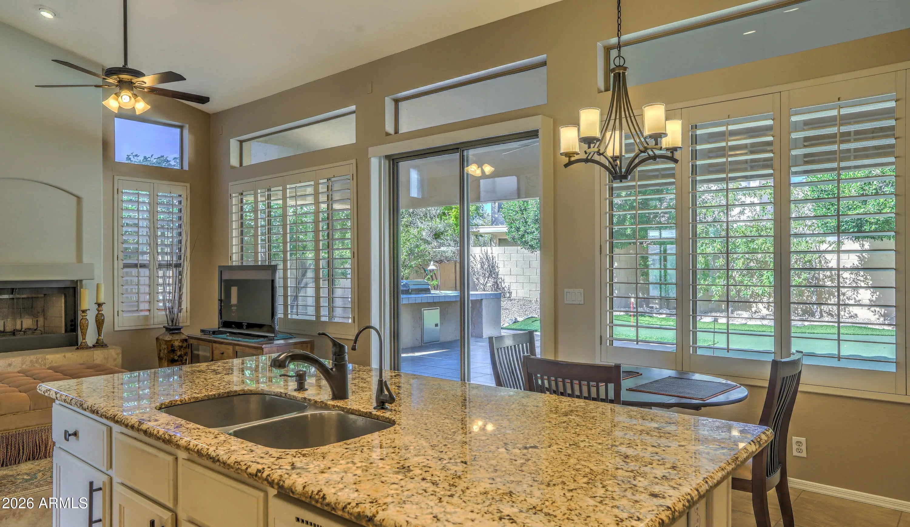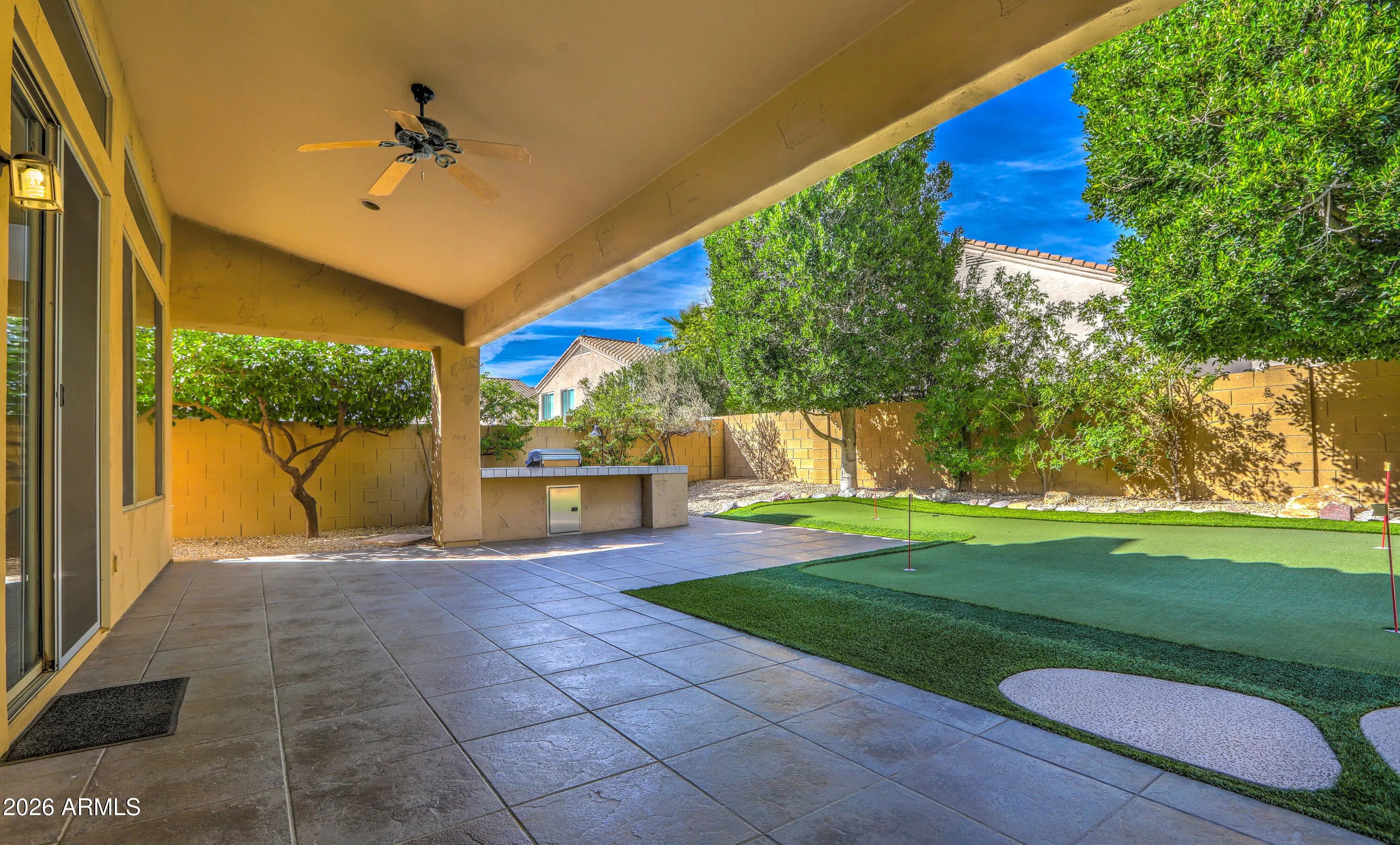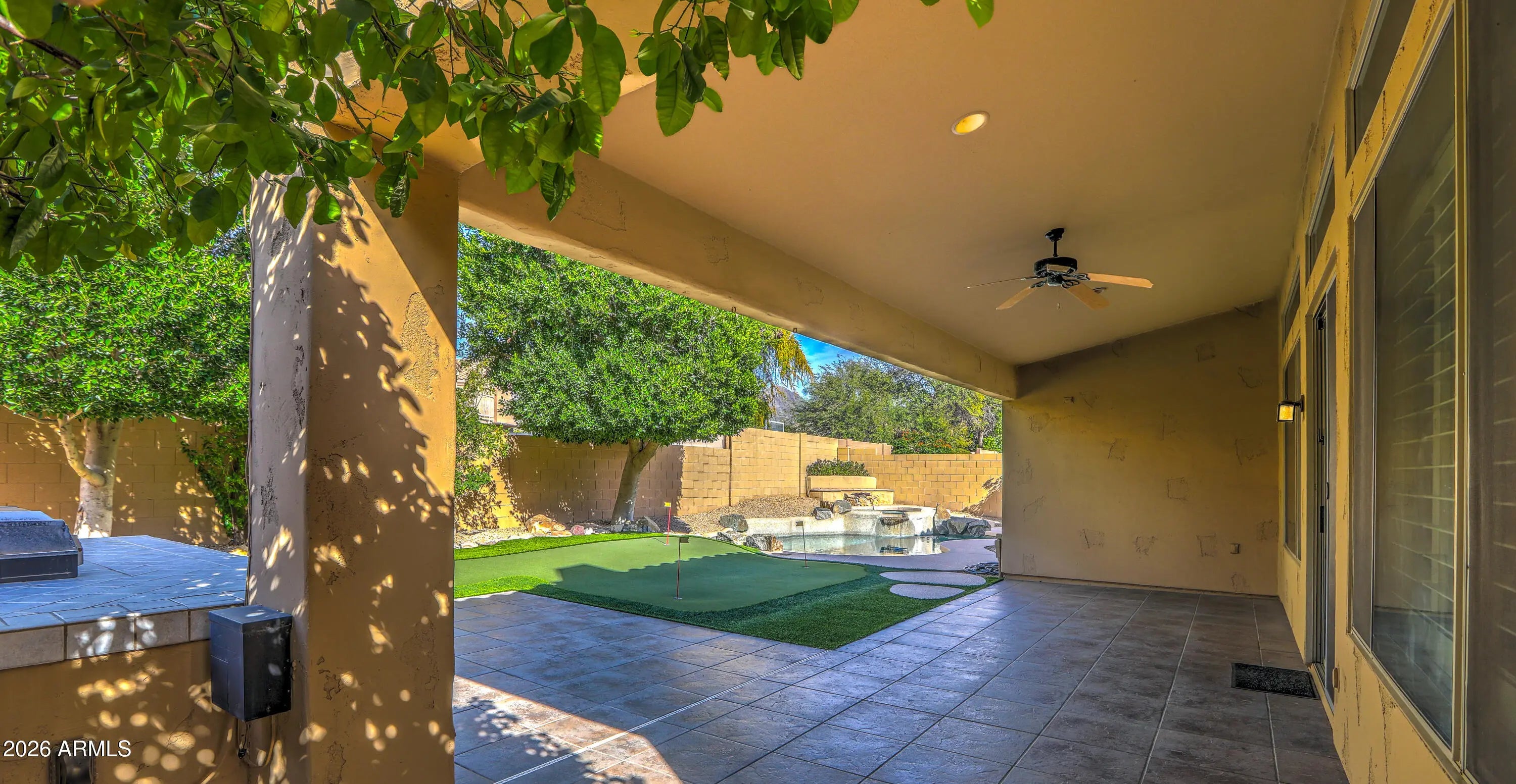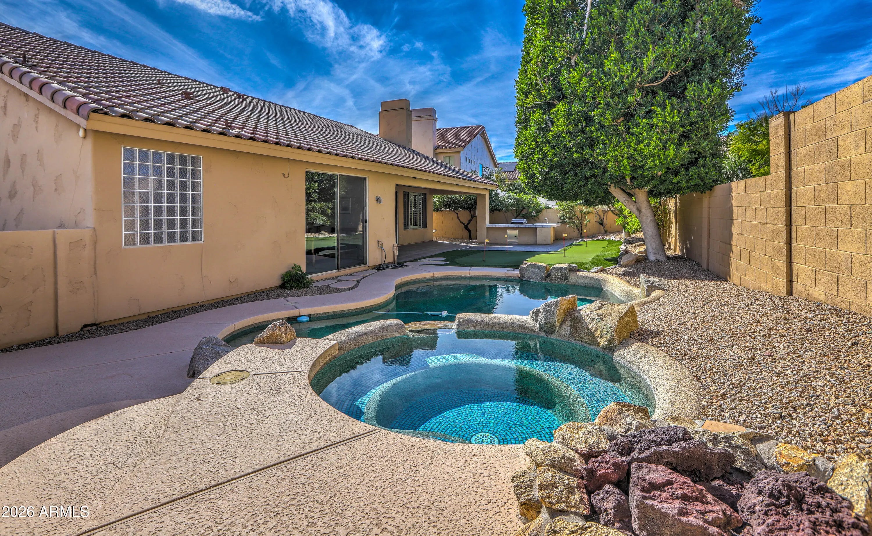 RARE FIND! Maybe the only 4 bdrm, 2 bath, SINGLE LEVEL, 3-CAR GARAGE/ POOL/SPA , home under 1M in all of Scottsdale! Set on PRIVATE/QUIET NORTH/SOUTH LOT, with shady trees, expanded covered patio, home is well cared for & IMMACULATE!!! LIGHT & BRIGHT, OPEN FLOORPLAN provides comfortable yet functional living. LOADED WITH UPGRADES INSIDE & OUT!: PUTTING GREEN, BUILT-IN OUTDOOR BBQ GRILL, Pebble-tec POOL/SPA, GAS FIREPIT AND MORE! granite countertops, stainless appliances, custom backsplash and soothing neutral paint PLUS!! Soaring vaulted ceilings clerestory windows. Spacious rooms and smart use of space make home play larger than sq ft. Primary Suite with custom closet built-ins overlooks sparkling heated pool/spa. COME SEE TODAY BEFORE ITS GONE