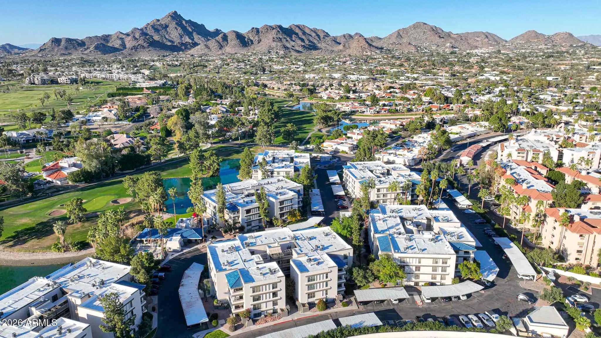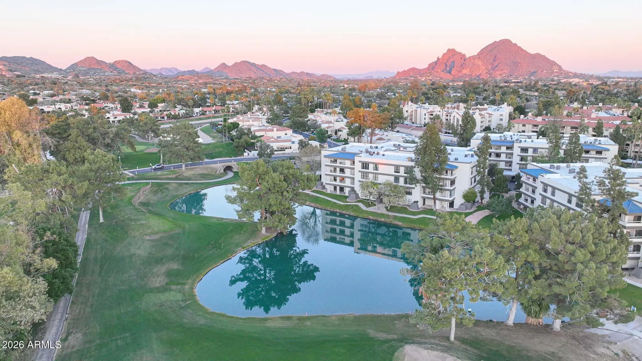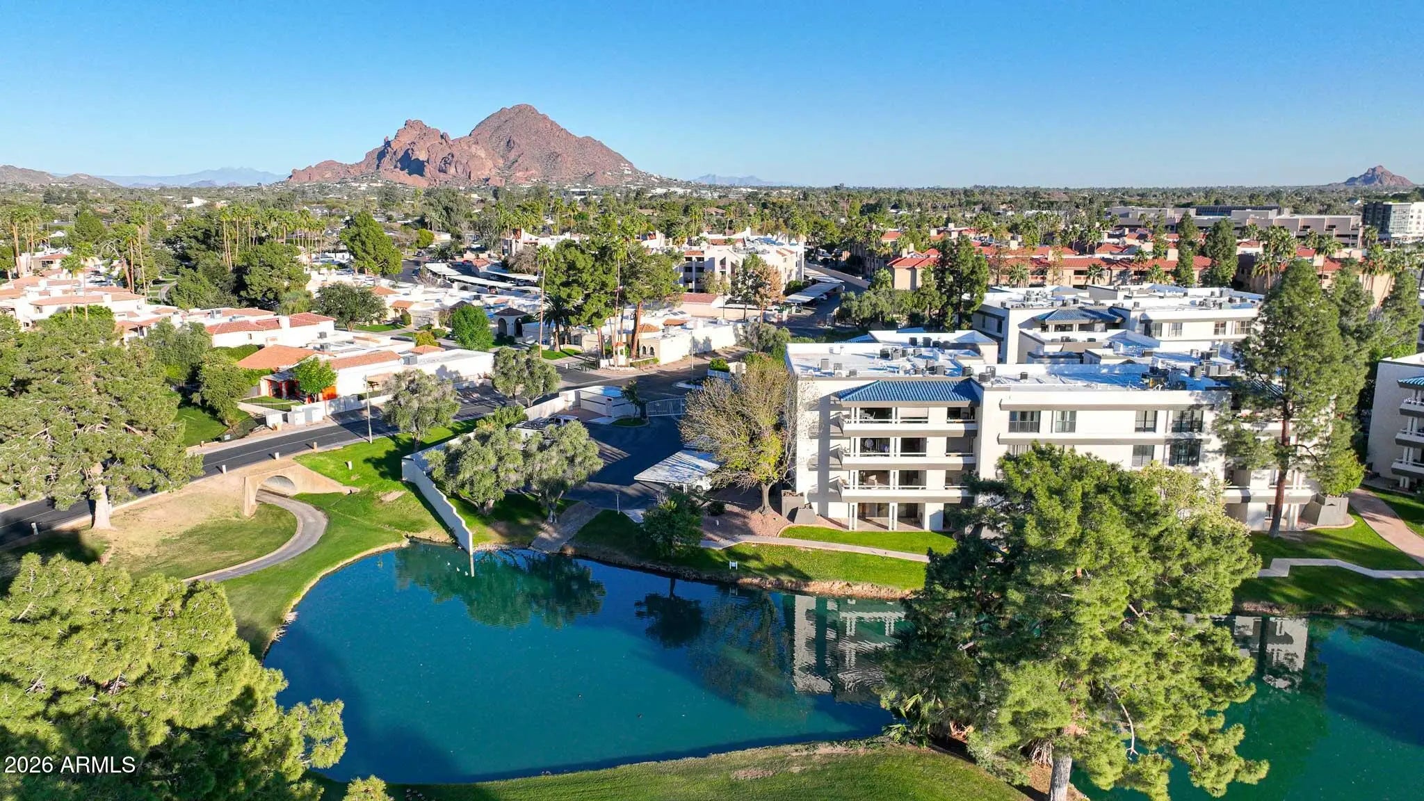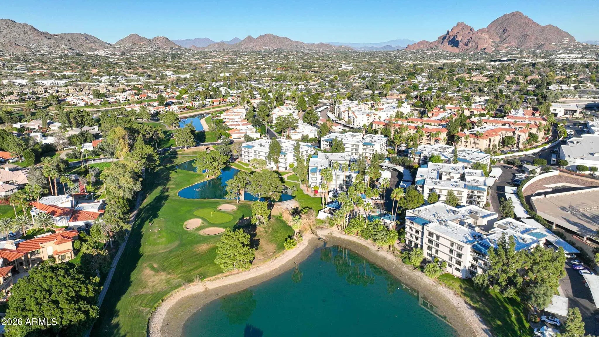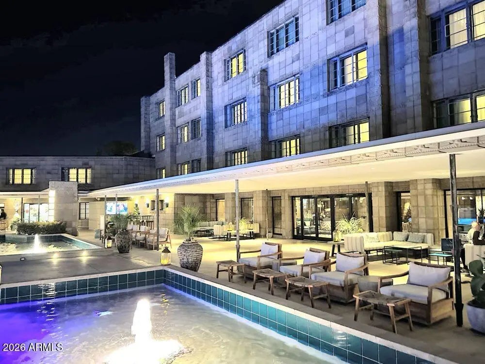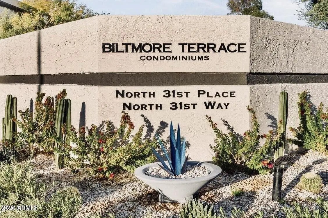 What a wonderful opportunity to live in one of the most desired communities within all of the Camelback Corridor, where active lifestyles meet modern-day convenience. Welcome to the Iconic Arizona Biltmore! Set within the grounds of the Arizona Biltmore, a Waldorf Astoria resort, this Biltmore Terrace residence presents a rare opportunity to own within one of Phoenix's most storied luxury destinations. This residence showcases a truly exceptional, fully reimagined renovation never before available within the Biltmore Terraces. Surrounded by celebrated architecture, manicured landscapes and world-class amenities, the setting blends historic character with modern resort style living. Every element of the redesign reflects extraordinary *(CLICK MORE) attention to detail and top-tier materials, delivering a new level of finish, refinement and design quality within the community. Known as the "Jewel of the Desert," the Arizona Biltmore Resort is celebrated for its distinctive architecture inspired by Frank Lloyd Wright, timeless geometric design and rich history of luxury hospitality. Over the decades it has hosted world leaders and celebrities including Marilyn Monroe, Elvis Presley and multiple U.S. presidents. Biltmore Terrace is a magnificent and lively upscale residential enclave showcasing striking architectural design and the perfect blend of urban sophistication, charm, and convenience. Experience the ultimate walkable lifestyle in one of Phoenix's most sought-after neighborhoods. Just a short walk or bike ride away are premier dining destinations and local favorites like The Adobe Bar and Grille, Hillstone, True Food Kitchen, Seasons 52, Blanco Cocina Cantina, Ocean 44, Eddie V's, LGO, Chelsea's Kitchen, The Henry, North Italia, Postino, The Vig, Steak 44, and the renowned Mediterranean-inspired rooftop dining at the Wrigley Mansion. Luxury shopping is equally close at Biltmore Fashion Park, featuring internationally recognized brands such as Ralph Lauren, Louis Vuitton, Gucci, Tiffany & Co., Lululemon, Neiman Marcus, Saks Fifth Avenue, Pottery Barn, Williams Sonoma, Warby Parker and Athleta. Nestled among mature, towering trees, lush green lawns, tranquil lakes and winding walking paths, the setting is peaceful and picturesque. Ideal for evening strolls with friends and family, all framed by the striking backdrop of Camelback Mountain and Piestewa Peak. Residents enjoy direct access to the renowned Arizona Canal Path, locally known as the Art Mollen Fitness Path, part of the scenic canal trail system and perfect for walking, running and cycling. Just minutes away, the Phoenix Mountain Preserve offers more than 30 miles of tranquil trails for hiking, biking and even horseback riding, an exceptional complement to the area's active, outdoor lifestyle. The Biltmore Terrace condominium community is a quality-built, concrete block construction enclave established in 1981, offering a secure, amenity-rich environment designed for comfort, convenience and easy luxury living. This gated and patrolled community is ideally positioned along the Arizona Biltmore's #3 hole of the Links Golf Course, offering privacy and distinction in a world-class resort environment. Residents of Biltmore Terrace enjoy an impressive collection of amenities including a clubhouse, fitness center, two resort-style pools and spas along with two dedicated bicycle storage facilities. The community also features a secure, state-of-the-art phone access system providing self-controlled entry at all gates and convenient access to community amenities and the mailroom. The back pedestrian gate places everyday essentials and popular neighborhood dining just steps away and allows easy access to Safeway, The Collins, Havana Café, Matt's Big Breakfast, Bobby-Q, Keegan's Grill and other local favorites making quick outings and daily errands quick and convenient. Perfectly positioned within the community, this second-floor corner residence enjoys expansive views of the lakes, golf course, and nearby mountain silhouettes from multiple directions. Convenient elevator and stair access provide ease of entry, while the corner placement maximizes light and privacy. This residence showcases a reimagined floor plan that introduces additional interior space rarely found in other units within the community. This reconfiguration features a open chef inspired kitchen and added a dedicated office, den, or bonus room to the floor plan creating valuable flexibility for modern living. Now configured as a three-bedroom, two-bath split floor plan PLUS a bonus room, the layout enhances comfort, livability and design. From the moment you arrive, you're welcomed by a serene courtyard featuring a soothing fountain with clean architectural lines creating a warm and inviting approach that sets the tone as you ascend to the scenic second-floor residence. The front door welcomes you to a light, bright and open flowing floor plan featuring an inviting foyer, luxuriously appointed with Sensi Roma large-format Italian tile, upgraded baseboards, warm wood accents, raised panel doors, designer paint and upgraded lighting, hardware and fixtures. All complemented by tasteful decorator touches throughout and anchored by a state-of-the-art chef-inspired kitchen by Wolf and Sub-Zero. The great room is expansive, cheery, airy and warm with abundant natural lighting featuring disappearing walls of floor to ceiling glass that seamlessly bring the outside in, welcoming outdoor living and extending the living experience of this incredible renovation. Surrounded the by golf course, lakes and skyline views the space feels both energizing and serene, ideal for entertaining or a quiet night at home. Enjoy preparing lavish meals and making memories in your chef's kitchen featuring quality-crafted soft close cabinetry and quartz countertops, all framed by a custom integrated backsplash that ties the space together beautifully. Spacious and functional, the kitchen boasts ample 