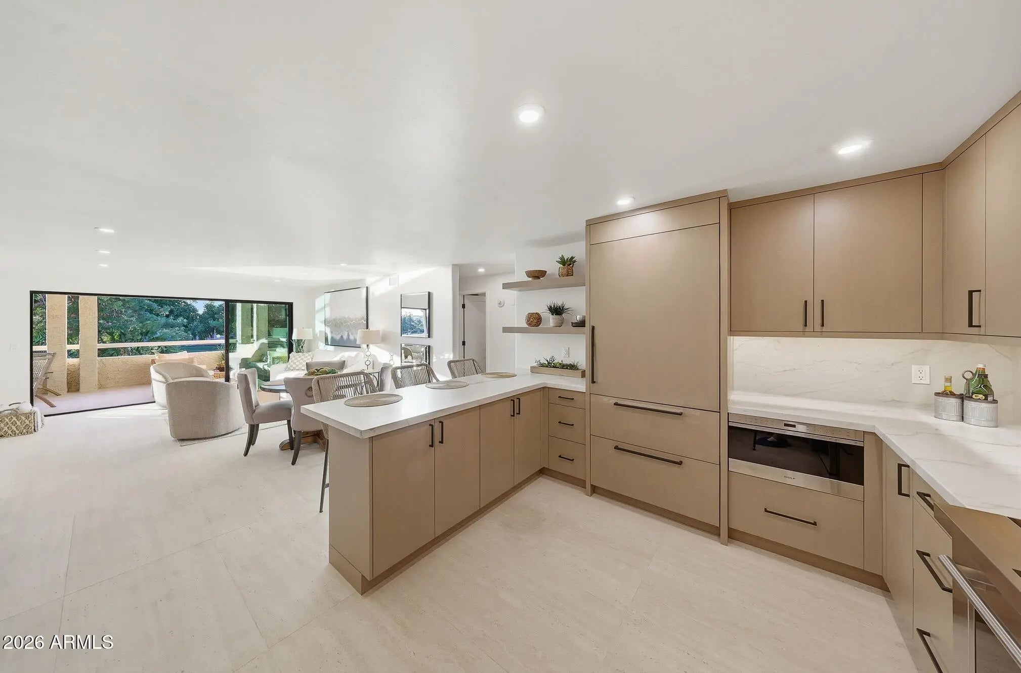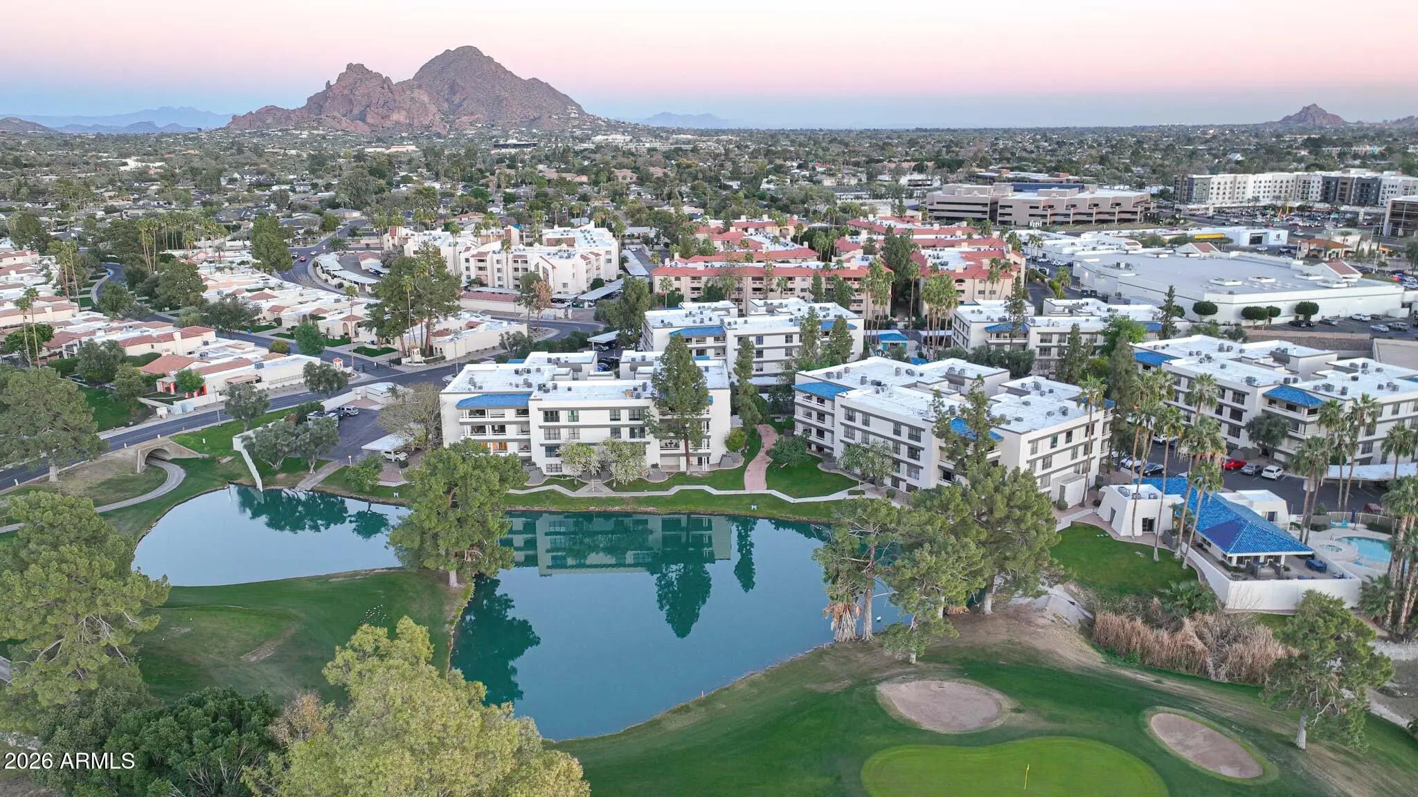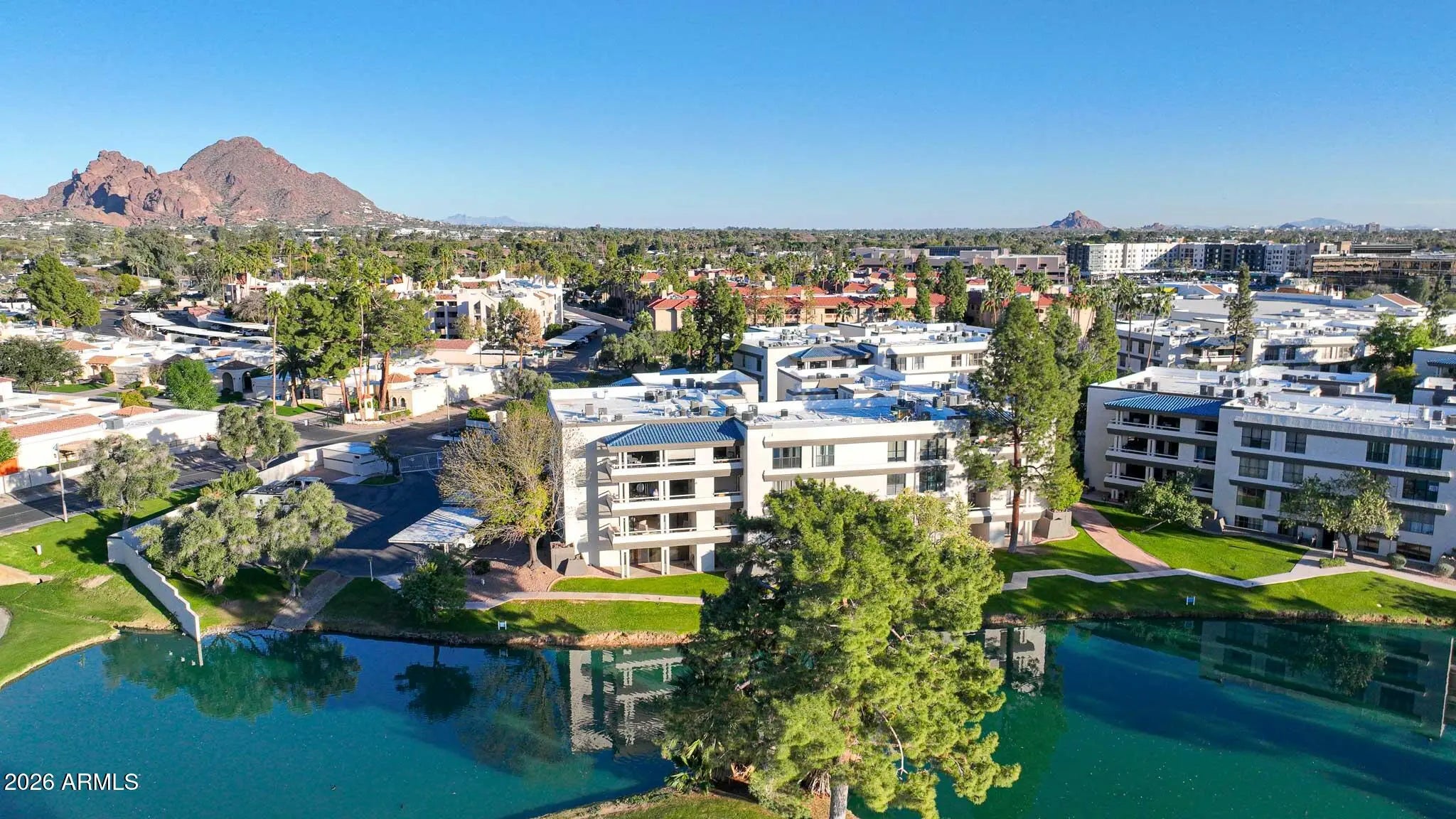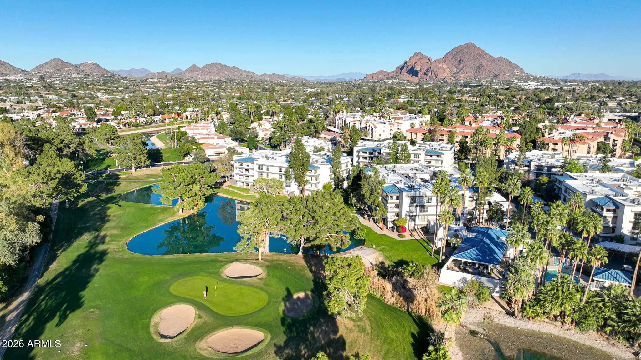 What a wonderful opportunity to live in one of the most desired communities within all of the Camelback Corridor, where active lifestyles meet modern-day convenience. Welcome to the Iconic Arizona Biltmore! Set within the grounds of the Arizona Biltmore, a Waldorf Astoria resort, this Biltmore Terrace residence presents a rare opportunity to own within one of Phoenix's most storied luxury destinations. This residence showcases a truly exceptional, fully reimagined renovation never before available within the Biltmore Terraces. Surrounded by celebrated architecture, manicured landscapes and world-class amenities, the setting blends historic character with modern resort style living. Every element of the redesign reflects extraordinary *(CLICK MORE) attention to detail and top-tier materials, delivering a new level of finish, refinement and design quality within the community. Known as the "Jewel of the Desert," the Arizona Biltmore Resort is celebrated for its distinctive architecture inspired by Frank Lloyd Wright, timeless geometric design and rich history of luxury hospitality. Over the decades it has hosted world leaders and celebrities including Marilyn Monroe, Elvis Presley and multiple U.S. presidents. Biltmore Terrace is a magnificent and lively upscale residential enclave showcasing striking architectural design and the perfect blend of urban sophistication, charm, and convenience. Experience the ultimate walkable lifestyle in one of Phoenix's most sought-after neighborhoods. Just a short walk or bike ride away are premier dining destinations and local favorites like The Adobe Bar and Grille, Hillstone, True Food Kitchen, Seasons 52, Blanco Cocina Cantina, Ocean 44, Eddie V's, LGO, Chelsea's Kitchen, The Henry, North Italia, Postino, The Vig, Steak 44, and the renowned Mediterranean-inspired rooftop dining at the Wrigley Mansion. Luxury shopping is equally close at Biltmore Fashion Park, featuring internationally recognized brands such as Ralph Lauren, Louis Vuitton, Gucci, Tiffany & Co., Lululemon, Neiman Marcus, Saks Fifth Avenue, Pottery Barn, Williams Sonoma, Warby Parker and Athleta. Nestled among mature, towering trees, lush green lawns, tranquil lakes and winding walking paths, the setting is peaceful and picturesque. Ideal for evening strolls with friends and family, all framed by the striking backdrop of Camelback Mountain and Piestewa Peak. Residents enjoy direct access to the renowned Arizona Canal Path, locally known as the Art Mollen Fitness Path, part of the scenic canal trail system and perfect for walking, running and cycling. Just minutes away, the Phoenix Mountain Preserve offers more than 30 miles of tranquil trails for hiking, biking and even horseback riding, an exceptional complement to the area's active, outdoor lifestyle. The Biltmore Terrace condominium community is a quality-built, concrete block construction enclave established in 1981, offering a secure, amenity-rich environment designed for comfort, convenience and easy luxury living. This gated and patrolled community is ideally positioned along the Arizona Biltmore's #3 hole of the Links Golf Course, offering privacy and distinction in a world-class resort environment. Residents of Biltmore Terrace enjoy an impressive collection of amenities including a clubhouse, fitness center, two resort-style pools and spas along with two dedicated bicycle storage facilities. The community also features a secure, state-of-the-art phone access system providing self-controlled entry at all gates and convenient access to community amenities and the mailroom. The back pedestrian gate places everyday essentials and popular neighborhood dining just steps away and allows easy access to Safeway, The Collins, Havana Café, Matt's Big Breakfast, Bobby-Q, Keegan's Grill and other local favorites making quick outings and daily errands quick and convenient. Perfectly positioned within the community, this second-floor corner residence enjoys expansive views of the lakes, golf course, and nearby mountain silhouettes from multiple directions. Convenient elevator and stair access provide ease of entry, while the corner placement maximizes light and privacy. This residence showcases a reimagined floor plan that introduces additional interior space rarely found in other units within the community. This reconfiguration features a open chef inspired kitchen and added a dedicated office, den, or bonus room to the floor plan creating valuable flexibility for modern living. Now configured as a three-bedroom, two-bath split floor plan PLUS a bonus room, the layout enhances comfort, livability and design. From the moment you arrive, you're welcomed by a serene courtyard featuring a soothing fountain with clean architectural lines creating a warm and inviting approach that sets the tone as you ascend to the scenic second-floor residence. The front door welcomes you to a light, bright and open flowing floor plan featuring an inviting foyer, luxuriously appointed with Sensi Roma large-format Italian tile, upgraded baseboards, warm wood accents, raised panel doors, designer paint and upgraded lighting, hardware and fixtures. All complemented by tasteful decorator touches throughout and anchored by a state-of-the-art chef-inspired kitchen by Wolf and Sub-Zero. The great room is expansive, cheery, airy and warm with abundant natural lighting featuring disappearing walls of floor to ceiling glass that seamlessly bring the outside in, welcoming outdoor living and extending the living experience of this incredible renovation. Surrounded the by golf course, lakes and skyline views the space feels both energizing and serene, ideal for entertaining or a quiet night at home. Enjoy preparing lavish meals and making memories in your chef's kitchen featuring quality-crafted soft close cabinetry and quartz countertops, all framed by a custom integrated backsplash that ties the space together beautifully. Spacious and functional, the kitchen boasts ample 