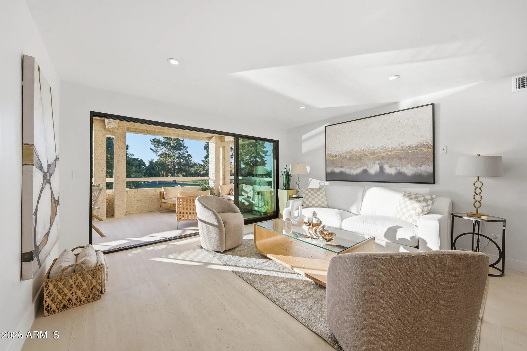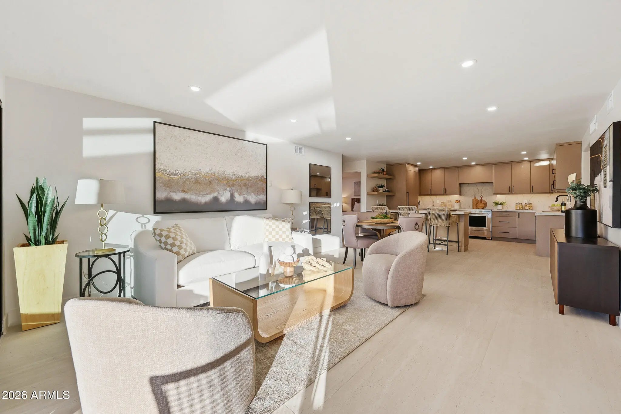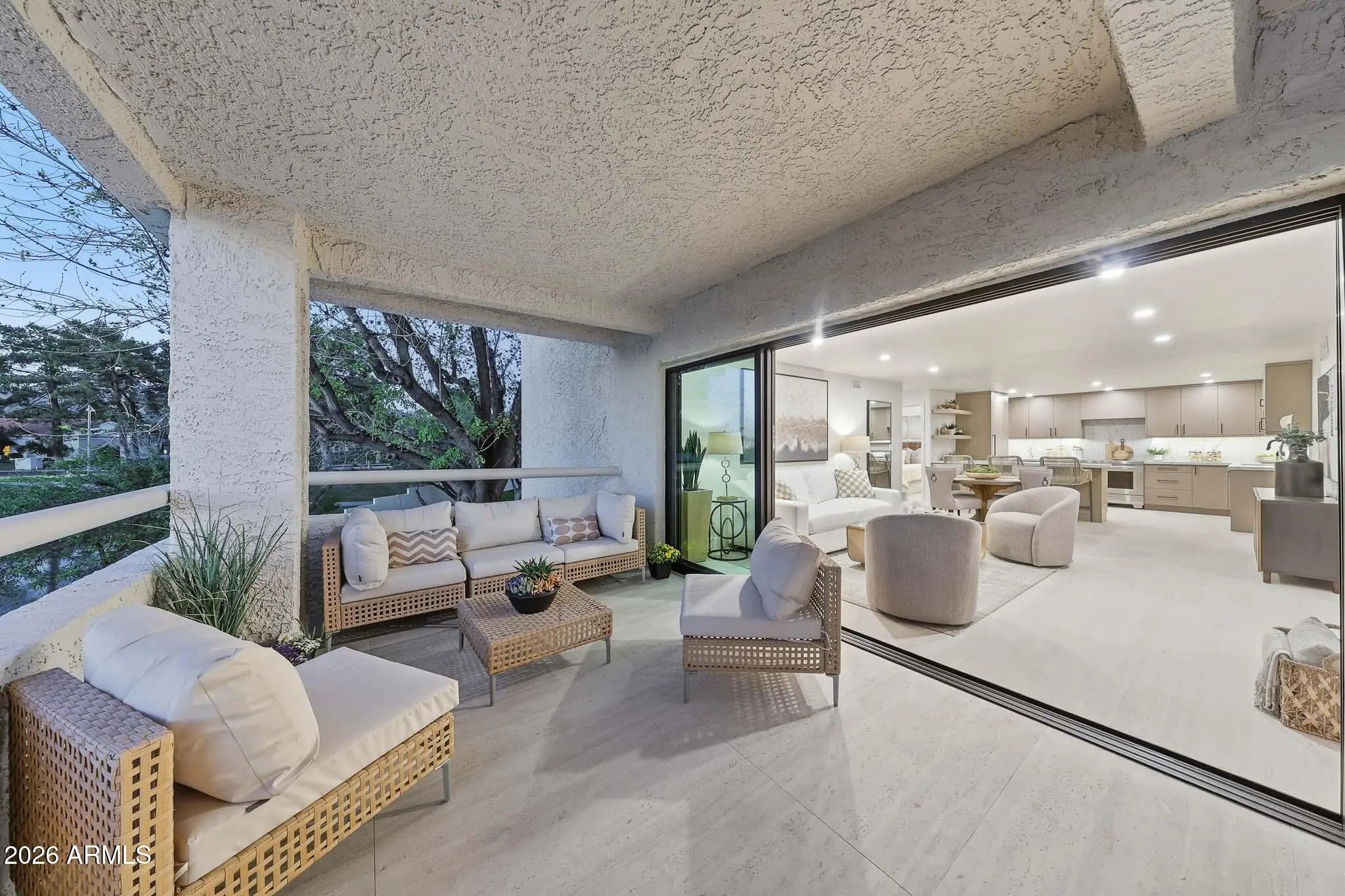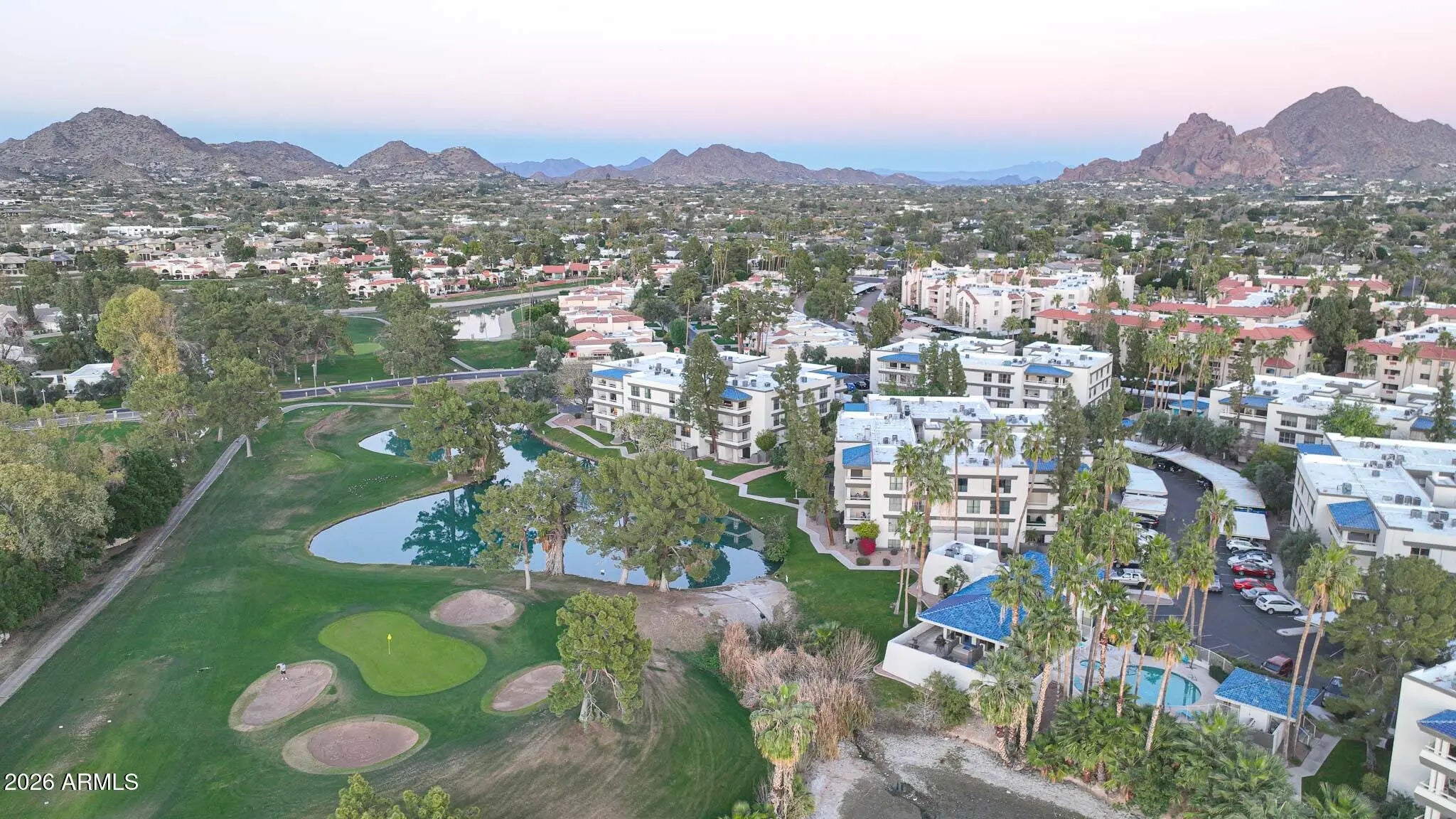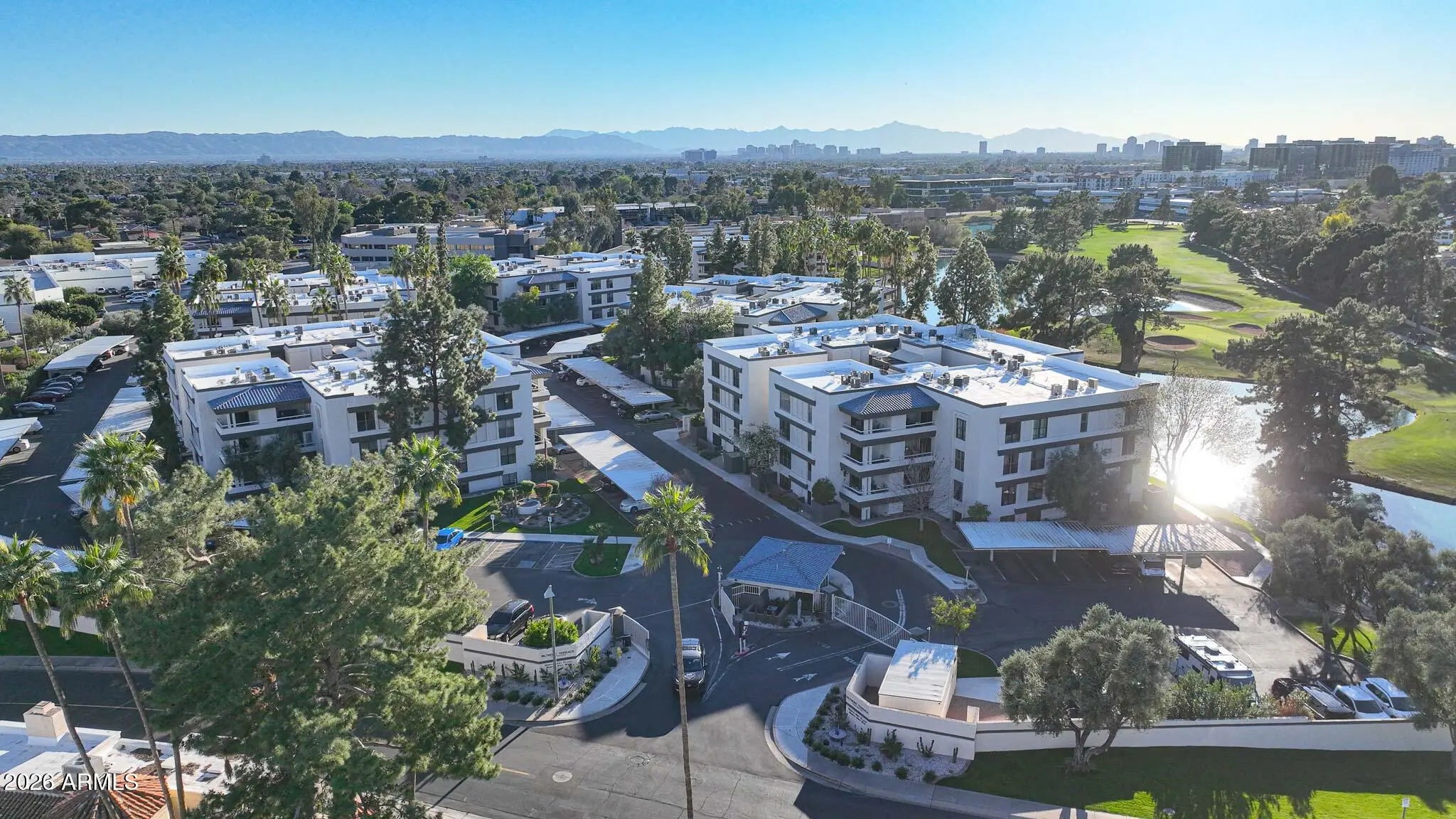 What a wonderful opportunity to live in one of the most desired communities within all of the Camelback Corridor, where active lifestyles meet modern-day convenience. Welcome to the Iconic Arizona Biltmore! Set within the grounds of the Arizona Biltmore, a Waldorf Astoria resort, this Biltmore Terrace residence presents a rare opportunity to own within one of Phoenix's most storied luxury destinations. This residence showcases a truly exceptional, fully reimagined renovation never before available within the Biltmore Terraces. Surrounded by celebrated architecture, manicured landscapes and world-class amenities, the setting blends historic character with modern resort style living. Every element of the redesign reflects extraordinary *(CLICK MORE) attention to detail and top-tier materials, delivering a new level of finish, refinement and design quality within the community. Known as the "Jewel of the Desert," the Arizona Biltmore Resort is celebrated for its distinctive architecture inspired by Frank Lloyd Wright, timeless geometric design and rich history of luxury hospitality. Over the decades it has hosted world leaders and celebrities including Marilyn Monroe, Elvis Presley and multiple U.S. presidents. Biltmore Terrace is a magnificent and lively upscale residential enclave showcasing striking architectural design and the perfect blend of urban sophistication, charm, and convenience. Experience the ultimate walkable lifestyle in one of Phoenix's most sought-after neighborhoods. Just a short walk or bike ride away are premier dining destinations and local favorites like The Adobe Bar and Grille, Hillstone, True Food Kitchen, Seasons 52, Blanco Cocina Cantina, Ocean 44, Eddie V's, LGO, Chelsea's Kitchen, The Henry, North Italia, Postino, The Vig, Steak 44, and the renowned Mediterranean-inspired rooftop dining at the Wrigley Mansion. Luxury shopping is equally close at Biltmore Fashion Park, featuring internationally recognized brands such as Ralph Lauren, Louis Vuitton, Gucci, Tiffany & Co., Lululemon, Neiman Marcus, Saks Fifth Avenue, Pottery Barn, Williams Sonoma, Warby Parker and Athleta. Nestled among mature, towering trees, lush green lawns, tranquil lakes and winding walking paths, the setting is peaceful and picturesque. Ideal for evening strolls with friends and family, all framed by the striking backdrop of Camelback Mountain and Piestewa Peak. Residents enjoy direct access to the renowned Arizona Canal Path, locally known as the Art Mollen Fitness Path, part of the scenic canal trail system and perfect for walking, running and cycling. Just minutes away, the Phoenix Mountain Preserve offers more than 30 miles of tranquil trails for hiking, biking and even horseback riding, an exceptional complement to the area's active, outdoor lifestyle. The Biltmore Terrace condominium community is a quality-built, concrete block construction enclave established in 1981, offering a secure, amenity-rich environment designed for comfort, convenience and easy luxury living. This gated and patrolled community is ideally positioned along the Arizona Biltmore's #3 hole of the Links Golf Course, offering privacy and distinction in a world-class resort environment. Residents of Biltmore Terrace enjoy an impressive collection of amenities including a clubhouse, fitness center, two resort-style pools and spas along with two dedicated bicycle storage facilities. The community also features a secure, state-of-the-art phone access system providing self-controlled entry at all gates and convenient access to community amenities and the mailroom. The back pedestrian gate places everyday essentials and popular neighborhood dining just steps away and allows easy access to Safeway, The Collins, Havana Café, Matt's Big Breakfast, Bobby-Q, Keegan's Grill and other local favorites making quick outings and daily errands quick and convenient. Perfectly positioned within the community, this second-floor corner residence enjoys expansive views of the lakes, golf course, and nearby mountain silhouettes from multiple directions. Convenient elevator and stair access provide ease of entry, while the corner placement maximizes light and privacy. This residence showcases a reimagined floor plan that introduces additional interior space rarely found in other units within the community. This reconfiguration features a open chef inspired kitchen and added a dedicated office, den, or bonus room to the floor plan creating valuable flexibility for modern living. Now configured as a three-bedroom, two-bath split floor plan PLUS a bonus room, the layout enhances comfort, livability and design. From the moment you arrive, you're welcomed by a serene courtyard featuring a soothing fountain with clean architectural lines creating a warm and inviting approach that sets the tone as you ascend to the scenic second-floor residence. The front door welcomes you to a light, bright and open flowing floor plan featuring an inviting foyer, luxuriously appointed with Sensi Roma large-format Italian tile, upgraded baseboards, warm wood accents, raised panel doors, designer paint and upgraded lighting, hardware and fixtures. All complemented by tasteful decorator touches throughout and anchored by a state-of-the-art chef-inspired kitchen by Wolf and Sub-Zero. The great room is expansive, cheery, airy and warm with abundant natural lighting featuring disappearing walls of floor to ceiling glass that seamlessly bring the outside in, welcoming outdoor living and extending the living experience of this incredible renovation. Surrounded the by golf course, lakes and skyline views the space feels both energizing and serene, ideal for entertaining or a quiet night at home. Enjoy preparing lavish meals and making memories in your chef's kitchen featuring quality-crafted soft close cabinetry and quartz countertops, all framed by a custom integrated backsplash that ties the space together beautifully. Spacious and functional, the kitchen boasts ample 
