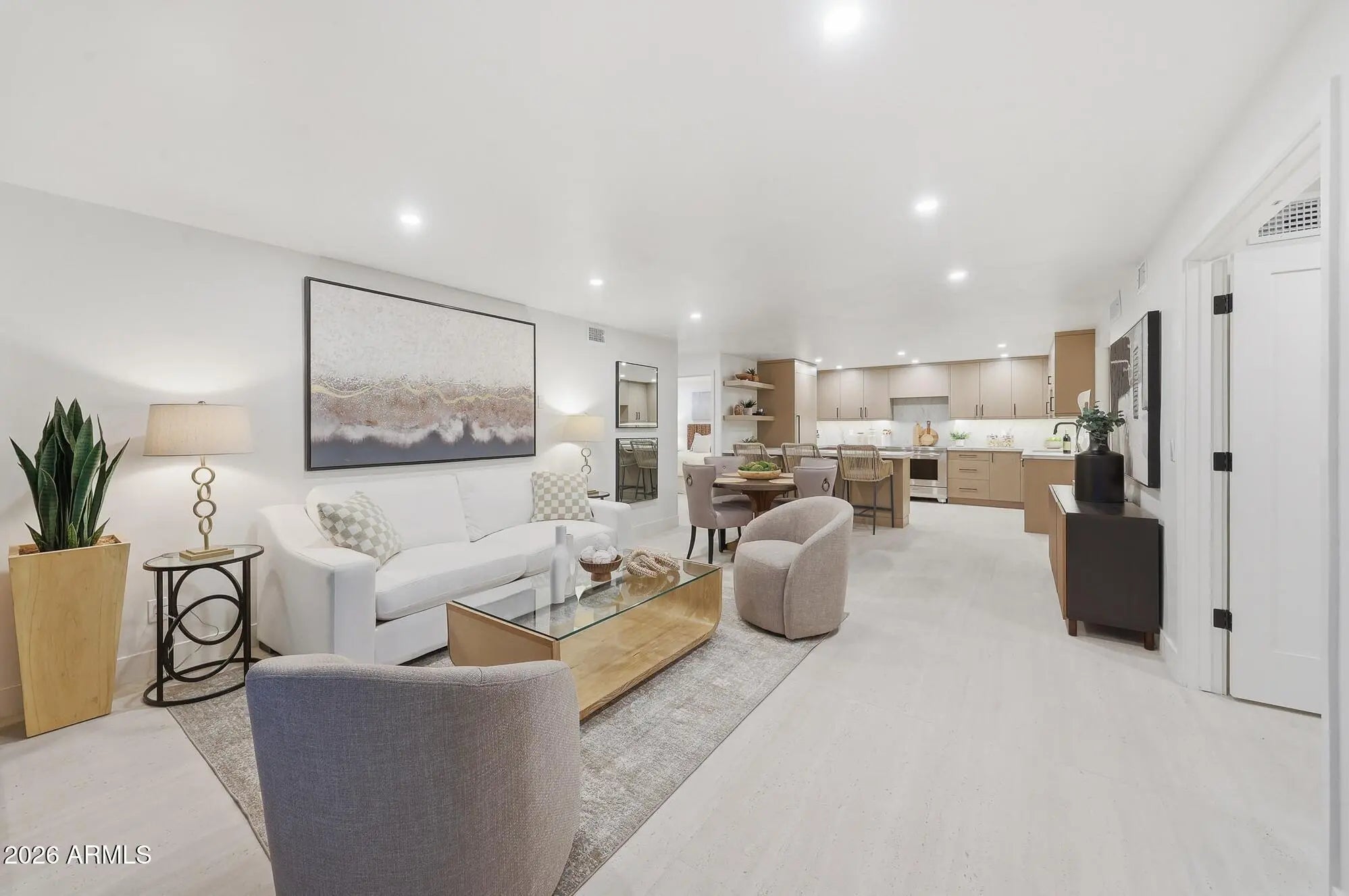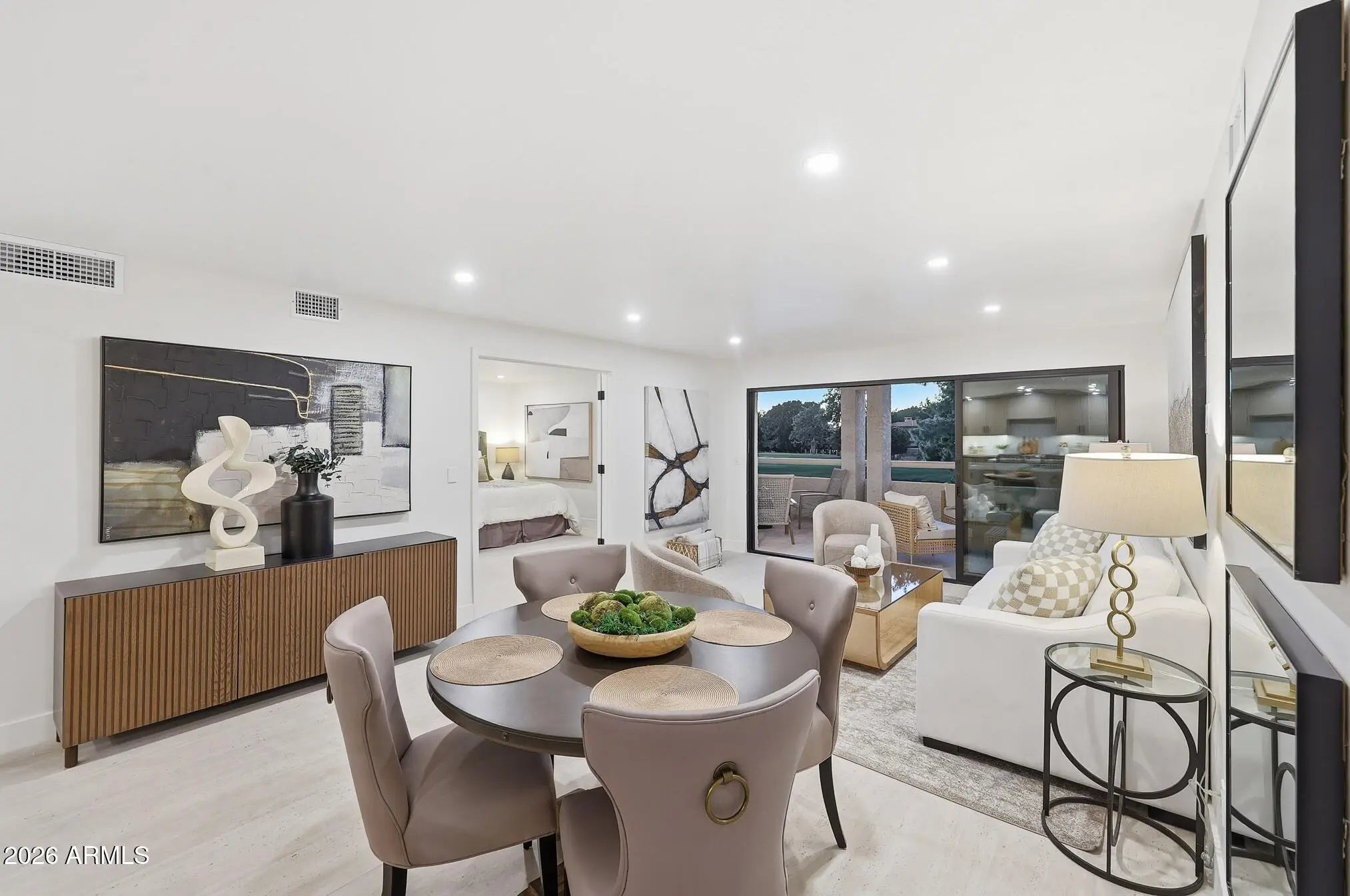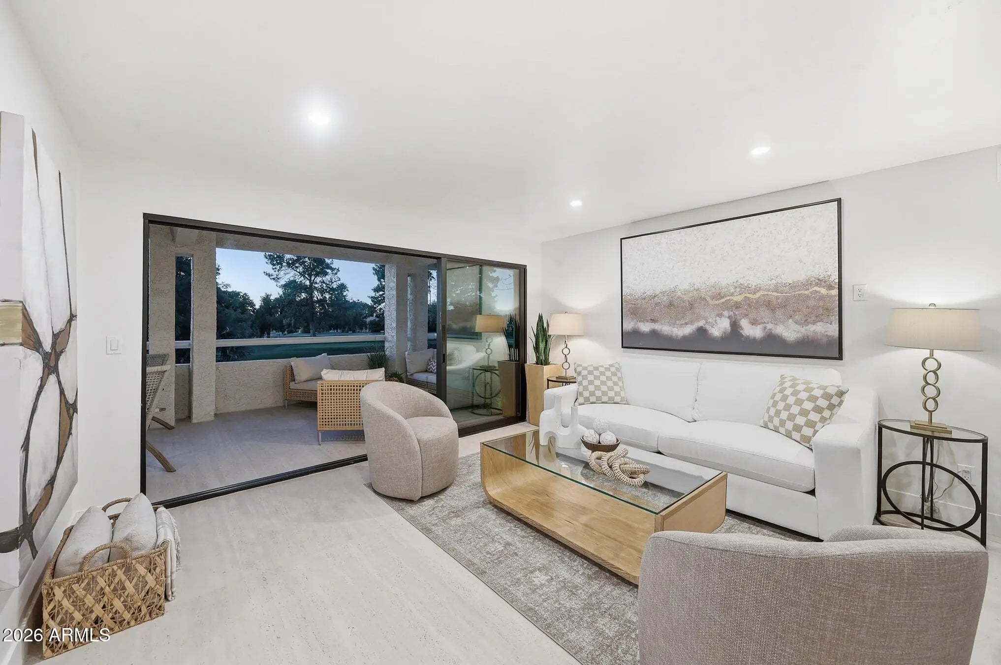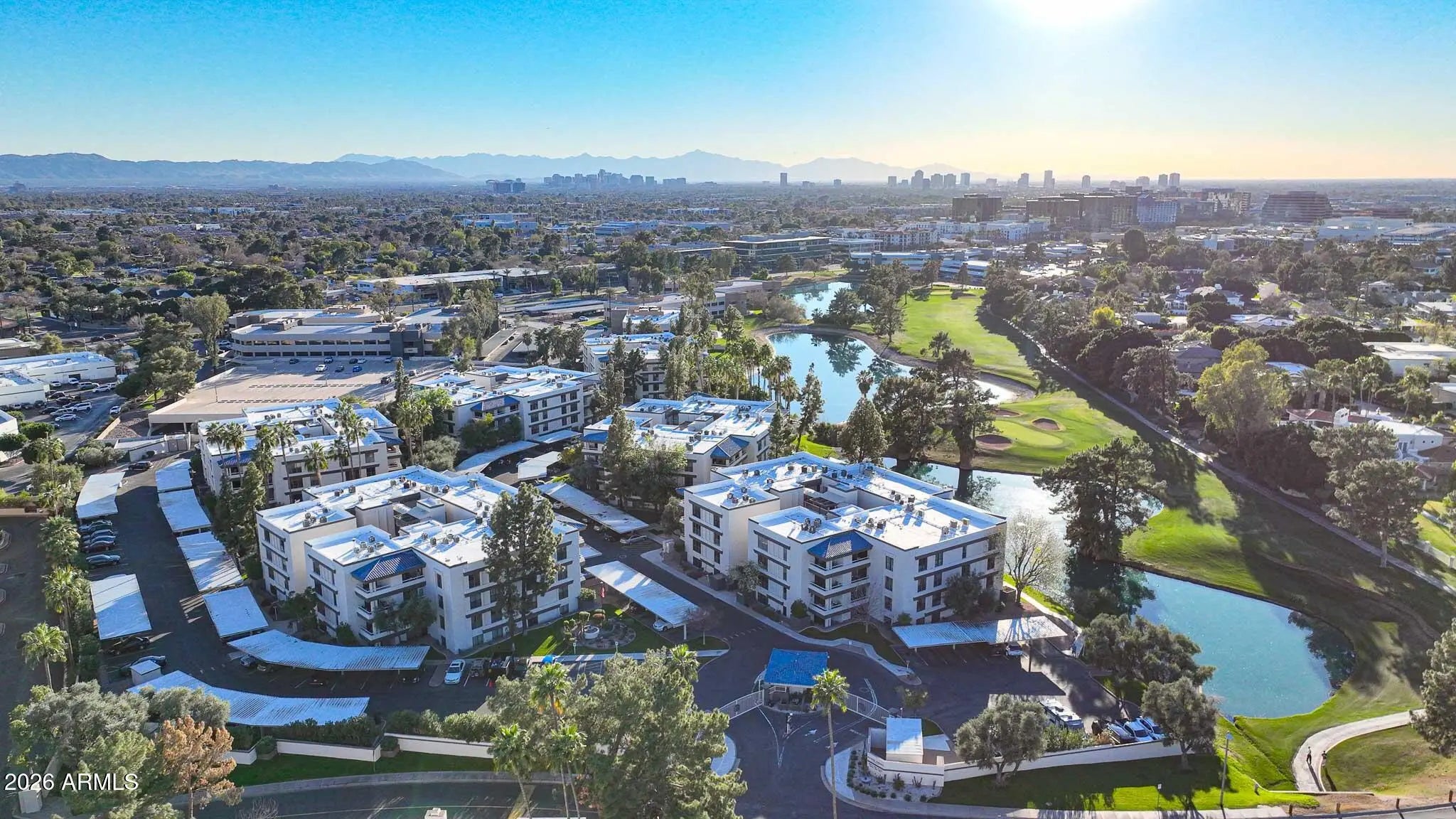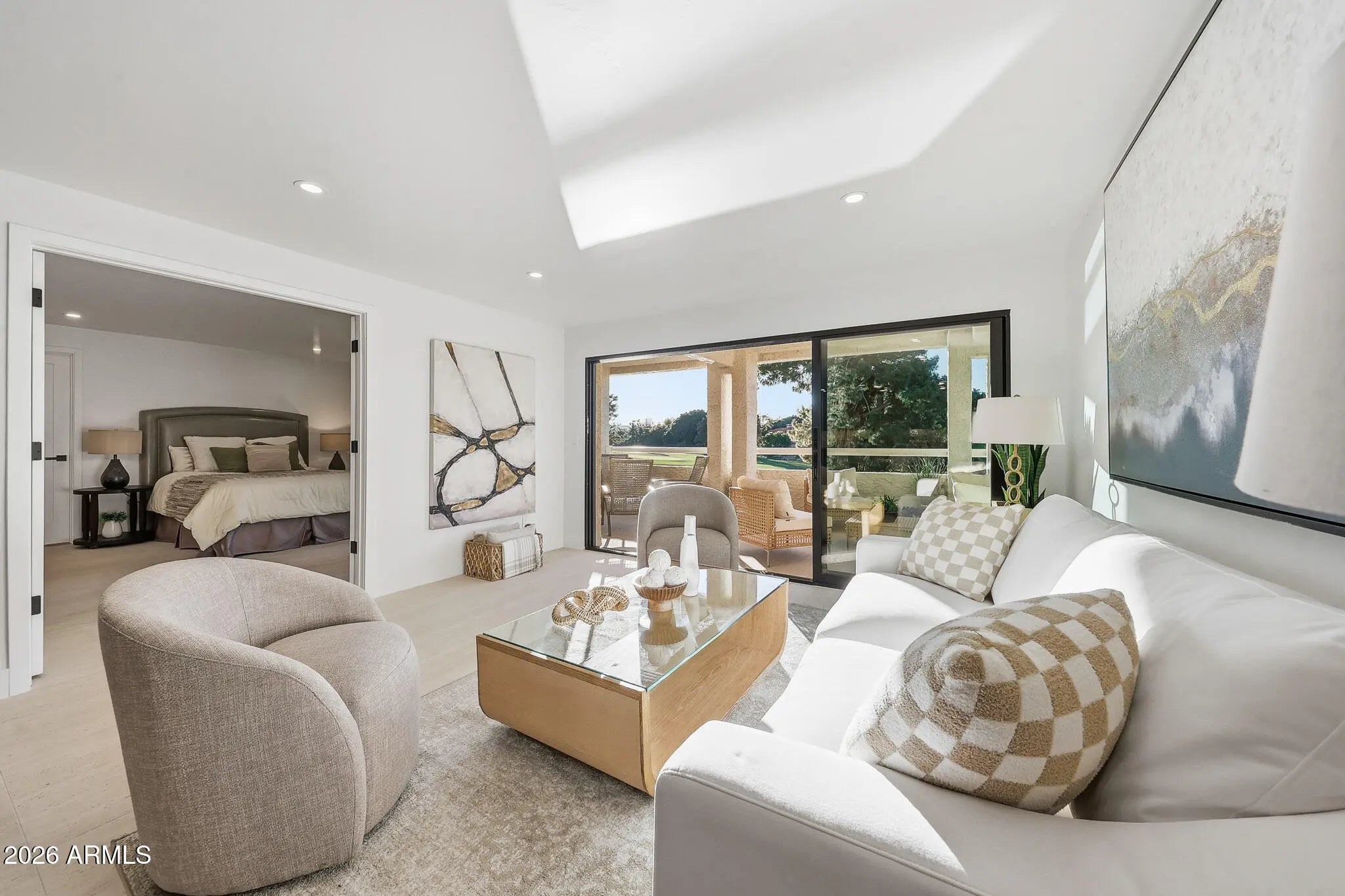What a wonderful opportunity to live in one of the most desired communities within all of the Camelback Corridor, where active lifestyles meet modern-day convenience. Welcome to the Iconic Arizona Biltmore! Set within the grounds of the Arizona Biltmore, a Waldorf Astoria resort, this Biltmore Terrace residence presents a rare opportunity to own within one of Phoenix's most storied luxury destinations. This residence showcases a truly exceptional, fully reimagined renovation never before available within the Biltmore Terraces. Surrounded by celebrated architecture, manicured landscapes and world-class amenities, the setting blends historic character with modern resort style living. Every element of the redesign reflects extraordinary *(CLICK MORE) attention to detail and top-tier materials, delivering a new level of finish, refinement and design quality within the community. Known as the "Jewel of the Desert," the Arizona Biltmore Resort is celebrated for its distinctive architecture inspired by Frank Lloyd Wright, timeless geometric design and rich history of luxury hospitality. Over the decades it has hosted world leaders and celebrities including Marilyn Monroe, Elvis Presley and multiple U.S. presidents. Biltmore Terrace is a magnificent and lively upscale residential enclave showcasing striking architectural design and the perfect blend of urban sophistication, charm, and convenience. Experience the ultimate walkable lifestyle in one of Phoenix's most sought-after neighborhoods. Just a short walk or bike ride away are premier dining destinations and local favorites like The Adobe Bar and Grille, Hillstone, True Food Kitchen, Seasons 52, Blanco Cocina Cantina, Ocean 44, Eddie V's, LGO, Chelsea's Kitchen, The Henry, North Italia, Postino, The Vig, Steak 44, and the renowned Mediterranean-inspired rooftop dining at the Wrigley Mansion. Luxury shopping is equally close at Biltmore Fashion Park, featuring internationally recognized brands such as Ralph Lauren, Louis Vuitton, Gucci, Tiffany & Co., Lululemon, Neiman Marcus, Saks Fifth Avenue, Pottery Barn, Williams Sonoma, Warby Parker and Athleta. Nestled among mature, towering trees, lush green lawns, tranquil lakes and winding walking paths, the setting is peaceful and picturesque. Ideal for evening strolls with friends and family, all framed by the striking backdrop of Camelback Mountain and Piestewa Peak. Residents enjoy direct access to the renowned Arizona Canal Path, locally known as the Art Mollen Fitness Path, part of the scenic canal trail system and perfect for walking, running and cycling. Just minutes away, the Phoenix Mountain Preserve offers more than 30 miles of tranquil trails for hiking, biking and even horseback riding, an exceptional complement to the area's active, outdoor lifestyle. The Biltmore Terrace condominium community is a quality-built, concrete block construction enclave established in 1981, offering a secure, amenity-rich environment designed for comfort, convenience and easy luxury living. This gated and patrolled community is ideally positioned along the Arizona Biltmore's #3 hole of the Links Golf Course, offering privacy and distinction in a world-class resort environment. Residents of Biltmore Terrace enjoy an impressive collection of amenities including a clubhouse, fitness center, two resort-style pools and spas along with two dedicated bicycle storage facilities. The community also features a secure, state-of-the-art phone access system providing self-controlled entry at all gates and convenient access to community amenities and the mailroom. The back pedestrian gate places everyday essentials and popular neighborhood dining just steps away and allows easy access to Safeway, The Collins, Havana Café, Matt's Big Breakfast, Bobby-Q, Keegan's Grill and other local favorites making quick outings and daily errands quick and convenient. Perfectly positioned within the community, this second-floor corner residence enjoys expansive views of the lakes, golf course, and nearby mountain silhouettes from multiple directions. Convenient elevator and stair access provide ease of entry, while the corner placement maximizes light and privacy. This residence showcases a reimagined floor plan that introduces additional interior space rarely found in other units within the community. This reconfiguration features a open chef inspired kitchen and added a dedicated office, den, or bonus room to the floor plan creating valuable flexibility for modern living. Now configured as a three-bedroom, two-bath split floor plan PLUS a bonus room, the layout enhances comfort, livability and design. From the moment you arrive, you're welcomed by a serene courtyard featuring a soothing fountain with clean architectural lines creating a warm and inviting approach that sets the tone as you ascend to the scenic second-floor residence. The front door welcomes you to a light, bright and open flowing floor plan featuring an inviting foyer, luxuriously appointed with Sensi Roma large-format Italian tile, upgraded baseboards, warm wood accents, raised panel doors, designer paint and upgraded lighting, hardware and fixtures. All complemented by tasteful decorator touches throughout and anchored by a state-of-the-art chef-inspired kitchen by Wolf and Sub-Zero. The great room is expansive, cheery, airy and warm with abundant natural lighting featuring disappearing walls of floor to ceiling glass that seamlessly bring the outside in, welcoming outdoor living and extending the living experience of this incredible renovation. Surrounded the by golf course, lakes and skyline views the space feels both energizing and serene, ideal for entertaining or a quiet night at home. Enjoy preparing lavish meals and making memories in your chef's kitchen featuring quality-crafted soft close cabinetry and quartz countertops, all framed by a custom integrated backsplash that ties the space together beautifully. Spacious and functional, the kitchen boasts ample 