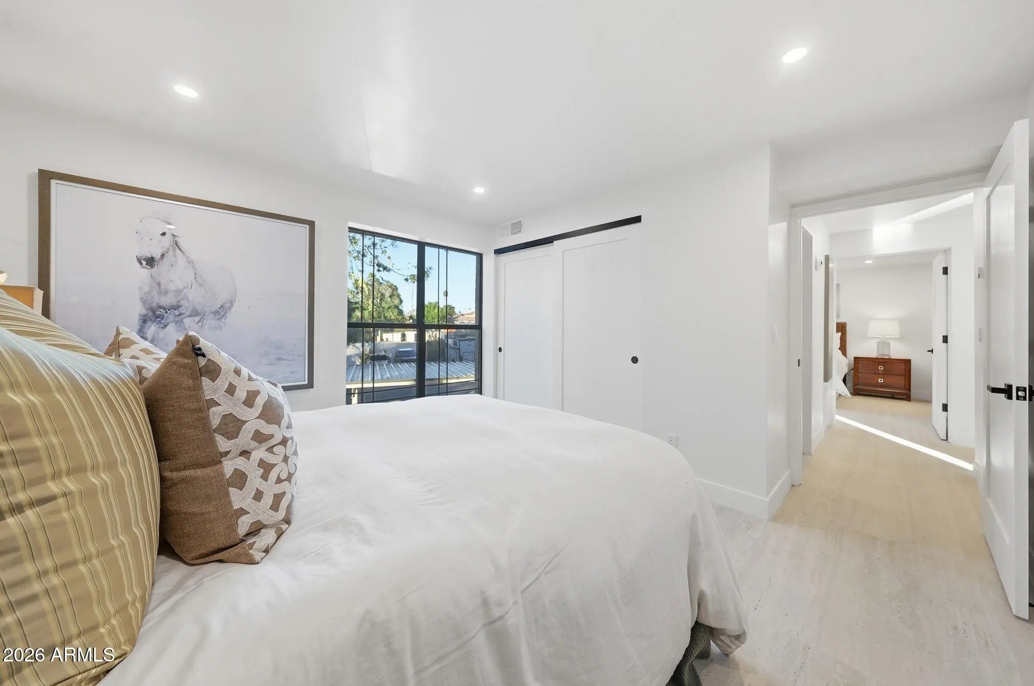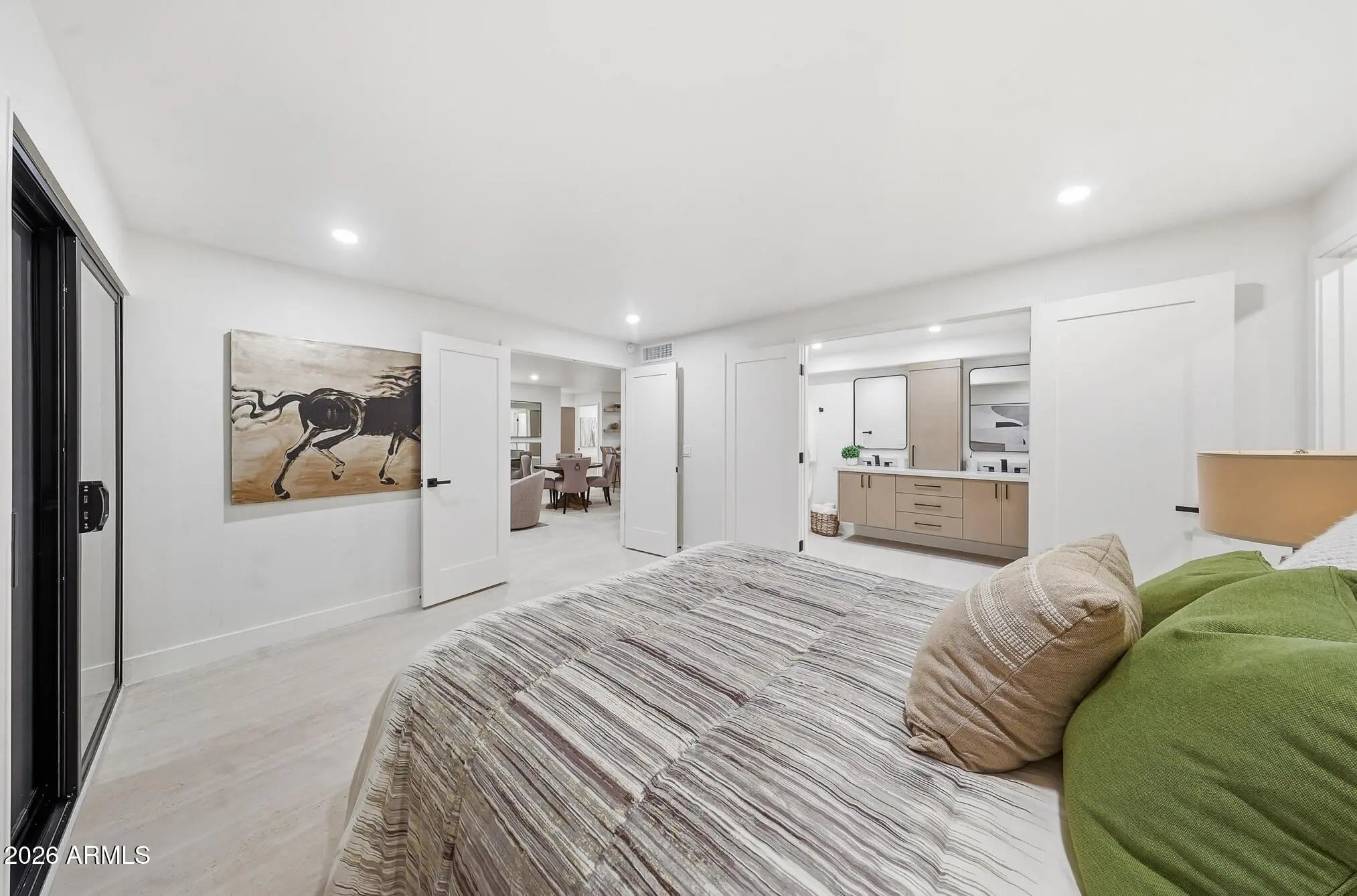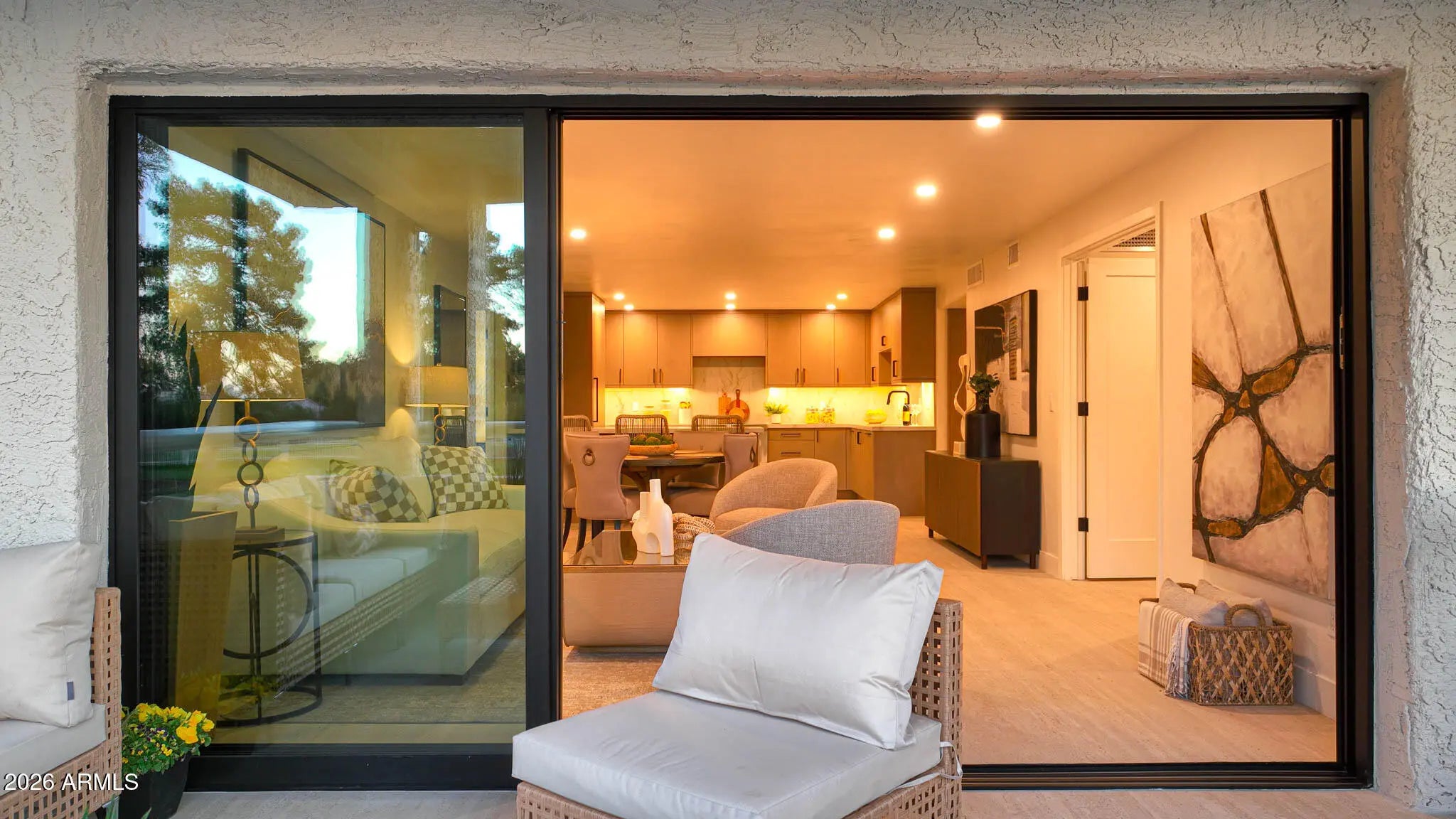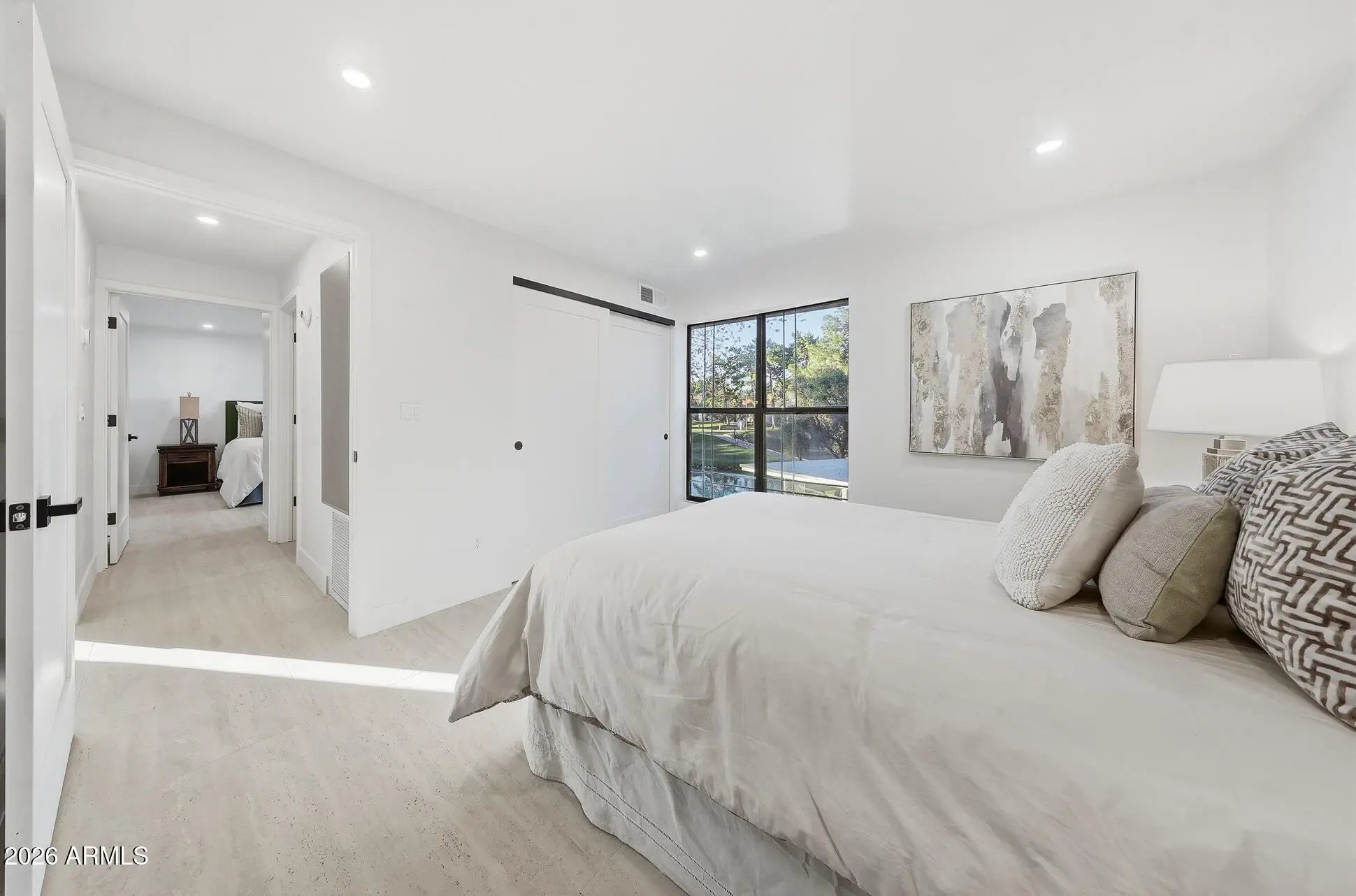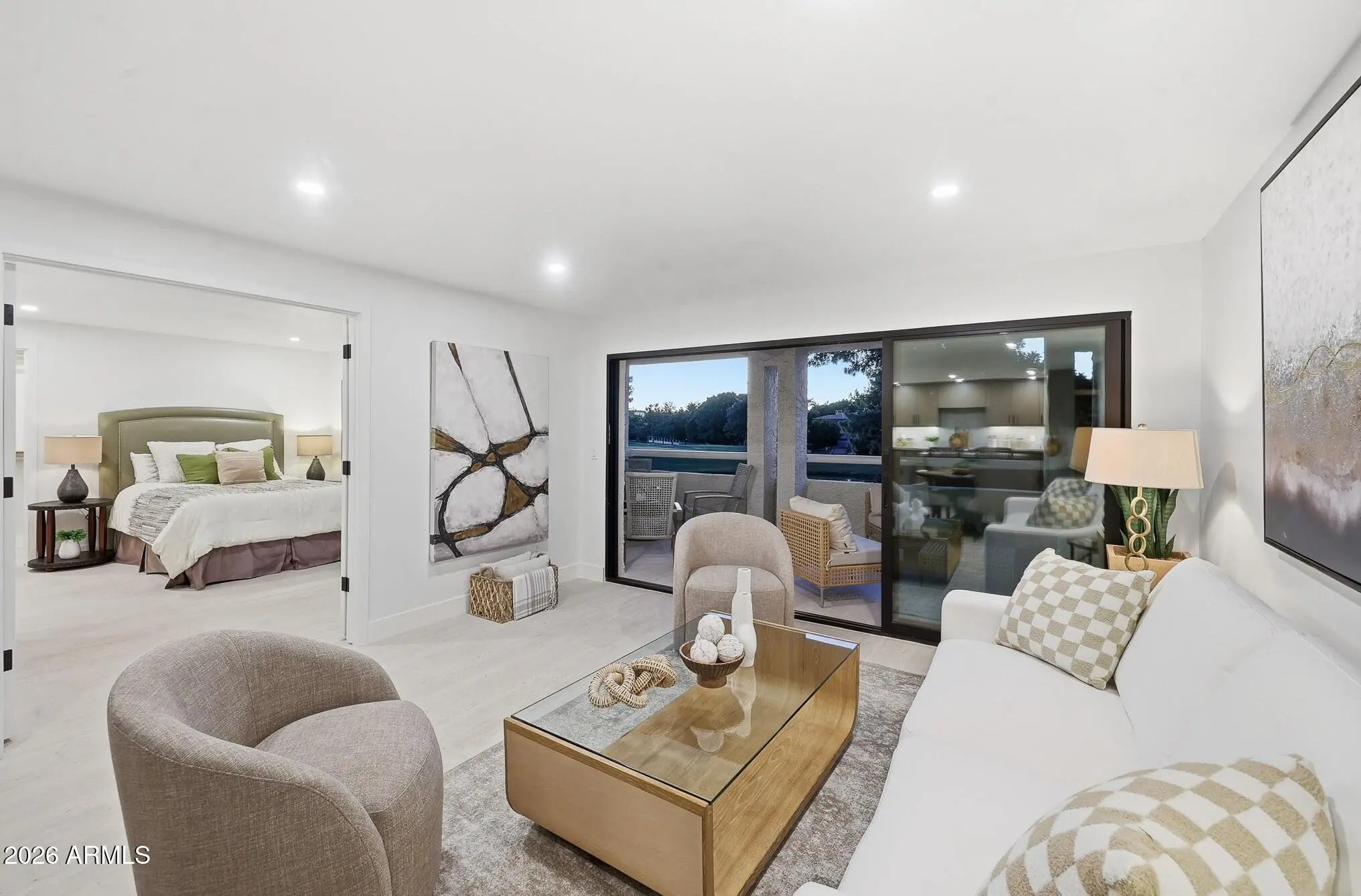 What a wonderful opportunity to live in one of the most desired communities within all of the Camelback Corridor, where active lifestyles meet modern-day convenience. Welcome to the Iconic Arizona Biltmore! Set within the grounds of the Arizona Biltmore, a Waldorf Astoria resort, this Biltmore Terrace residence presents a rare opportunity to own within one of Phoenix's most storied luxury destinations. This residence showcases a truly exceptional, fully reimagined renovation never before available within the Biltmore Terraces. Surrounded by celebrated architecture, manicured landscapes and world-class amenities, the setting blends historic character with modern resort style living. Every element of the redesign reflects extraordinary *(CLICK MORE) attention to detail and top-tier materials, delivering a new level of finish, refinement and design quality within the community. Known as the "Jewel of the Desert," the Arizona Biltmore Resort is celebrated for its distinctive architecture inspired by Frank Lloyd Wright, timeless geometric design and rich history of luxury hospitality. Over the decades it has hosted world leaders and celebrities including Marilyn Monroe, Elvis Presley and multiple U.S. presidents. Biltmore Terrace is a magnificent and lively upscale residential enclave showcasing striking architectural design and the perfect blend of urban sophistication, charm, and convenience. Experience the ultimate walkable lifestyle in one of Phoenix's most sought-after neighborhoods. Just a short walk or bike ride away are premier dining destinations and local favorites like The Adobe Bar and Grille, Hillstone, True Food Kitchen, Seasons 52, Blanco Cocina Cantina, Ocean 44, Eddie V's, LGO, Chelsea's Kitchen, The Henry, North Italia, Postino, The Vig, Steak 44, and the renowned Mediterranean-inspired rooftop dining at the Wrigley Mansion. Luxury shopping is equally close at Biltmore Fashion Park, featuring internationally recognized brands such as Ralph Lauren, Louis Vuitton, Gucci, Tiffany & Co., Lululemon, Neiman Marcus, Saks Fifth Avenue, Pottery Barn, Williams Sonoma, Warby Parker and Athleta. Nestled among mature, towering trees, lush green lawns, tranquil lakes and winding walking paths, the setting is peaceful and picturesque. Ideal for evening strolls with friends and family, all framed by the striking backdrop of Camelback Mountain and Piestewa Peak. Residents enjoy direct access to the renowned Arizona Canal Path, locally known as the Art Mollen Fitness Path, part of the scenic canal trail system and perfect for walking, running and cycling. Just minutes away, the Phoenix Mountain Preserve offers more than 30 miles of tranquil trails for hiking, biking and even horseback riding, an exceptional complement to the area's active, outdoor lifestyle. The Biltmore Terrace condominium community is a quality-built, concrete block construction enclave established in 1981, offering a secure, amenity-rich environment designed for comfort, convenience and easy luxury living. This gated and patrolled community is ideally positioned along the Arizona Biltmore's #3 hole of the Links Golf Course, offering privacy and distinction in a world-class resort environment. Residents of Biltmore Terrace enjoy an impressive collection of amenities including a clubhouse, fitness center, two resort-style pools and spas along with two dedicated bicycle storage facilities. The community also features a secure, state-of-the-art phone access system providing self-controlled entry at all gates and convenient access to community amenities and the mailroom. The back pedestrian gate places everyday essentials and popular neighborhood dining just steps away and allows easy access to Safeway, The Collins, Havana Café, Matt's Big Breakfast, Bobby-Q, Keegan's Grill and other local favorites making quick outings and daily errands quick and convenient. Perfectly positioned within the community, this second-floor corner residence enjoys expansive views of the lakes, golf course, and nearby mountain silhouettes from multiple directions. Convenient elevator and stair access provide ease of entry, while the corner placement maximizes light and privacy. This residence showcases a reimagined floor plan that introduces additional interior space rarely found in other units within the community. This reconfiguration features a open chef inspired kitchen and added a dedicated office, den, or bonus room to the floor plan creating valuable flexibility for modern living. Now configured as a three-bedroom, two-bath split floor plan PLUS a bonus room, the layout enhances comfort, livability and design. From the moment you arrive, you're welcomed by a serene courtyard featuring a soothing fountain with clean architectural lines creating a warm and inviting approach that sets the tone as you ascend to the scenic second-floor residence. The front door welcomes you to a light, bright and open flowing floor plan featuring an inviting foyer, luxuriously appointed with Sensi Roma large-format Italian tile, upgraded baseboards, warm wood accents, raised panel doors, designer paint and upgraded lighting, hardware and fixtures. All complemented by tasteful decorator touches throughout and anchored by a state-of-the-art chef-inspired kitchen by Wolf and Sub-Zero. The great room is expansive, cheery, airy and warm with abundant natural lighting featuring disappearing walls of floor to ceiling glass that seamlessly bring the outside in, welcoming outdoor living and extending the living experience of this incredible renovation. Surrounded the by golf course, lakes and skyline views the space feels both energizing and serene, ideal for entertaining or a quiet night at home. Enjoy preparing lavish meals and making memories in your chef's kitchen featuring quality-crafted soft close cabinetry and quartz countertops, all framed by a custom integrated backsplash that ties the space together beautifully. Spacious and functional, the kitchen boasts ample 