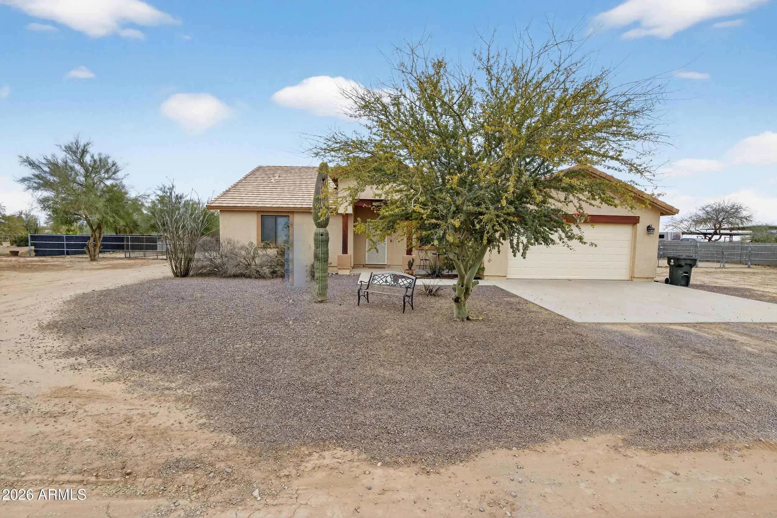 This exceptional horse property is one you won't want to miss! Set on 1.2 acres, this beautiful ranch-style home offers stunning mountain views from both the front and backyard--perfect for enjoying those breathtaking sunsets. Inside, you'll find 3 spacious bedrooms, 2 full bathrooms, vaulted ceilings, and a 2-car attached garage. The kitchen is designed for both function and style, featuring a center island with breakfast bar, walk-in pantry, built-in microwave, granite countertops, and separate storage. A small guest house adds flexibility for guests, or multi-generational living. The expansive property includes multiple entrances and ample space for RV or trailer parking. The backyard is a blank canvas, ready for you to design your own private oasis. Must See!
