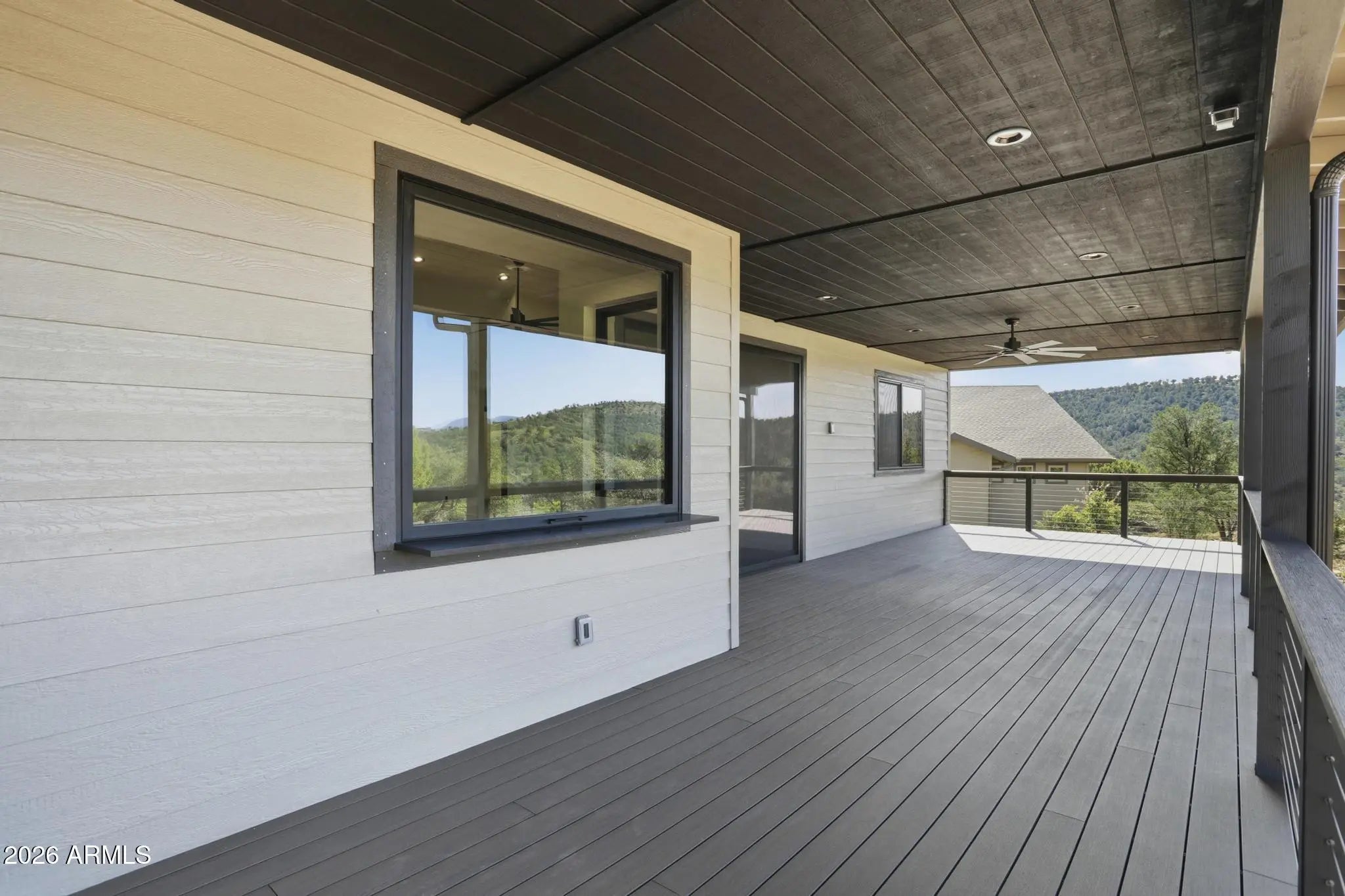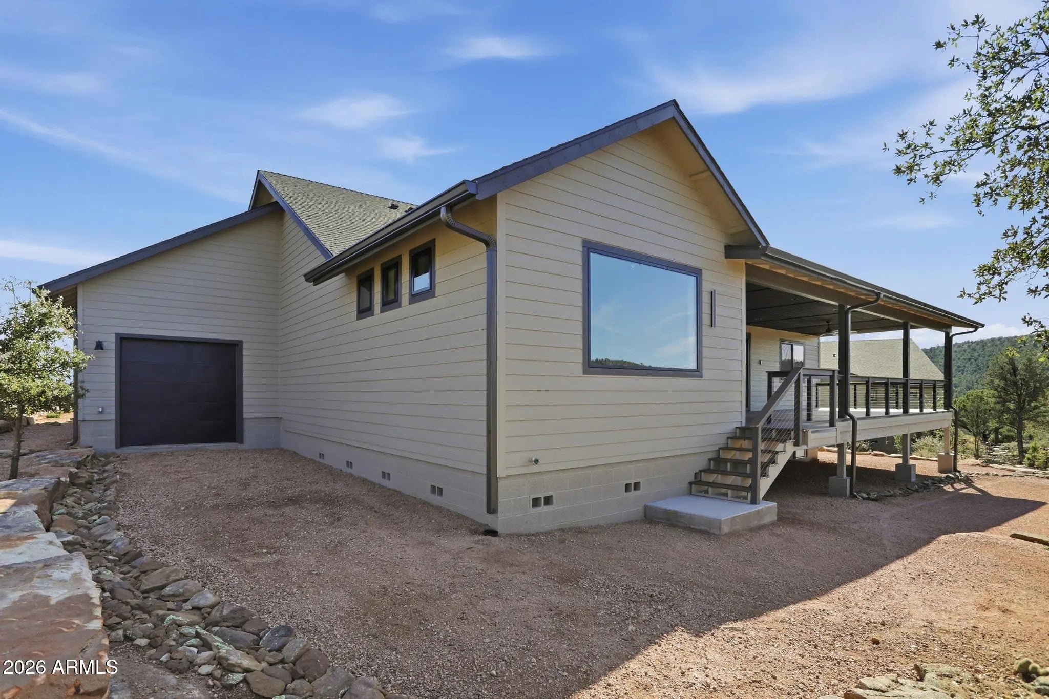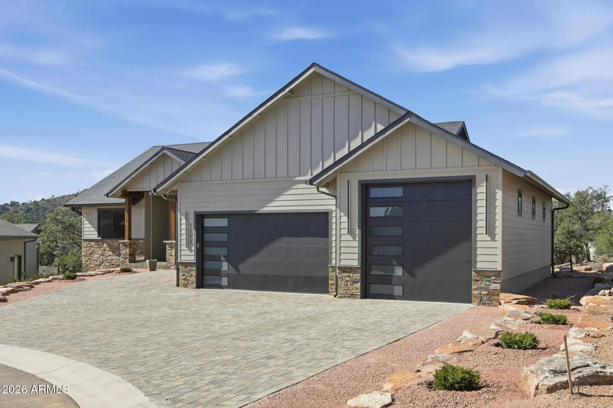 Welcome to Green Valley Vista, where exceptional craftsmanship meets quiet mountain living. Brand-new 2,193 sq ft single-level home offers a thoughtfully designed split floorplan and was custom built by the builder for himself — meaning every finish was selected with intention and no detail was overlooked. At the heart of the home is a stunning chef's kitchen featuring an upgraded ZLINE appliance package, highlighted by a professional 6-burnergas range, oversized island with integrated beverage/wine cooler, granite countertops, and beautifully upgraded cabinetry. A unique feature is the expansive kitchen view window, designed to double as a pass-through to the patio creating seamless indoor-outdoor entertaining while perfectly framing views of North Peak in the Mazatzal Mountain Range. Step outside to the impressive 600 sq ft covered patio, offering generous space for dining, lounging, and entertaining while taking in the natural beauty of Rim Country and the stunning North Peak backdrop. Premium upgrades continue throughout, including Pella windows, upgraded flooring, designer cabinetry, and elevated finishes. The striking metal front and primary suite doors by Cherry Forge, complete with built in screens, add architectural character and function. The private primary suite is a true retreat with a spa-inspired bath featuring a freestanding soaking tub, an oversized multi-head walk-in shower, and a thoughtfully designed closet with direct access to the laundry room. Car enthusiasts, RV owners, and hobbyists will appreciate the exceptional 4-car garage configuration, including a 10'6'' RV door with a 40-foot deep parking bay on one side ideal for RVs, boats, or large recreational vehicles. An additional third garage door opens to the rear of the property, offering convenient pull-through capability, workshop flexibility, or expanded outdoor access. This is not a standard spec build, it was planned to be the builder's own sanctuary, it showcases top-tier materials, thoughtful design, and superior quality throughout.
