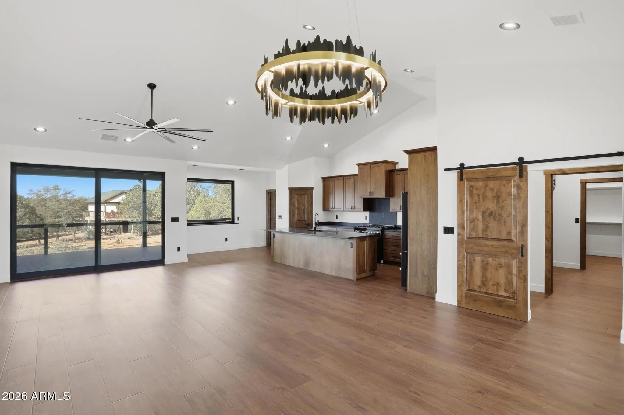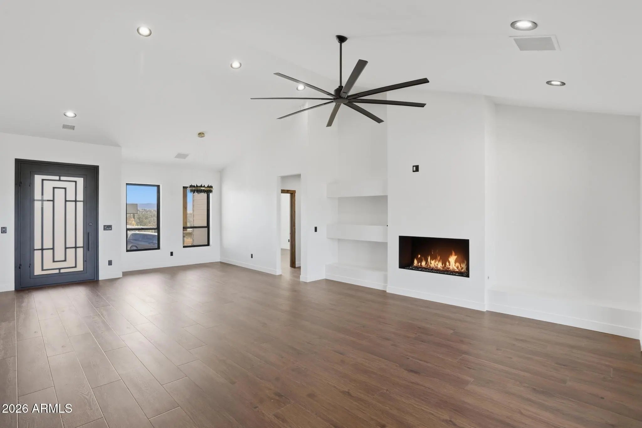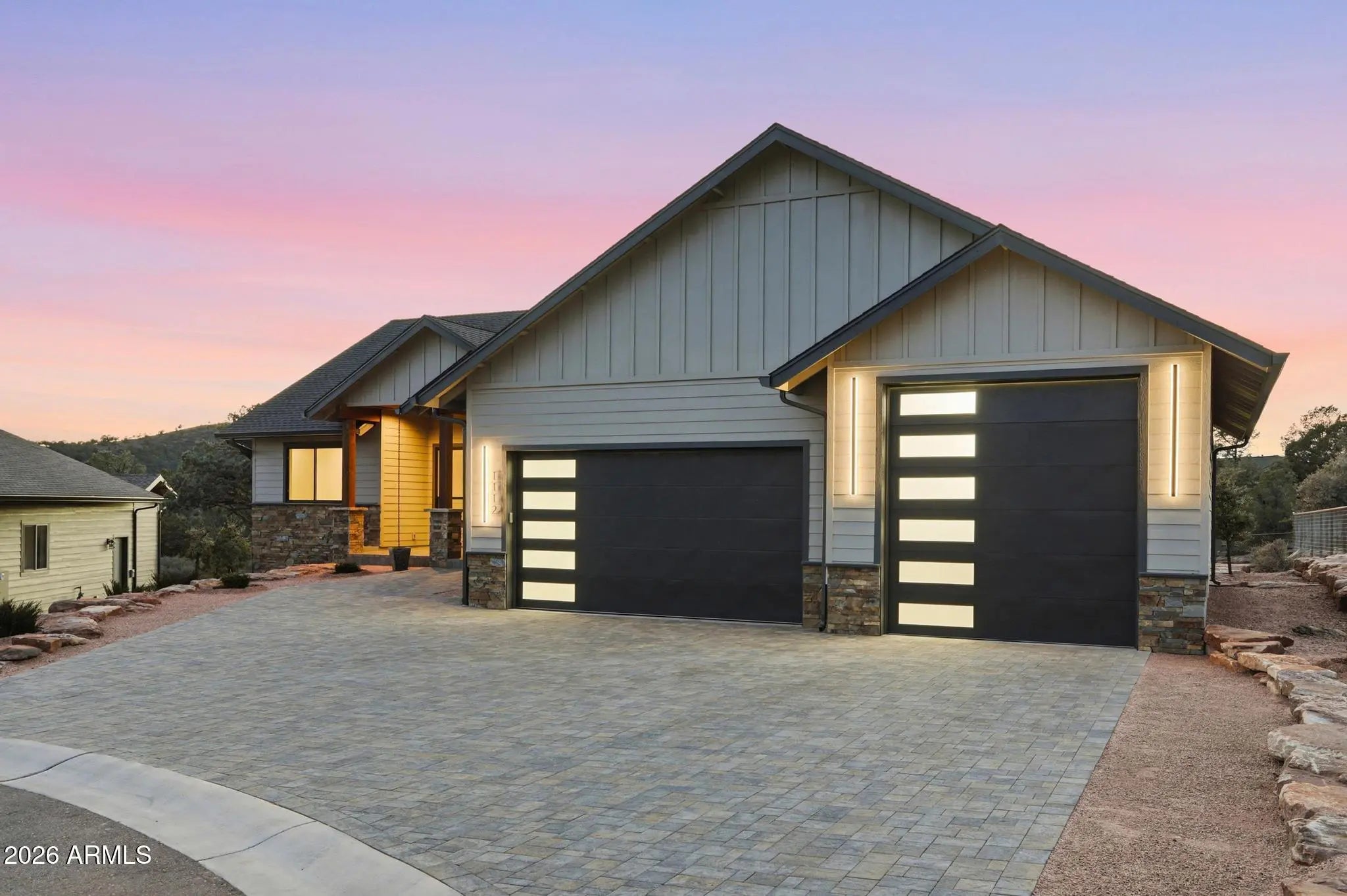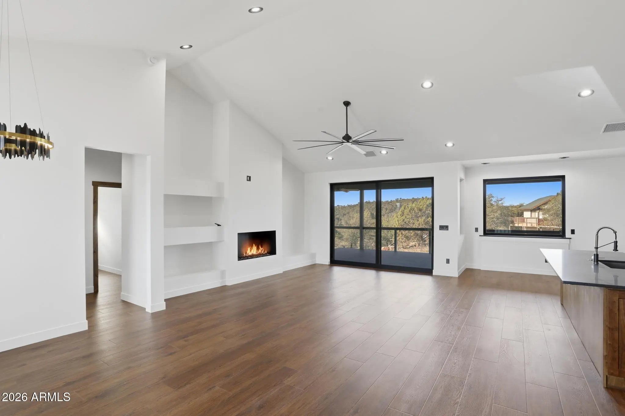 Welcome to Green Valley Vista, where exceptional craftsmanship meets quiet mountain living. Brand-new 2,193 sq ft single-level home offers a thoughtfully designed split floorplan and was custom built by the builder for himself — meaning every finish was selected with intention and no detail was overlooked. At the heart of the home is a stunning chef's kitchen featuring an upgraded ZLINE appliance package, highlighted by a professional 6-burnergas range, oversized island with integrated beverage/wine cooler, granite countertops, and beautifully upgraded cabinetry. A unique feature is the expansive kitchen view window, designed to double as a pass-through to the patio creating seamless indoor-outdoor entertaining while perfectly framing views of North Peak in the Mazatzal Mountain Range. Step outside to the impressive 600 sq ft covered patio, offering generous space for dining, lounging, and entertaining while taking in the natural beauty of Rim Country and the stunning North Peak backdrop. Premium upgrades continue throughout, including Pella windows, upgraded flooring, designer cabinetry, and elevated finishes. The striking metal front and primary suite doors by Cherry Forge, complete with built in screens, add architectural character and function. The private primary suite is a true retreat with a spa-inspired bath featuring a freestanding soaking tub, an oversized multi-head walk-in shower, and a thoughtfully designed closet with direct access to the laundry room. Car enthusiasts, RV owners, and hobbyists will appreciate the exceptional 4-car garage configuration, including a 10'6'' RV door with a 40-foot deep parking bay on one side ideal for RVs, boats, or large recreational vehicles. An additional third garage door opens to the rear of the property, offering convenient pull-through capability, workshop flexibility, or expanded outdoor access. This is not a standard spec build, it was planned to be the builder's own sanctuary, it showcases top-tier materials, thoughtful design, and superior quality throughout.