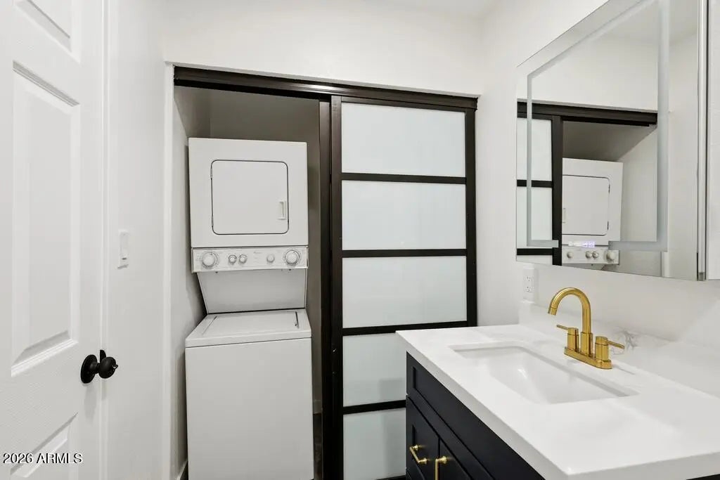 Stacked Washer/Dryer, Dryer, Washer, Refrigerator, Built-in Microwave, Dishwasher, Electric Range, Built-In Electric Oven